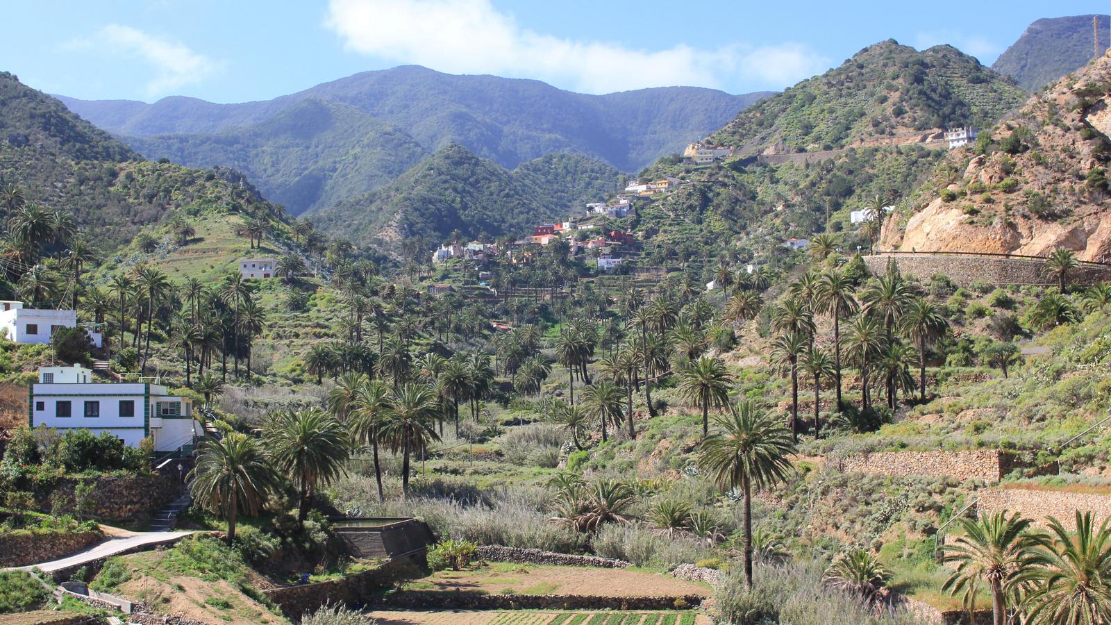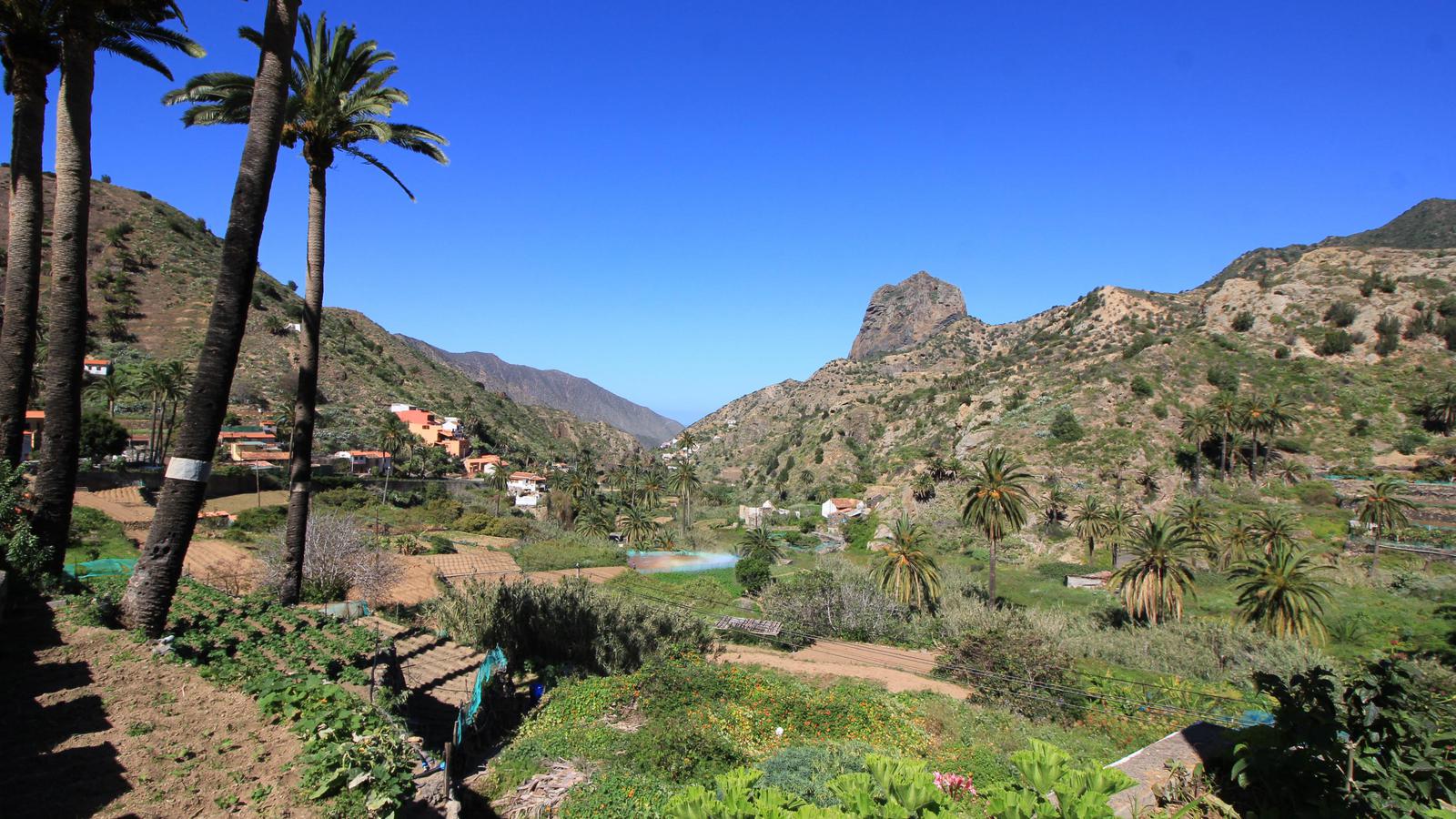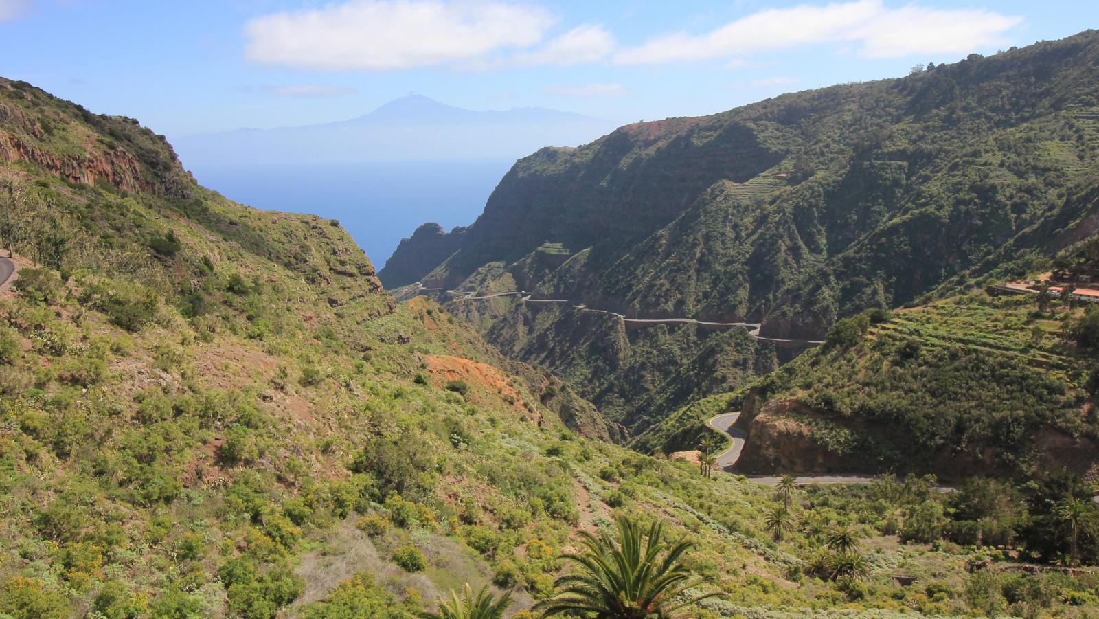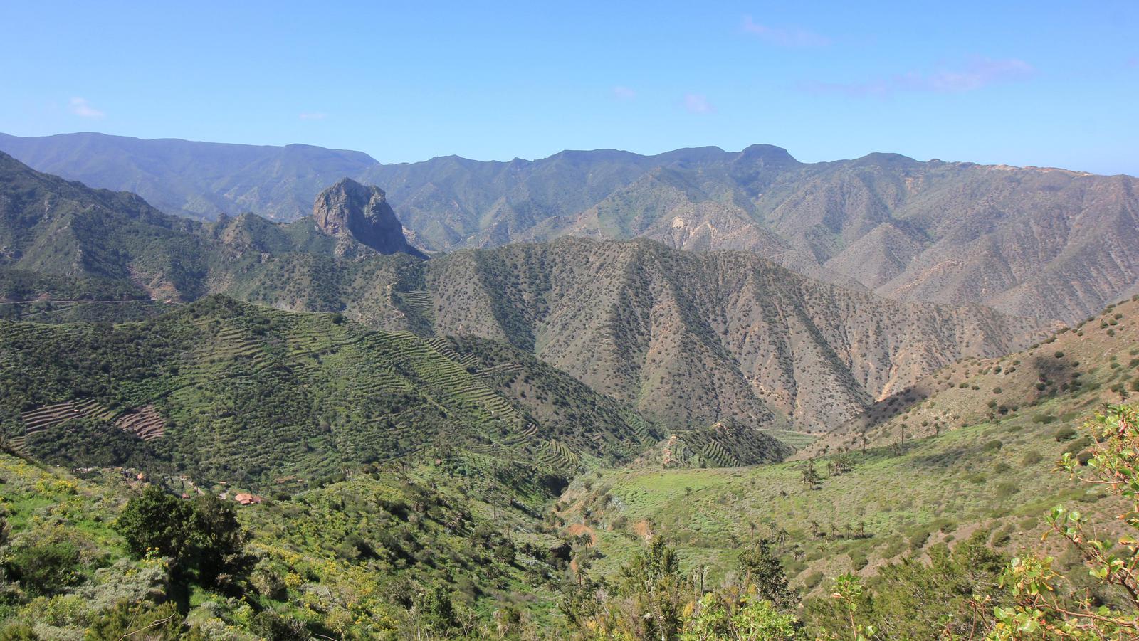 La Gomera est un île volcanique aride, cependant les alizés apportent des brumes à longueur d'année qui se bloquent sur son sommet, et permettent le développement d'une forêt humide, la laurisilva, à partir de 800m d'altitude. Par ailleurs, l'île a une forme conique dont le point culminant, le Alto de Garrajonay, se situe sensiblement au centre. De profonds ravins partent de celui-ci en direction de la mer, si bien qu'il est impossible de faire le tour de l'île en suivant la côte et il est nécessaire de remonter 1000m lorsque l'on souhaite changer de vallée...