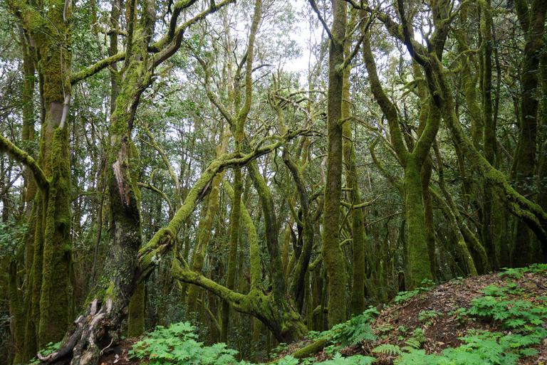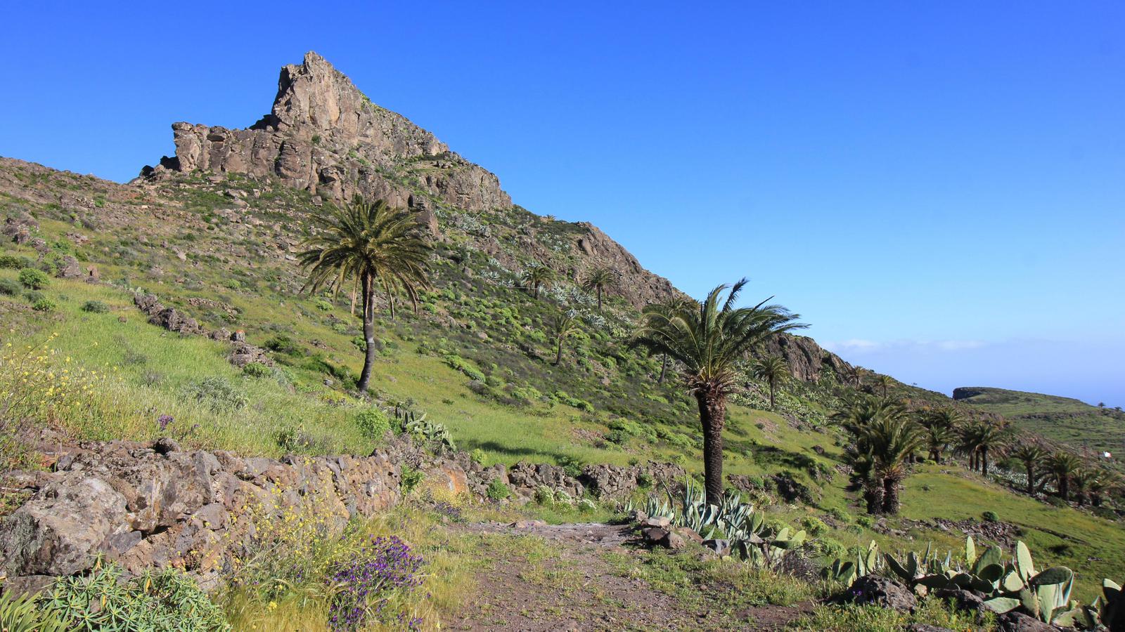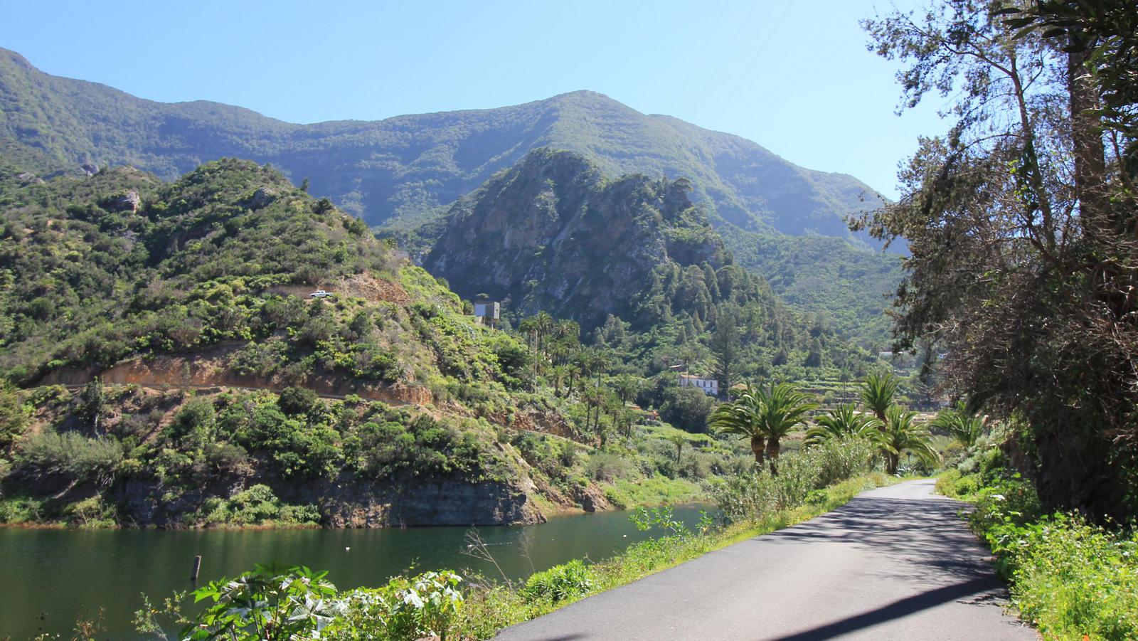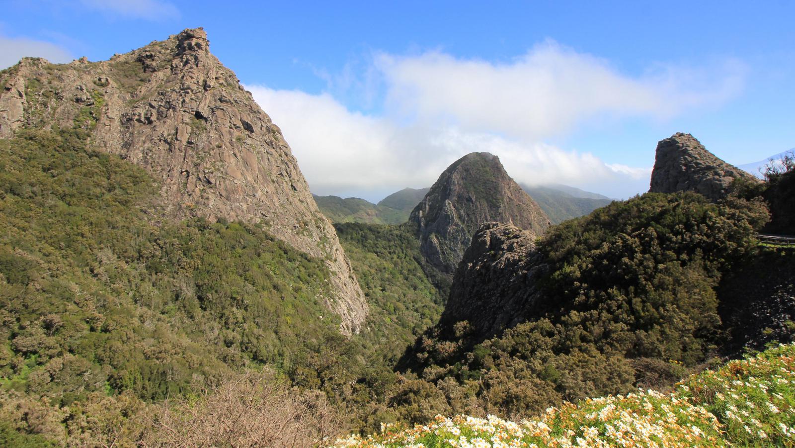La Gomera est un île volcanique aride, cependant les alizés apportent des brumes à longueur d'année qui se bloquent sur son sommet, et permettent le développement d'une forêt humide, la laurisilva, à partir de 800m d'altitude. Par ailleurs, l'île a une forme conique dont le point culminant, le Alto de Garrajonay, se situe sensiblement au centre. De profonds ravins partent de celui-ci en direction de la mer, si bien qu'il est impossible de faire le tour de l'île en suivant la côte et il est nécessaire de remonter 1000m lorsque l'on souhaite changer de vallée...