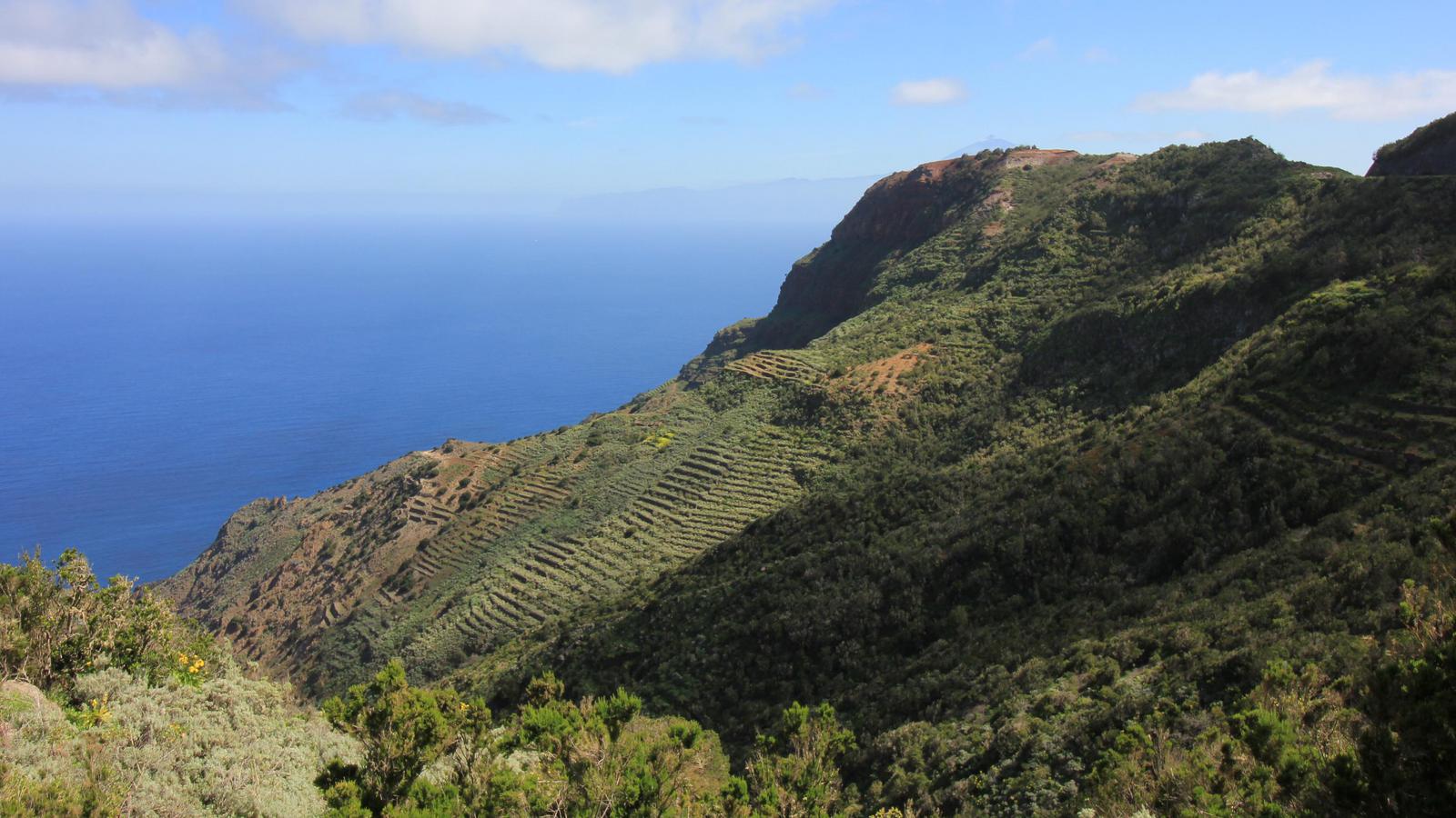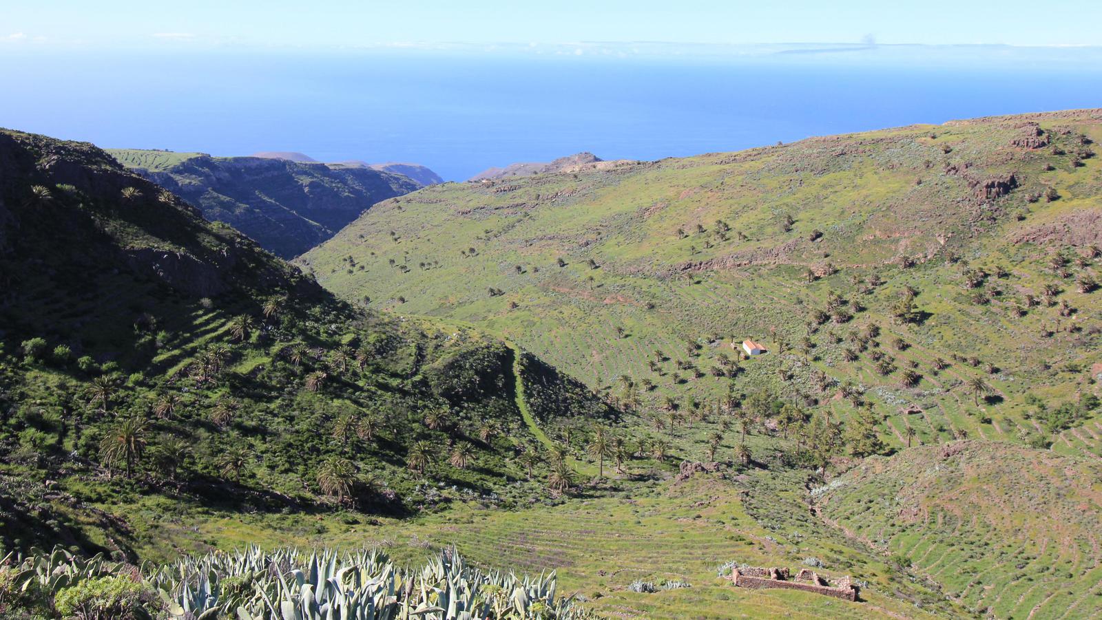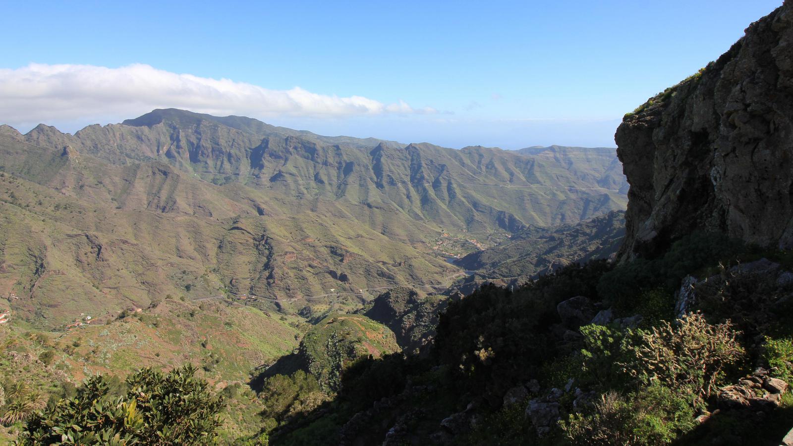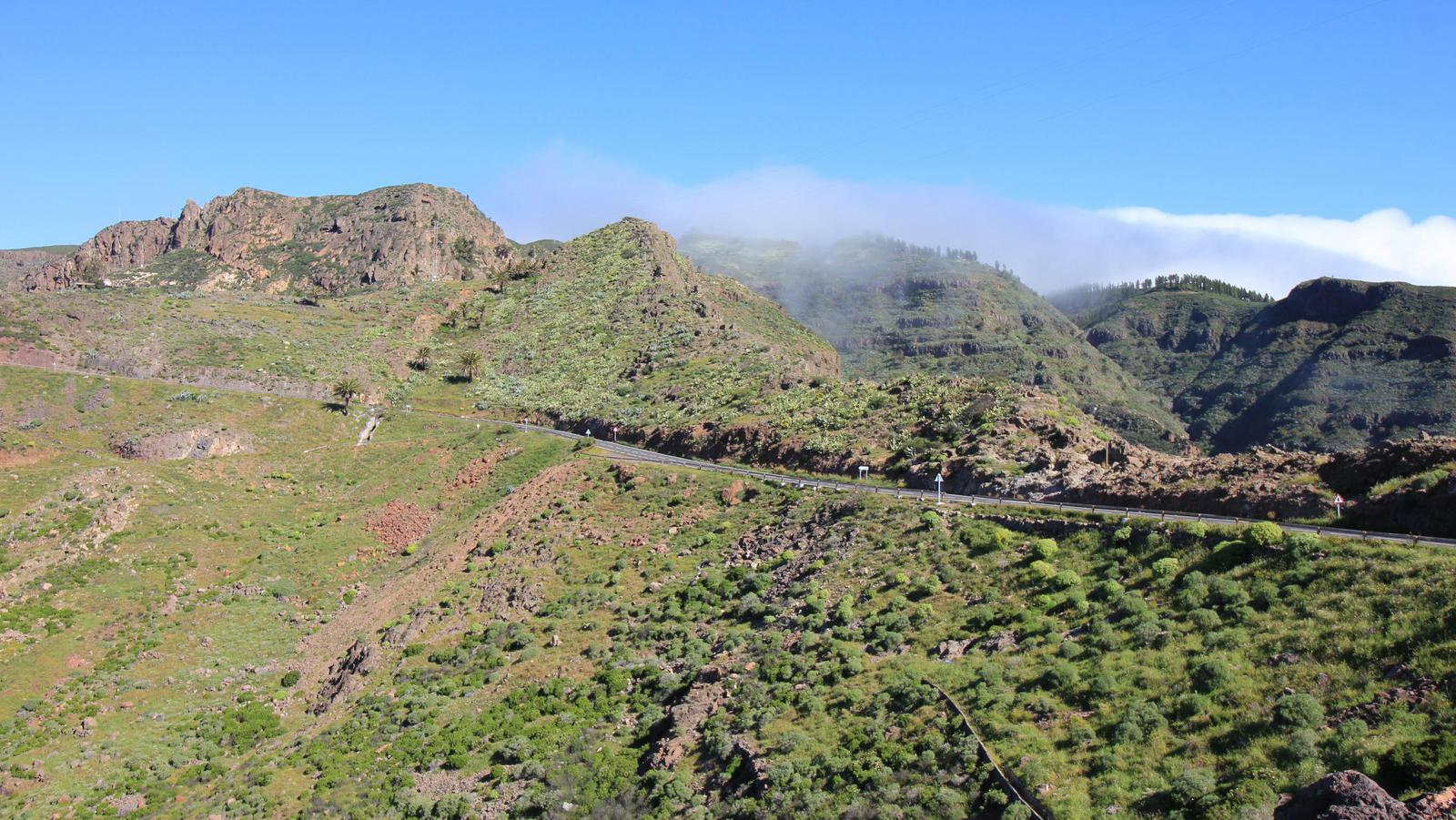 Nous prenons la direction de Hermigua par la route GM-1. La route prend rapidement de l'altitude et nous offre de magnifiques panoramas sur une succession de barrancos.
