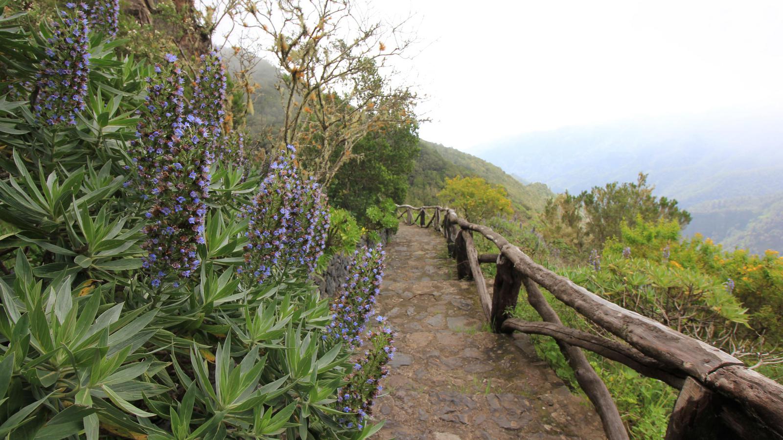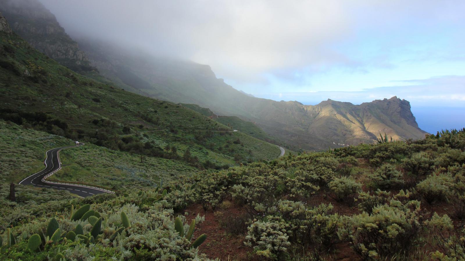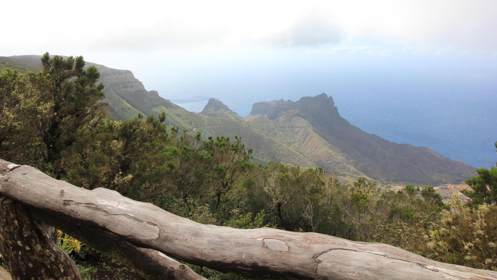 Nous traversons une nouvelle fois les forêts humides. Sur chaque petit parking de la route, nous croisons toujours quelques randonneurs courageux équipés de bonnets et de capes... Après une vingtaine de kilomètres de crête, nous basculons enfin dans le barranco de Valle Gran Rey.
