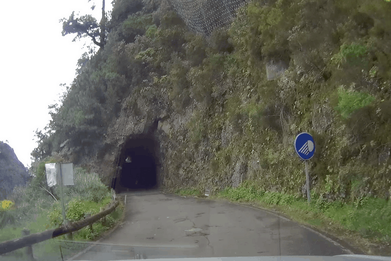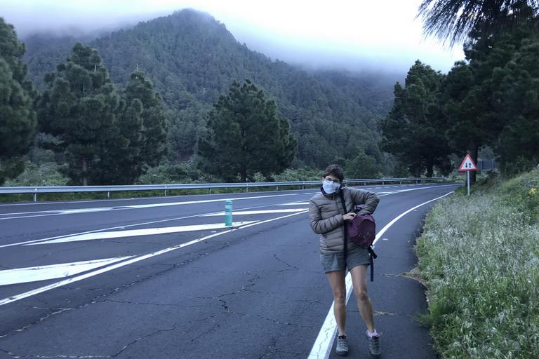 Nous sommes sortis de El Paso et continuons de rouler. Le chauffeur s'arrête enfin, juste avant l'entrée du tunnel de la Cumbre, à l'intersection avec la route LP-203 conduisant au refuge. Il a compris que nous voulions y aller à pied et nous a déposé au plus près. Résultat, nous voici dans le brouillard et le froid, au bord d'une route à 8km du point de départ de notre randonnée...