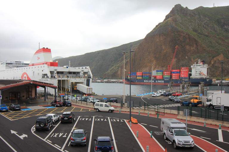 Pour ne rien arranger, il fait très gris ce matin. Nous quittons rapidement les lieux et partons récupérer la fameuse carte routière de l'île à l'agence de location de voitures Cicar sur le port. Le Ciudad de Valencia, le bateau avec lequel nous sommes venus de Cadiz, est arrivé dans la nuit et une noria de remorques chargées de bananes s'engouffre dans sa cale. Cela nous rappelle que dans exactement un mois, ce sera à nous d'embarquer pour notre retour sur la péninsule...