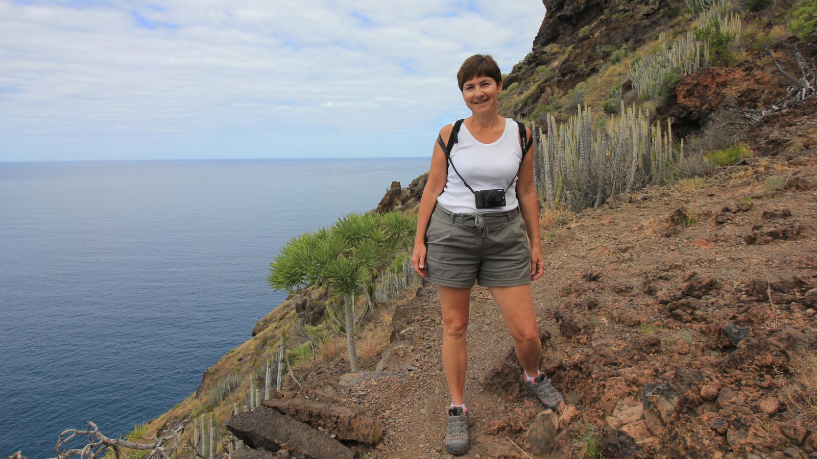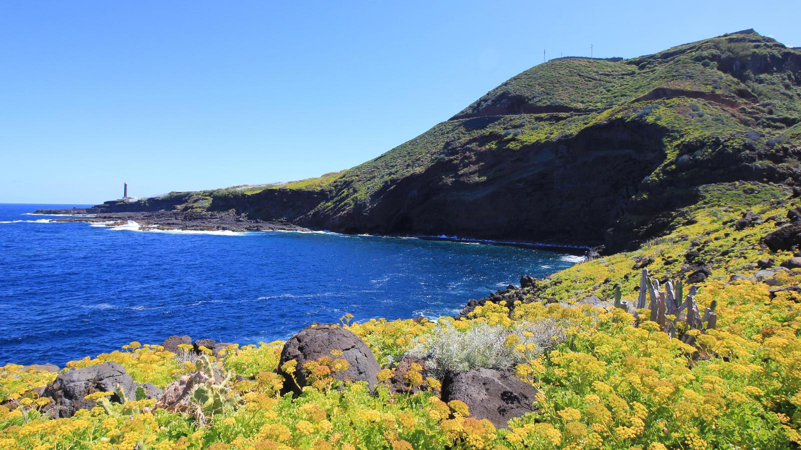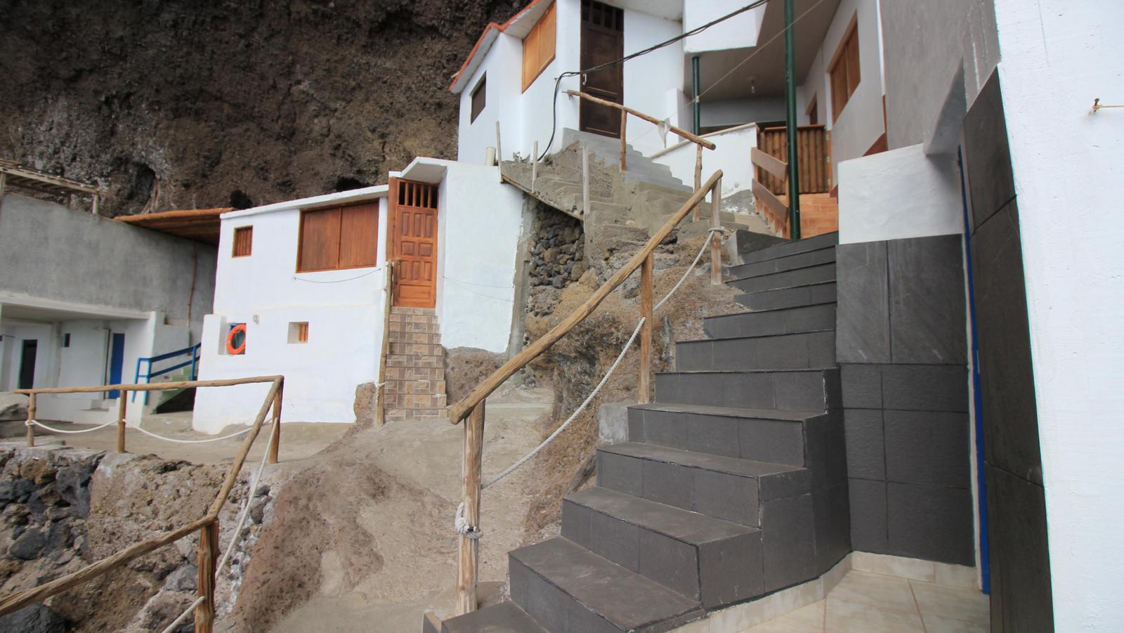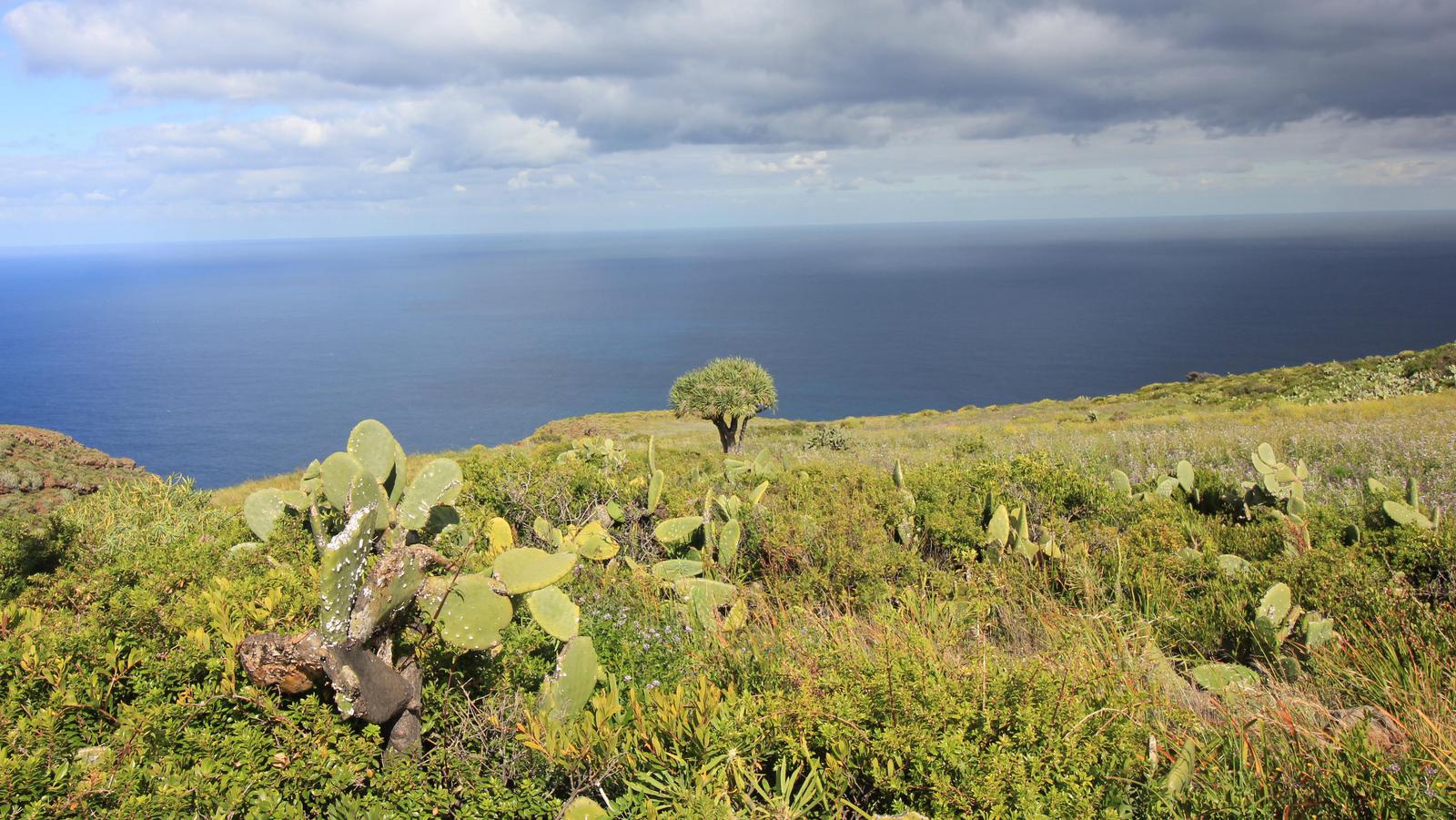 Un sentier vertigineux nous mène aux différentes plateformes, la plus éloignée et la plus basse est une avancée naturelle dans la caldera d'où nous apercevons les trois îles voisines, Tenerife et le Teide, La Gomera et El Hierro.