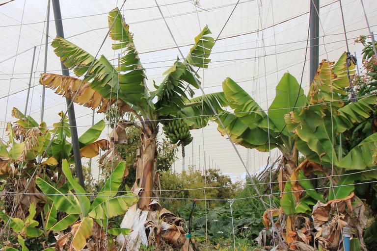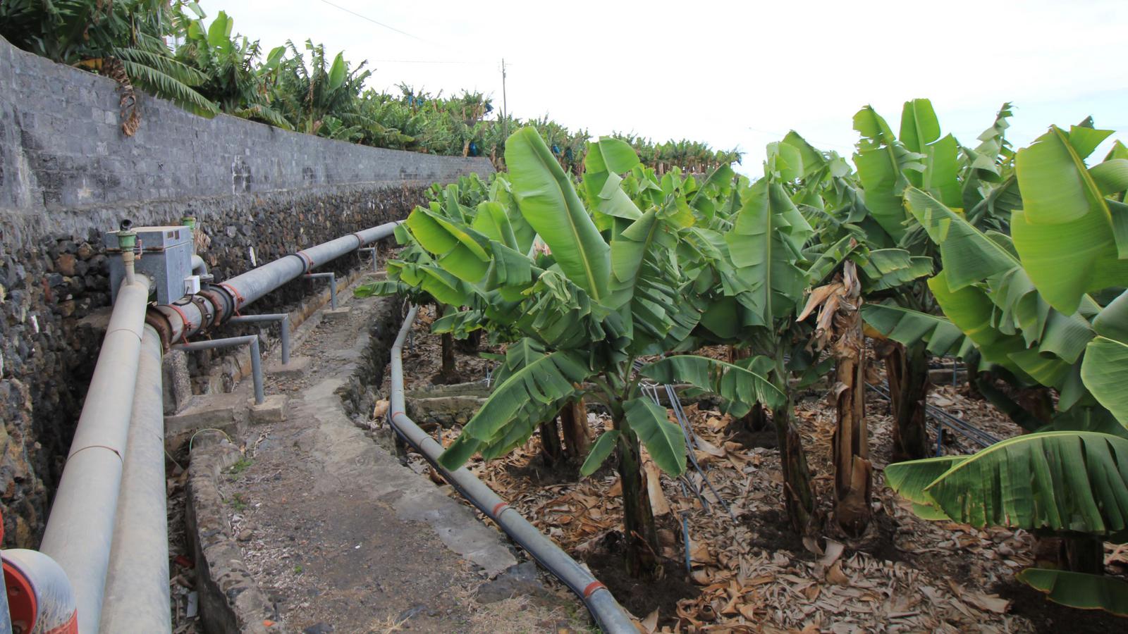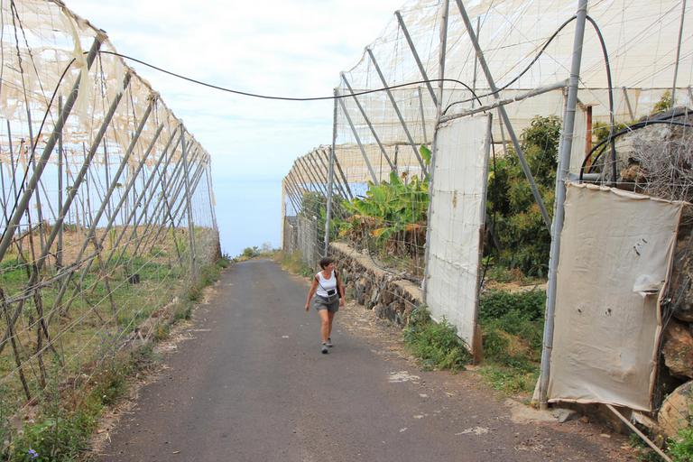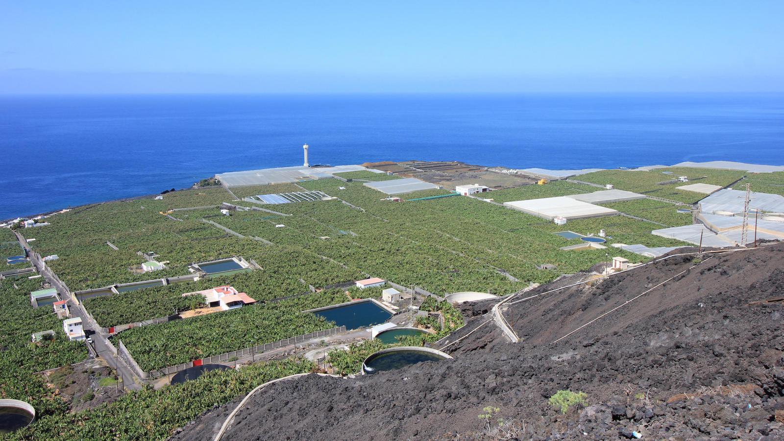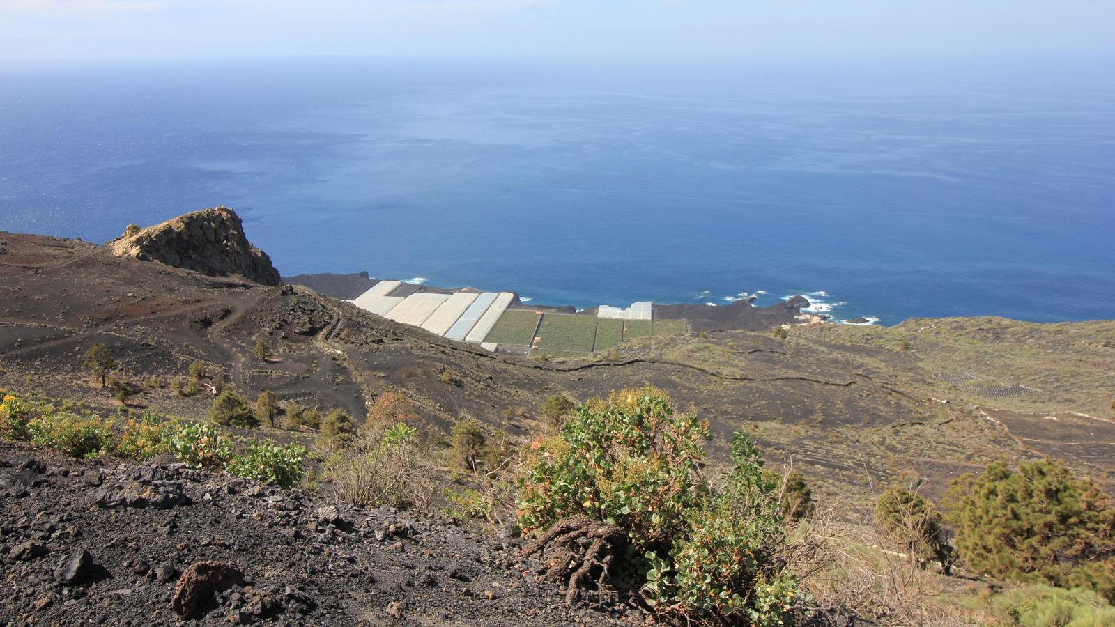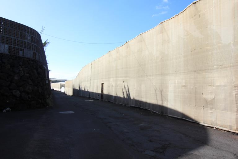 Nous quittons définitivement la Punta de Fuencaliente en essayant de rester au plus près de la côte. Nous passons la Playa Nueva, la fameuse nouvelle plage apparue lors de l'éruption de 1971, puis notre route se borde de hautes parois abritant des bananeraies. Les plus anciennes sont en agglomérés béton perforés, quant aux plus récentes elles sont en toiles de fibres plastiques lesquelles couvrent également le dessus des parcelles.