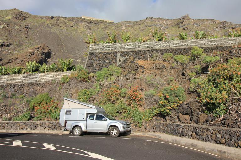 Notre petit parking est très tranquille et, point non négligeable, nous pouvons profiter des douches de la plage. Nous devons néanmoins refaire nos pleins et vidange, aussi nous décidons de continuer vers le nord jusqu'à Tijarafe où P4N indique une aire de service.