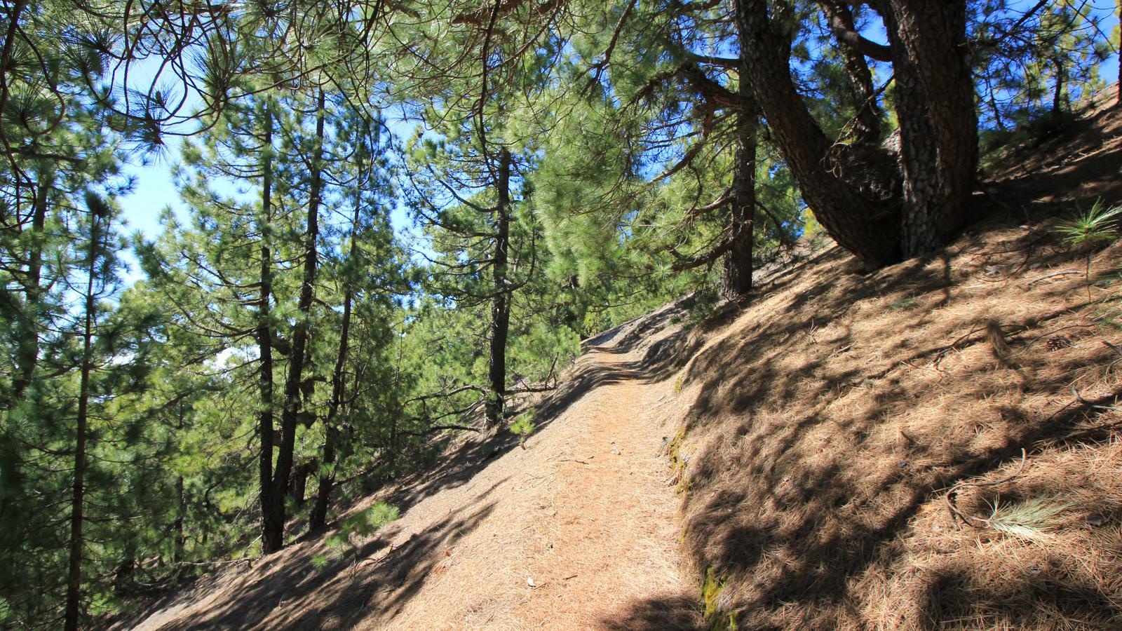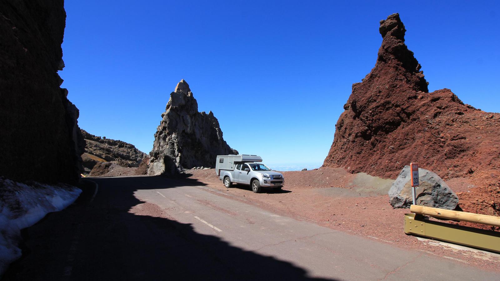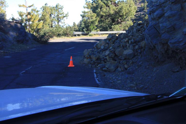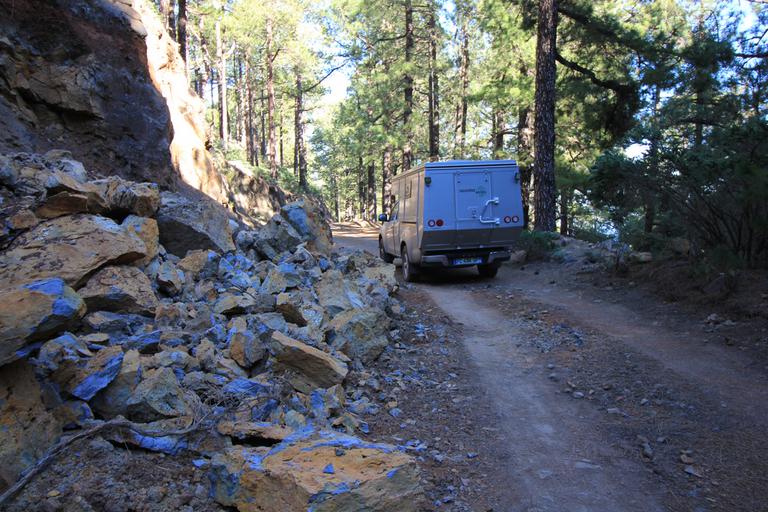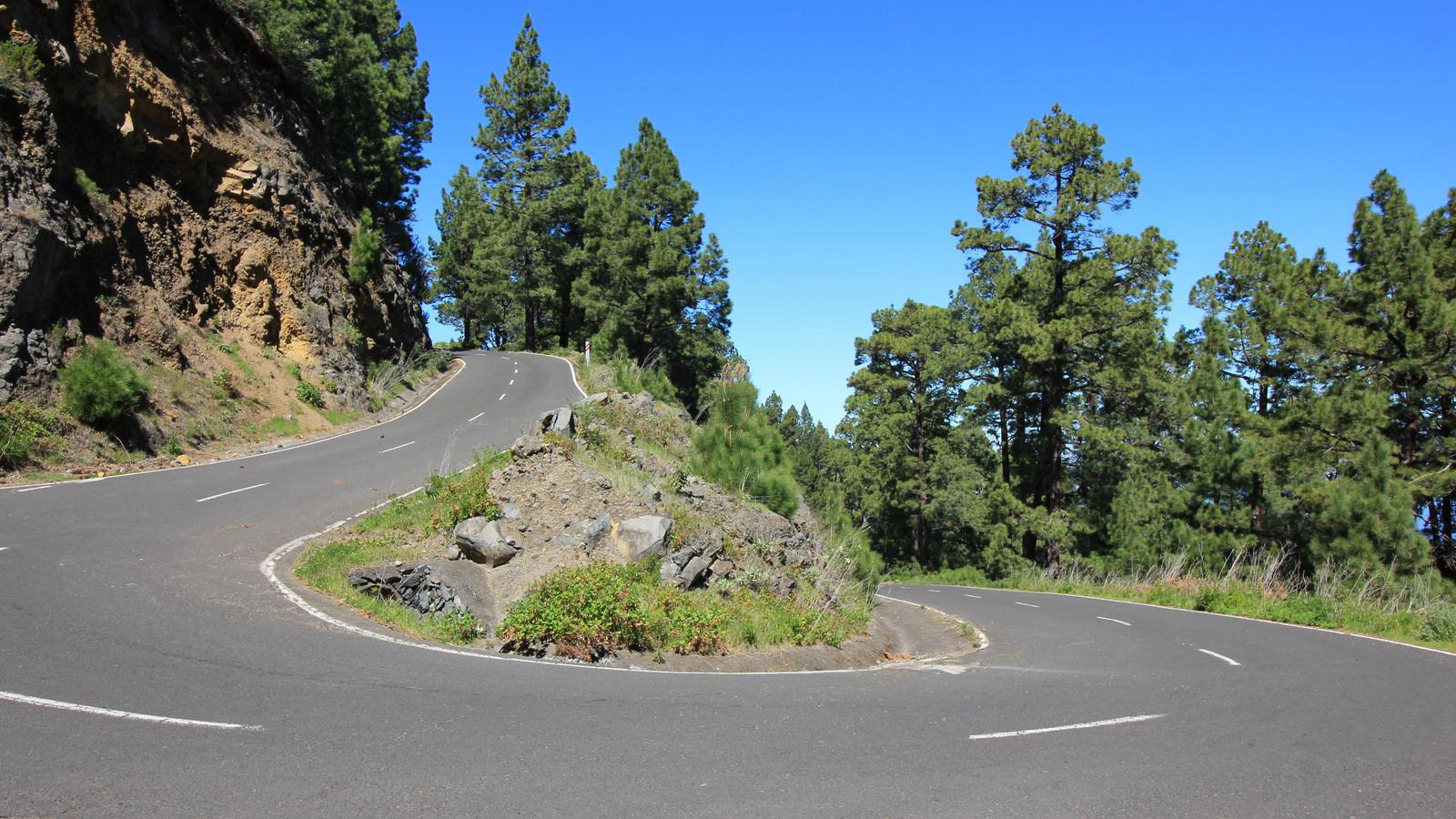 Nous poursuivons notre route jusqu'à Hoya Grande, puis prenons cette fameuse LP-113 qui doit nous mener au sommet de l'île. Nous sommes toujours au milieu des pins, la route est belle et suffisamment large, quelques épingles sont raides, mais sans excès.