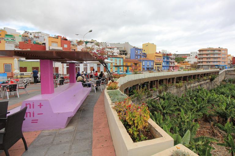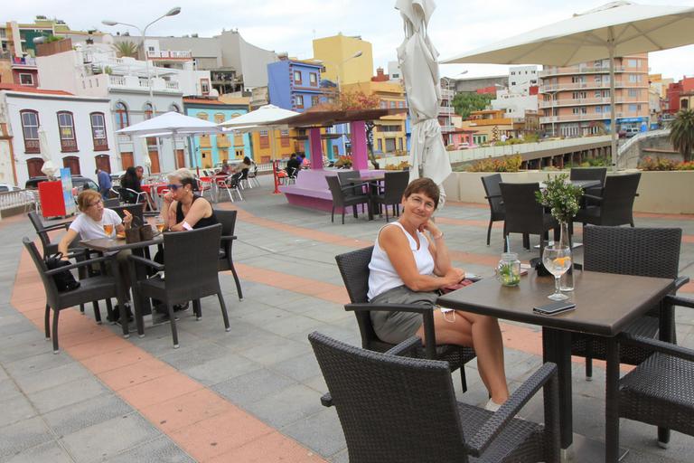 Nous parcourons la Calle Real et les quelques rues pétonnes, aux vieilles façades colorées, puis revenons déjeuner sur la terrasse d'une pizzéria, El Geco Libero. Nous retournons sur la plage de Charco Verde.