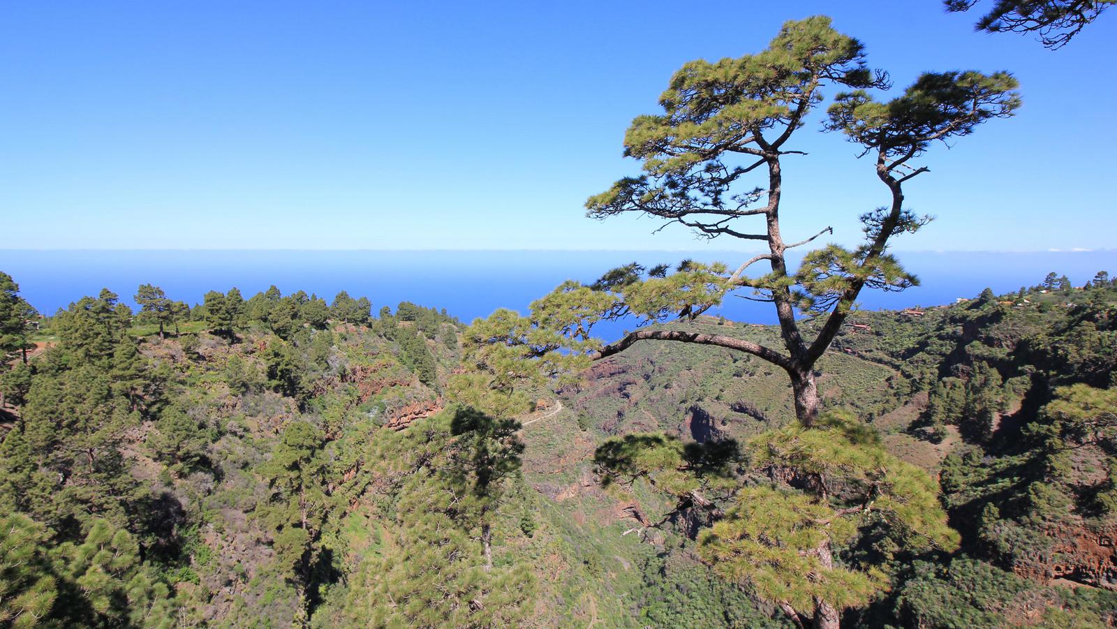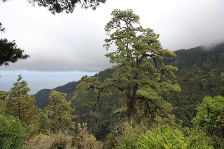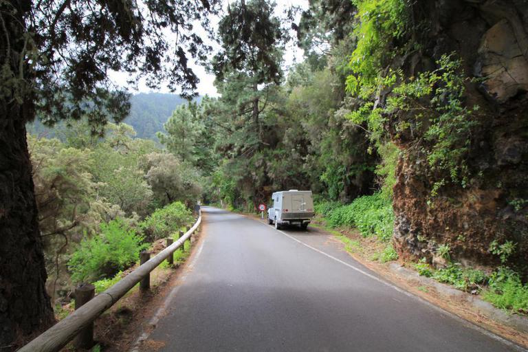 Nous reprenons notre route. En direction de Barlovento, la LP-1 que nous suivons est coupée pour travaux et nous devons bifurquer sur l'étroite LP-111. Les flancs de la caldera de taburiente se font plus accidentés nous retrouvons les forêts que nous avions vues sur la Gomera, constituées de pins canariens ou de lauriers.