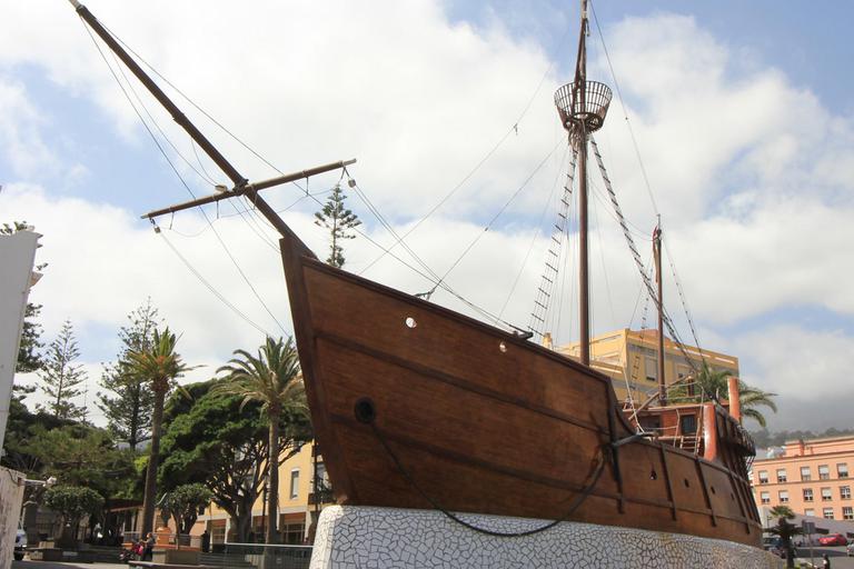 Nous arrivons devant le Barco de la Virgen, la réplique de la caravelle de Christophe Colomb, puis montons au Castillo. Nous redescendons ensuite sur la plaza de Alameda et revenons par la seconde rue piétonne de la ville, la Calle Real.