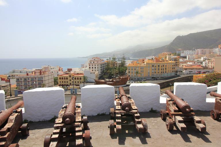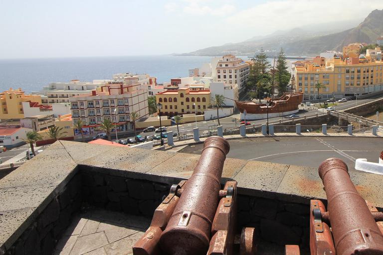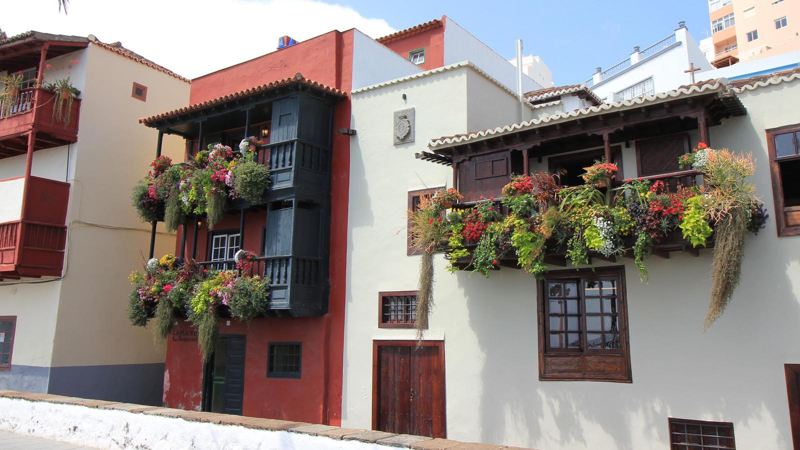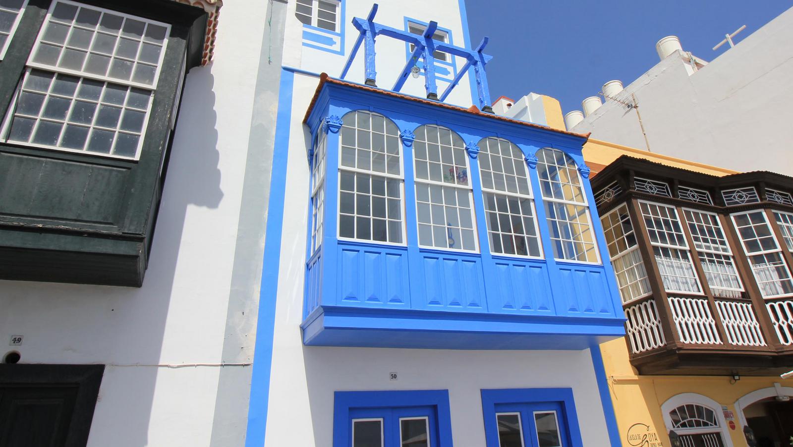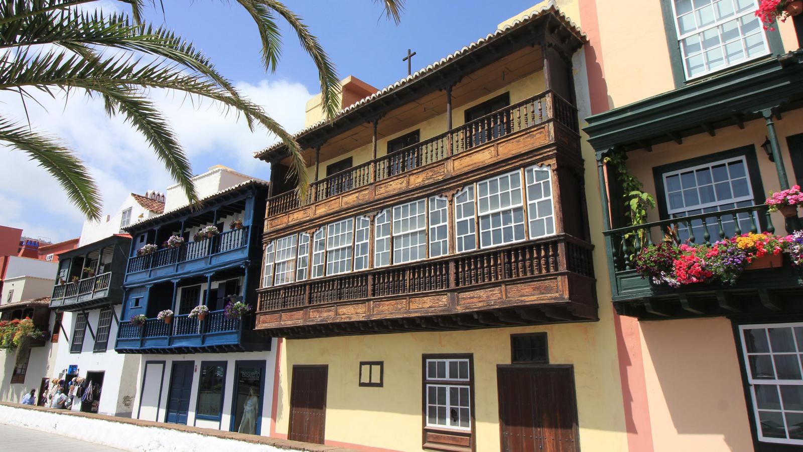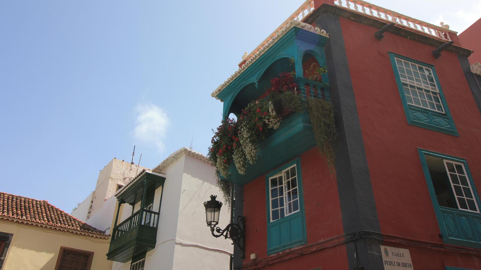 La captitale de l'île est une petite ville de 15 000 habitants, coincée entre la montagne et la mer. Elle est formée, pour l'essentiel, de deux longues rues piétonnes parallèles au front de mer. Nous revenons vers le port par l'avenida Martitima, puis poursuivons celle-ci jusqu'au castillo de Santa Catalina. Le long de cette avenue, nous avons maintenant tout le loisir d'admirer les balcones tipicos, ces beaux balcons en bois simples ou doubles ornant les façades du front de mer...
