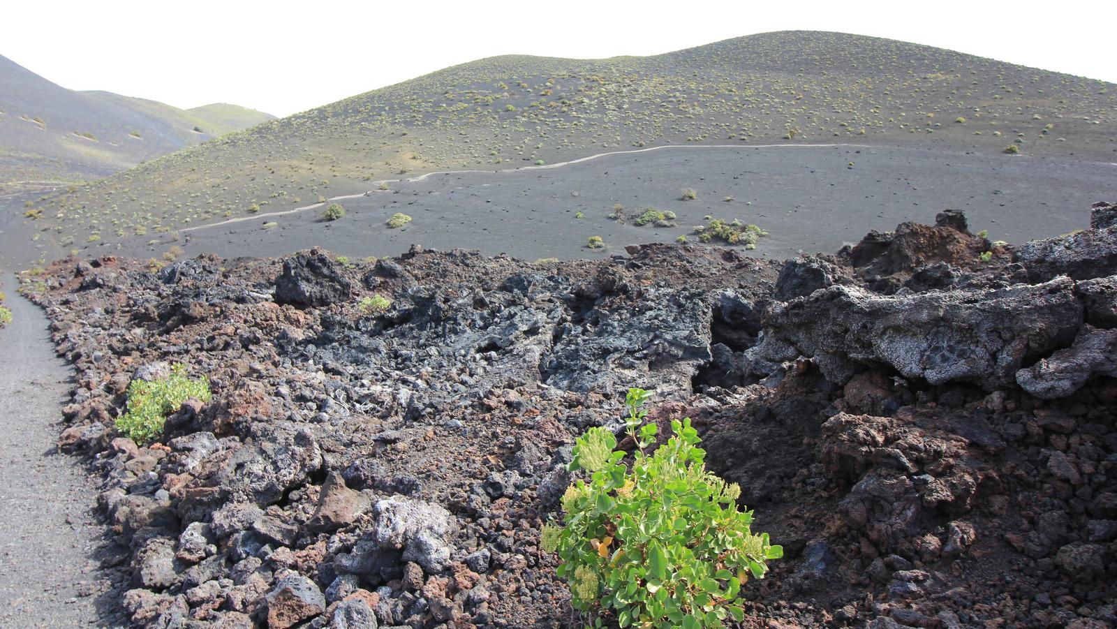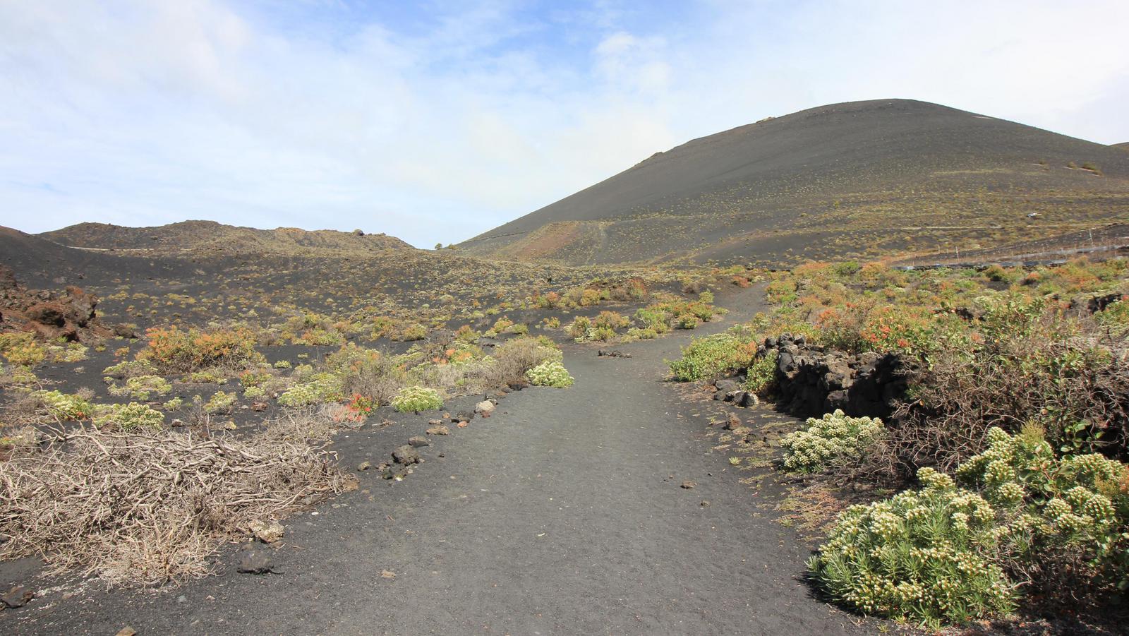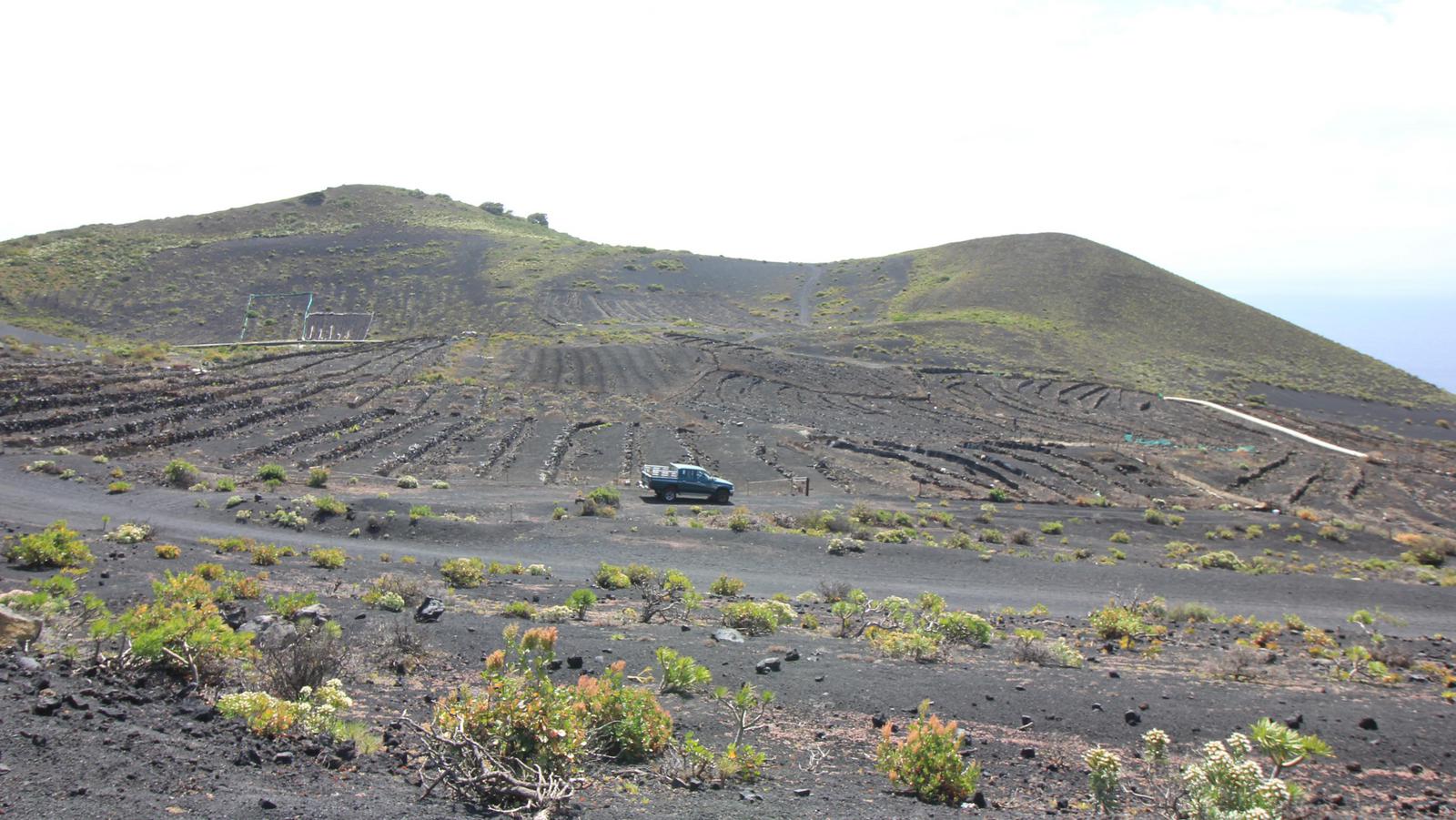Nous approchons du Teneguia, le dernier-né des volcans canariens. Son éruption date de 1971, la lave s'écoula vers la pointe sud de l'île et donna naissance à une nouvelle avancée sur la mer et à une nouvelle plage, la Playa Nueva. Sur ses flancs, des vignes ont été plantées pour produire un des rares vins de l'île, le Teneguia.