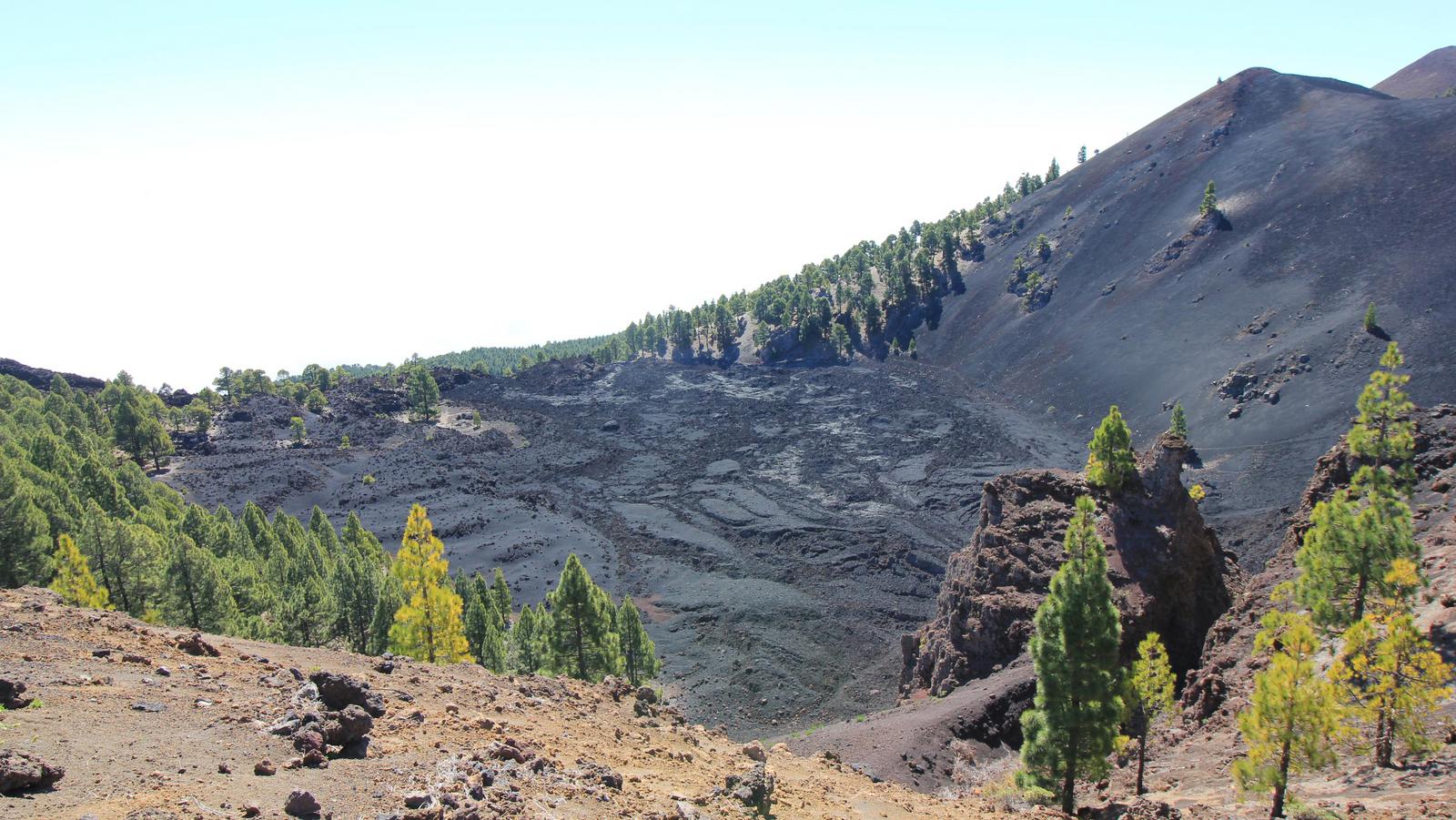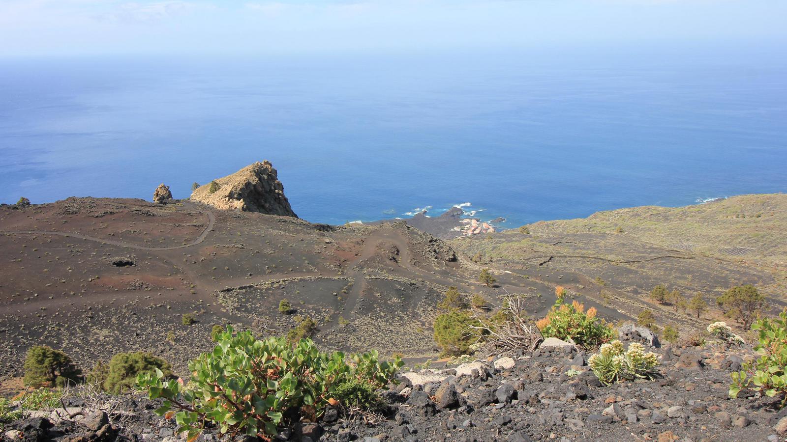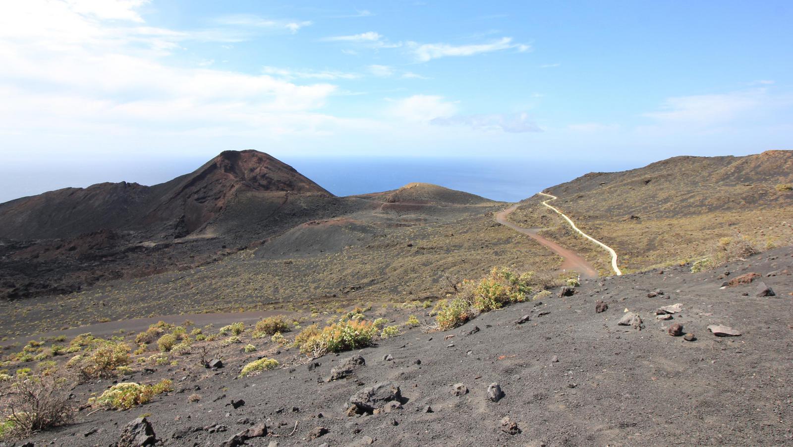 Nous approchons du Teneguia, le dernier-né des volcans canariens. Son éruption date de 1971, la lave s'écoula vers la pointe sud de l'île et donna naissance à une nouvelle avancée sur la mer et à une nouvelle plage, la Playa Nueva. Sur ses flancs, des vignes ont été plantées pour produire un des rares vins de l'île, le Teneguia.