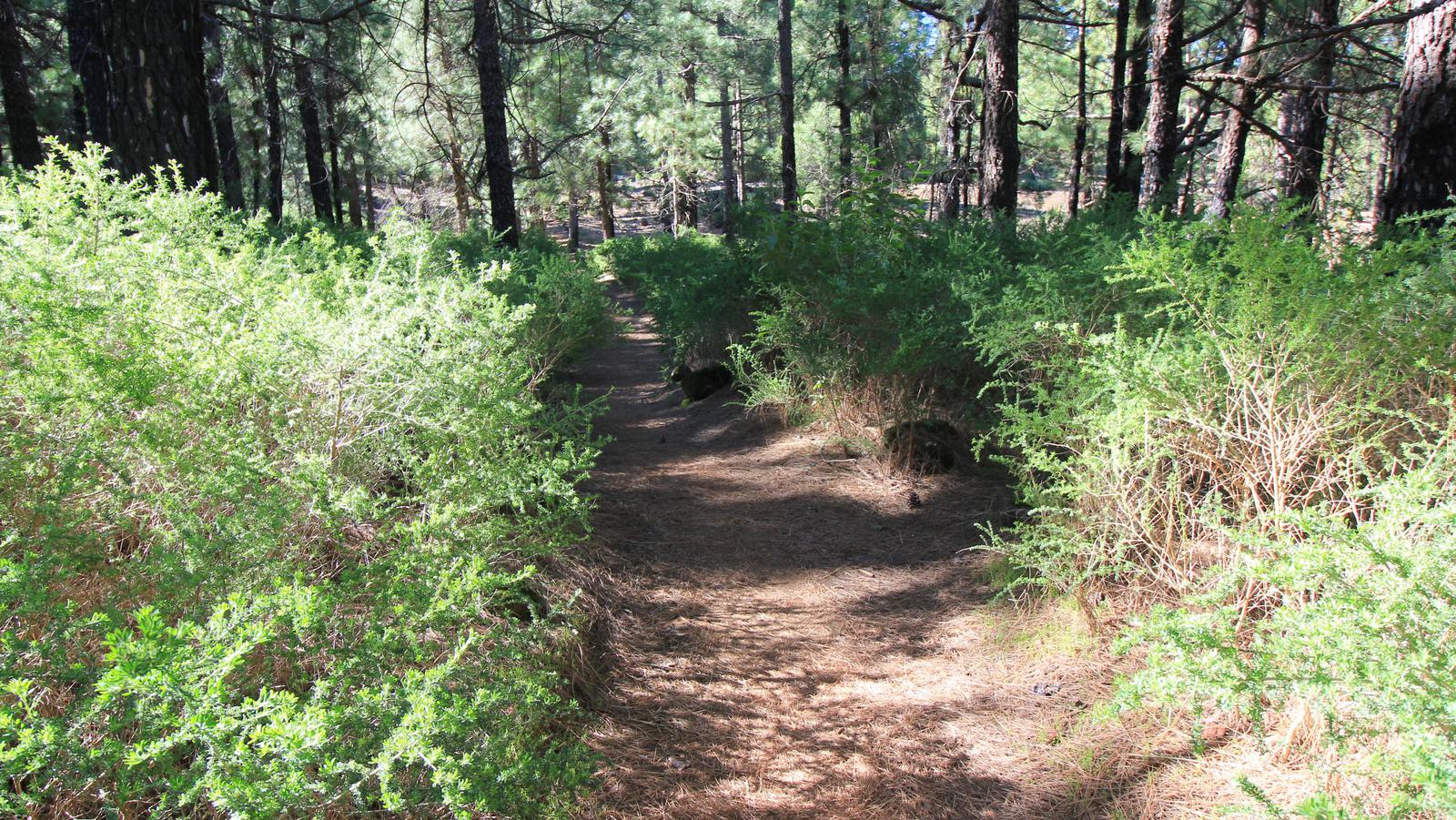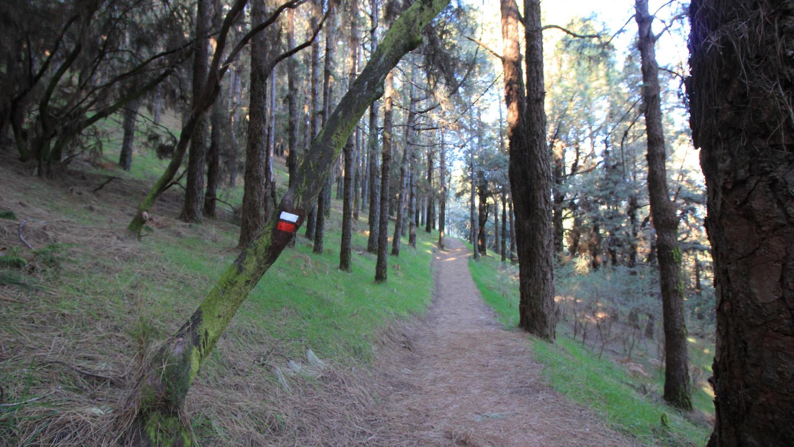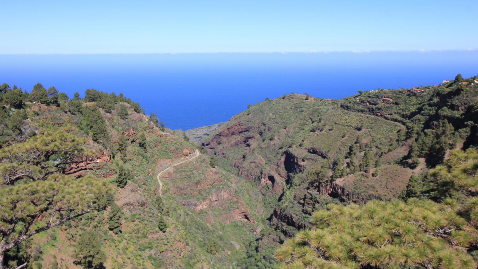Un nouveau barranco plus profond que les précédents nous arrête et nous oblige à revenir sur nos pas pour prendre la LP-1. Nous la quittons aussitôt que possible redescendons en suivant la direction Puerto Naos.