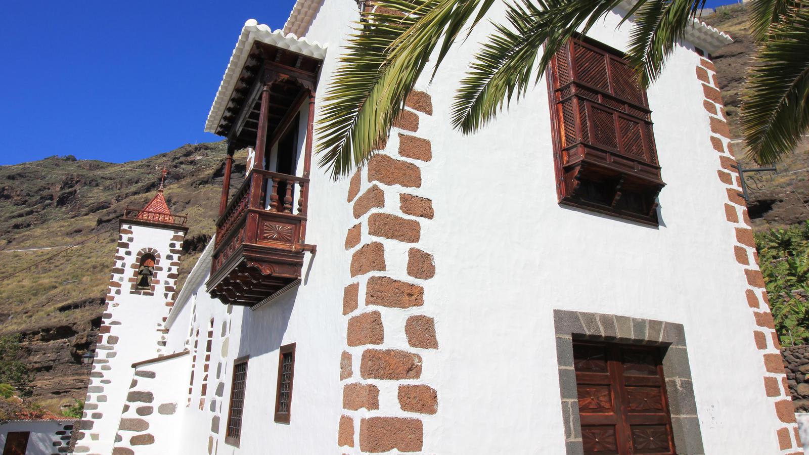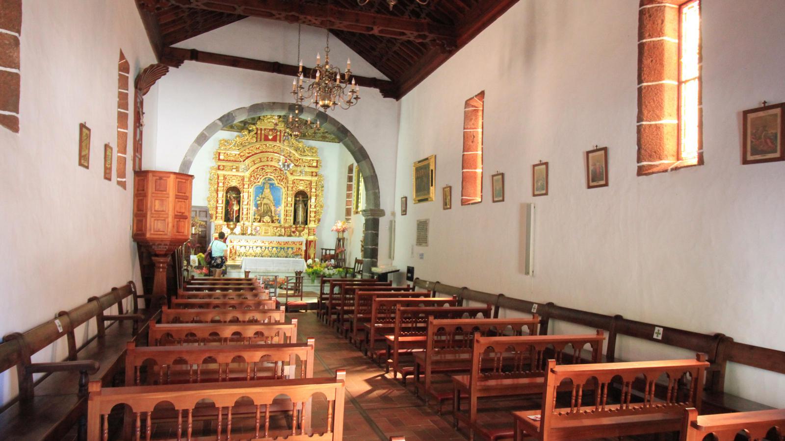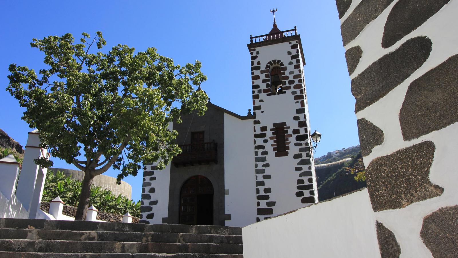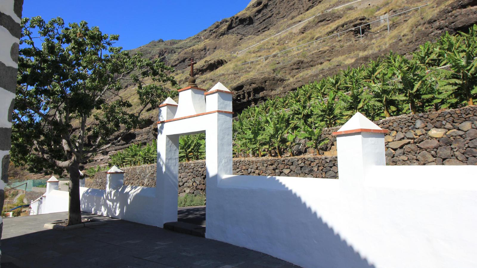 Nous reprenons la voiture et pénétrons à l'intérieur des terres pour retrouver la route LP-1. Au milieu des bananeraies, une splendide église nous apparaît soudain, Nuestra Senora de las Angustias..