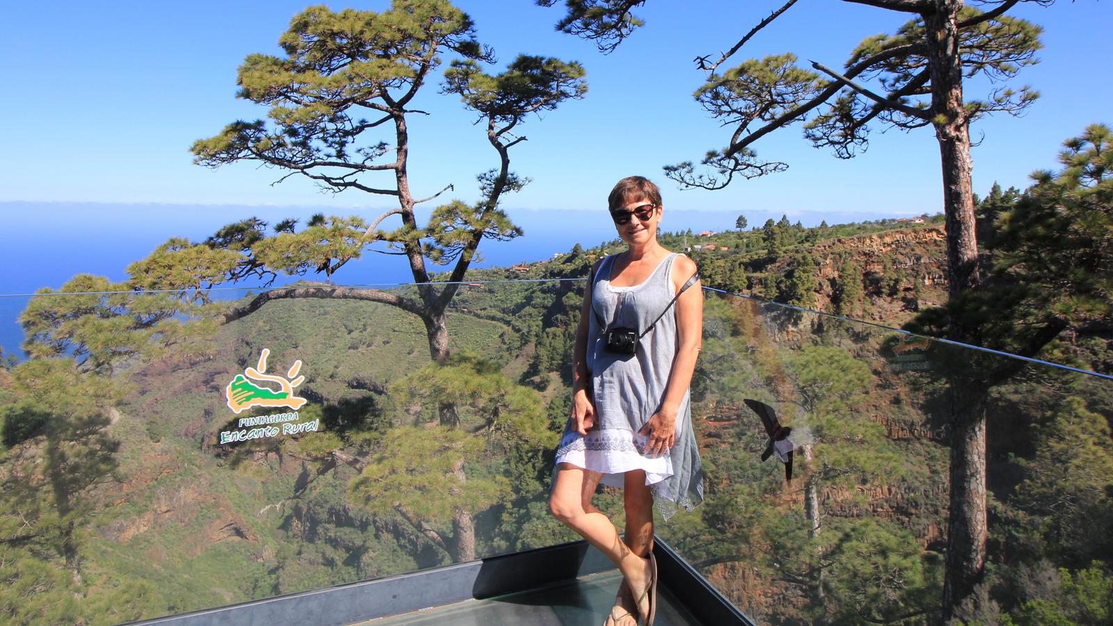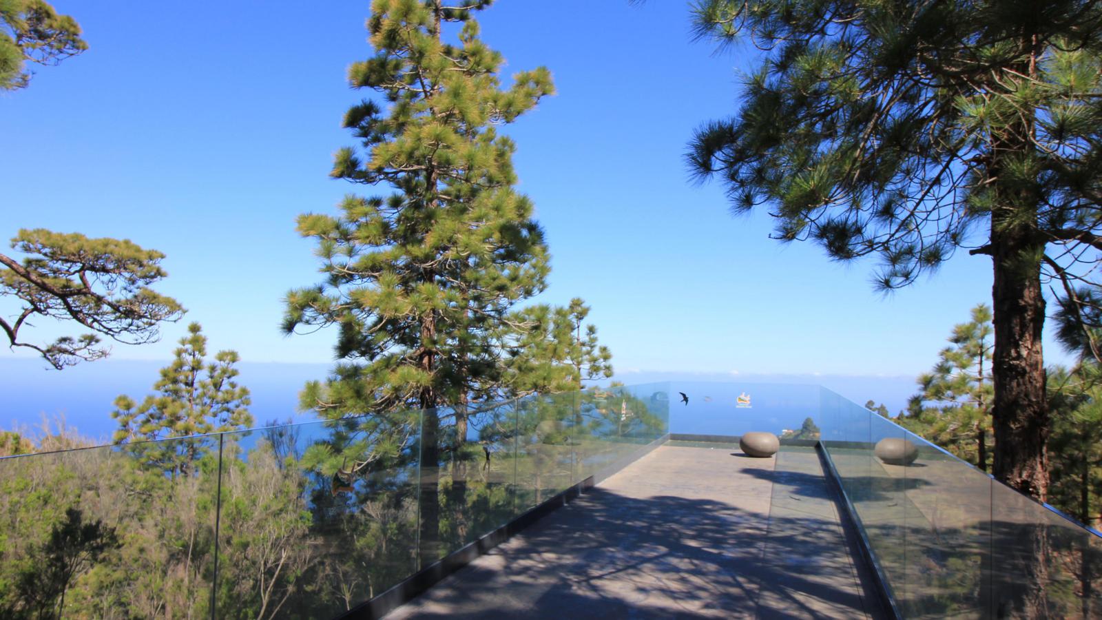 Nous reprenons la route de la veille en direction de Tijarafe. Nous passons rapidement cette première partie, puis faisons un arrêt à Puntagorda pour voir le mirador d'Izcagua et ses passerelles en verre jetées par-dessus le ravin et la forêt de pins.