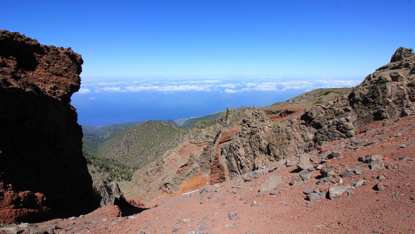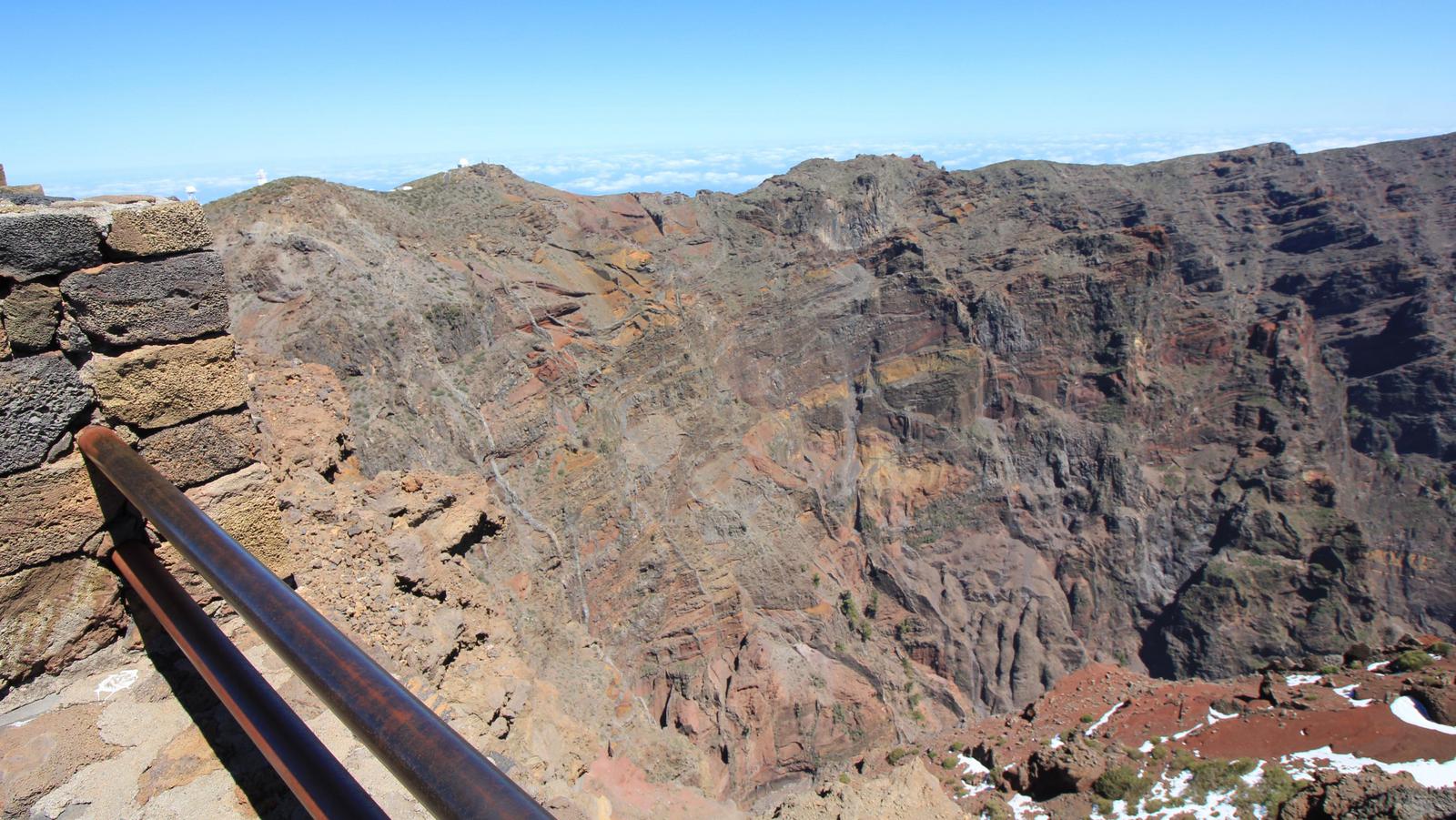 Le Roque en lui-même n'a rien d'exceptionnel et il faut d'ailleurs le contourner et basculer sur l'autre versant pour découvrir l'immense caldera de 9km de diamètre. Celle-ci étant le résultat de plusieurs éruptions, la compréhension du site est complexe, d'autant qu'elle s'ouvre vers l'ouest en direction du barranco de las Angustias 2000m plus bas...