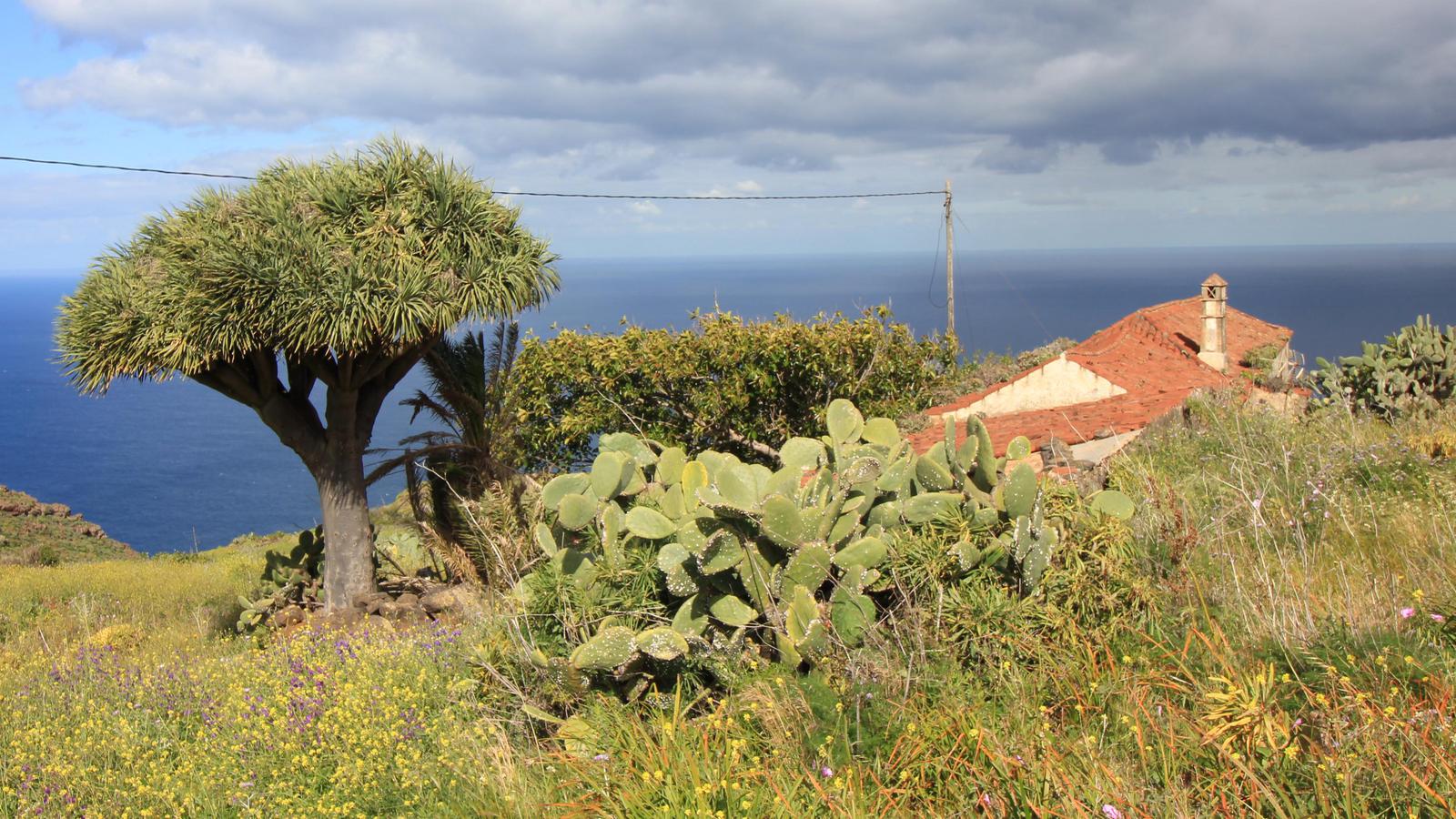 Le village de Los canarios s'étend à flanc de montagne au-dessus du San Antonio. Côté architecture, rien d'extraordinaire, mais on trouve quand même quelques vieilles maisons typiques de l'île, très basses et formées de plusieurs pièces accolées dont chacune est couverte d'une toiture à quatre pans en tuile. ici les habitants sont plus orientés vers l'agriculture et la vigne que sur l'accueil des touristes. Nous prenons une patisserie et un café et attaquons la redescente.