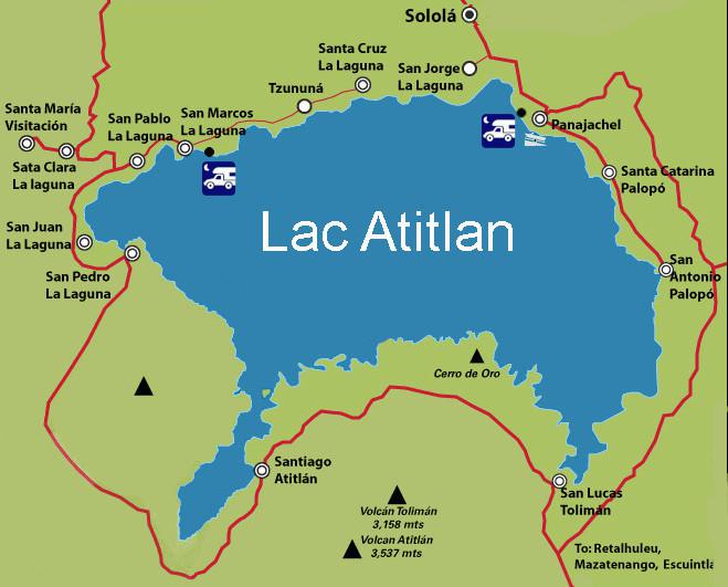 Le lac Atitlan mesure 18km de long et 8km de large. Il se situe à une altitude de 1560m et sa profondeur atteint 350m. Son environnement est constitué de hautes montagnes couvertes de caféiers dont trois volcans culminant à plus de 3000m. De nombreux villages indigènes sont présents autour du lac, peuplés de descendant mayas, avec une forte représentation des communautés Cakchiquels et Tzutuhils.