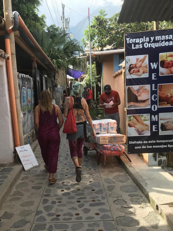 Nous devons faire quelques courses. Nous retournons à pied au village de San Marcos distant d'un peu moins de 2km. Ce village maya cakchiquel est devenu un lieu à la mode pour les nouvelles générations de baba-cools, adeptes de yoga, de méditation, de massages et de plats végétariens.