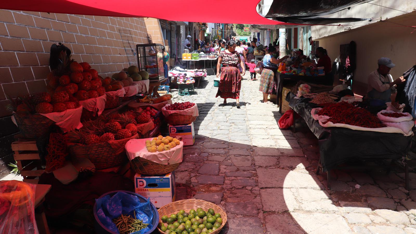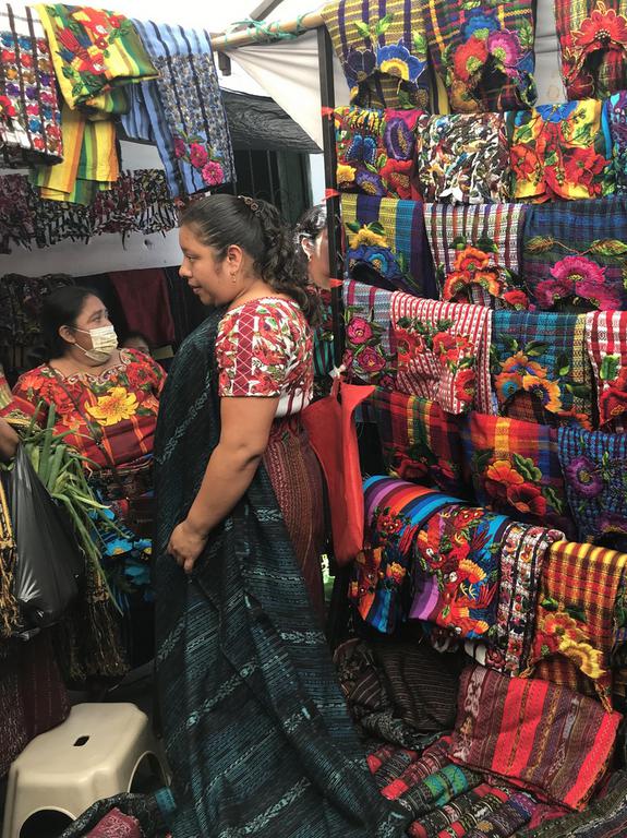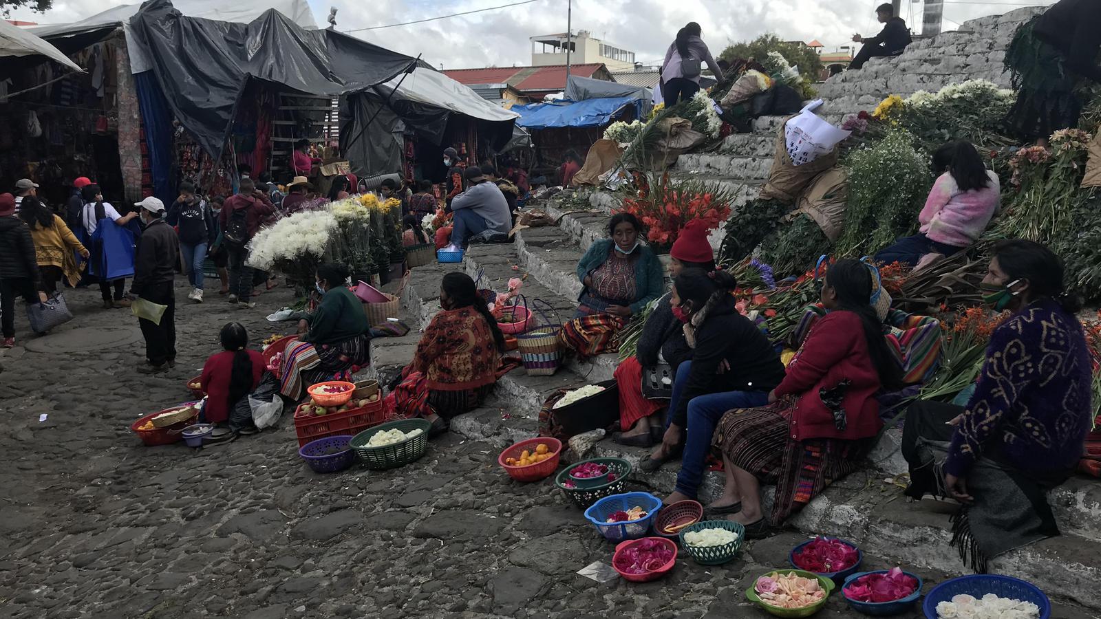 Avant la pandémie, San Pedro était devenu un des villages de la région attirant le plus de touristes. Les rues basses, près des pontons, ne sont occupées que par des boutiques et des restaurants à destination de ceux-ci, fermés pour la plupart. En revanche, dès que l'on s'éloigne du débarcadère, les rues s'animent, les Tzutuhils sont de sortie, aujourd'hui c'est jour de marché!