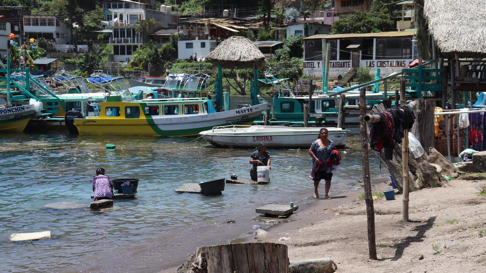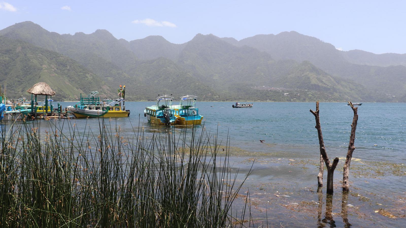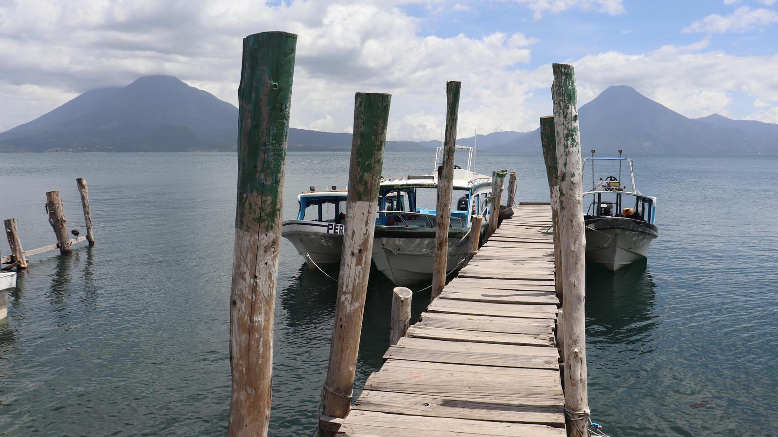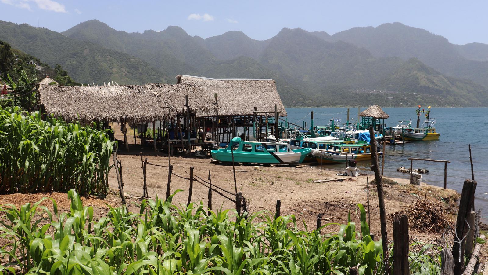 Nous revenons à l'embarcadère et prenons la première lancha pour Panajachel. Nous débarquons cette fois au centre du village, l'endroit le plus touristique du lac Aatitlan. Les lanchas sont aux pontons et les restaurants sont vides. Les serveurs font la chasse aux rares touristes. Nous n'échappons pas à leurs sollicitations mais nous préférons revenir nous reposer dans notre havre de paix.