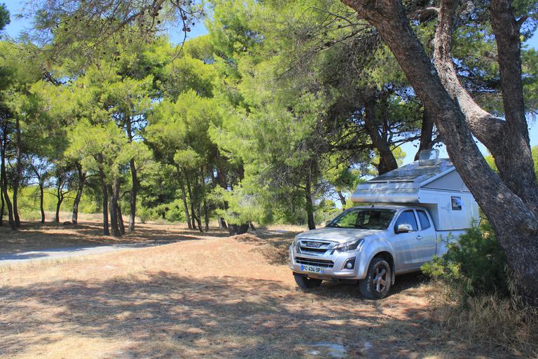 L'emplacement est vraiment agréable, et l'ombre du pin généreuse à toute heure de la journée. Dommage qu'il y ait autant de déchets plastiques, mais çà c'est une généralité quelque soit le lieu. Isa fait de son mieux et ramasse pailles et petits morceaux de plastique autour du camping car.