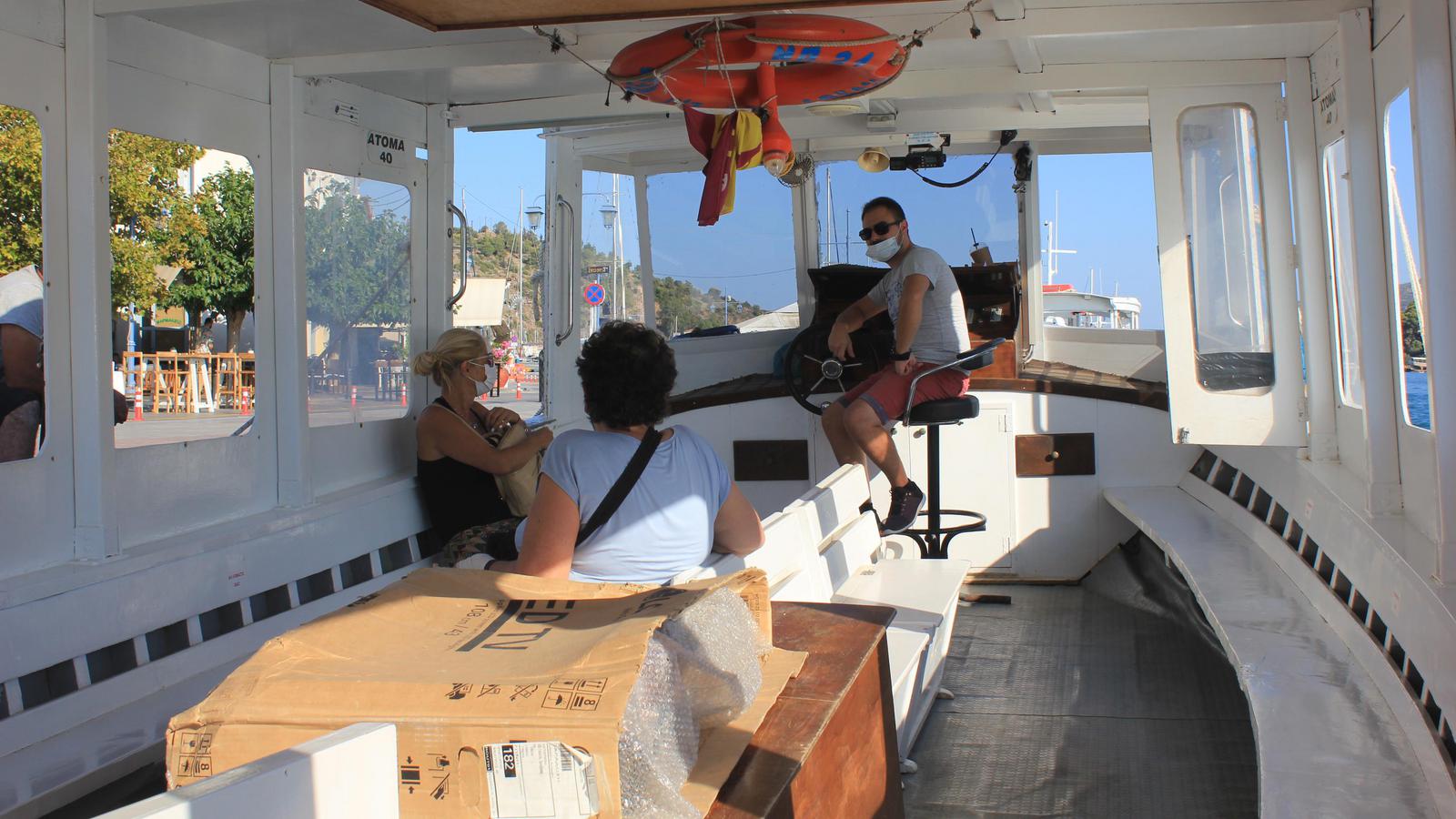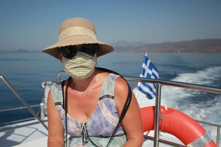 Nous achetons nos billets et montons sur le bateau. Nous ne sommes que 5 sur le pont supérieur, mais il nous faut néamoins porter le masque et le personnel veille à nous le rappeler.