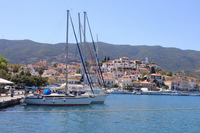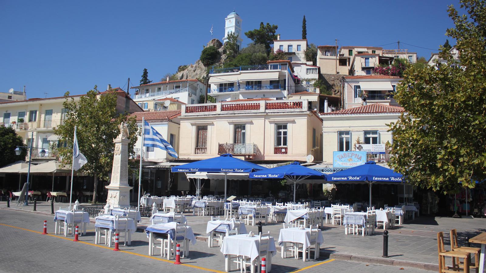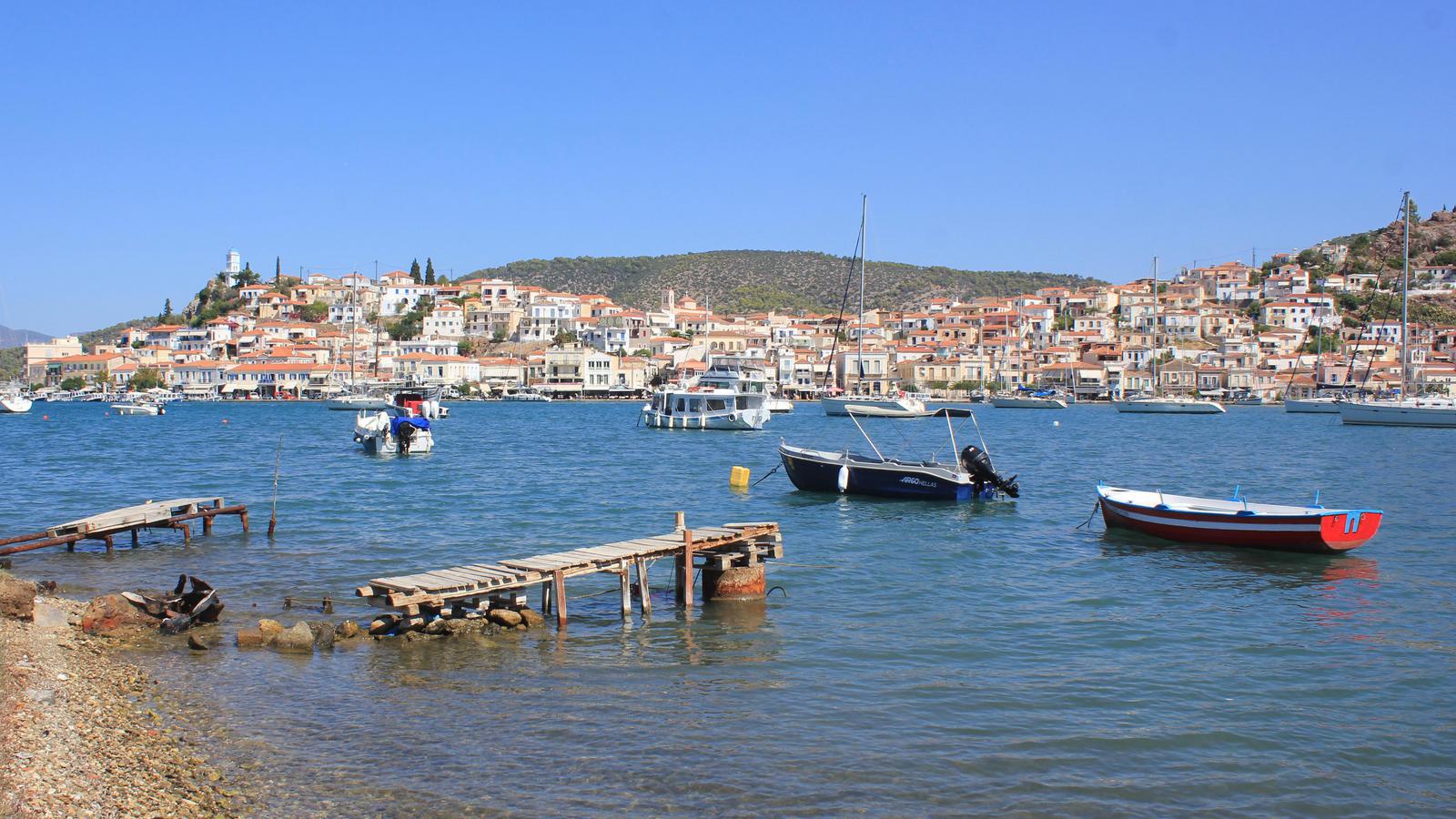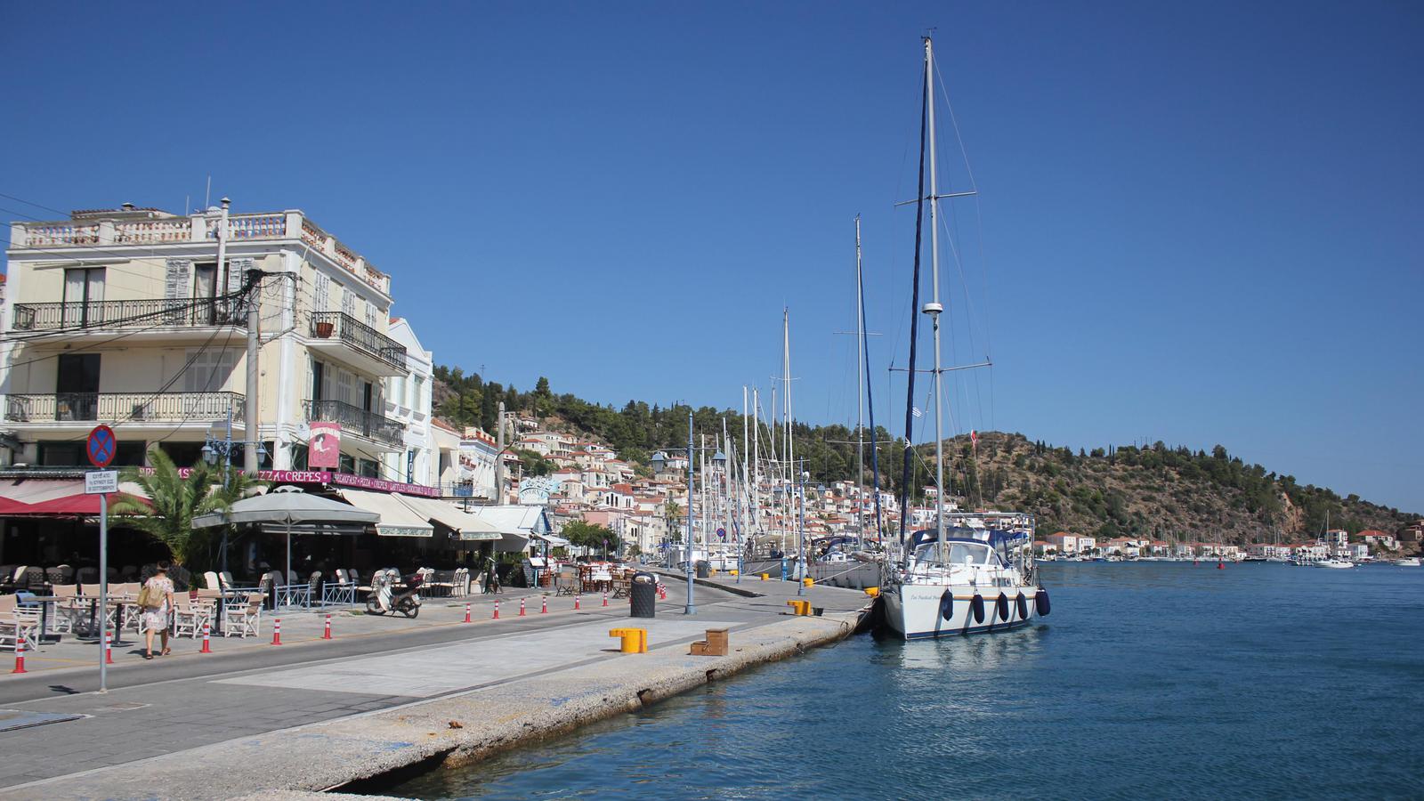 Poros se situe à une centaine de mètres du continent et à toute heure, des bateaux-taxi permettent de faire la traversée pour 1€. Comme à Hydra la veille, nous constatons ici que la saison estivale est bel et bien terminée, mis à part quelques plaisanciers, il n'y a plus aucun touriste.
