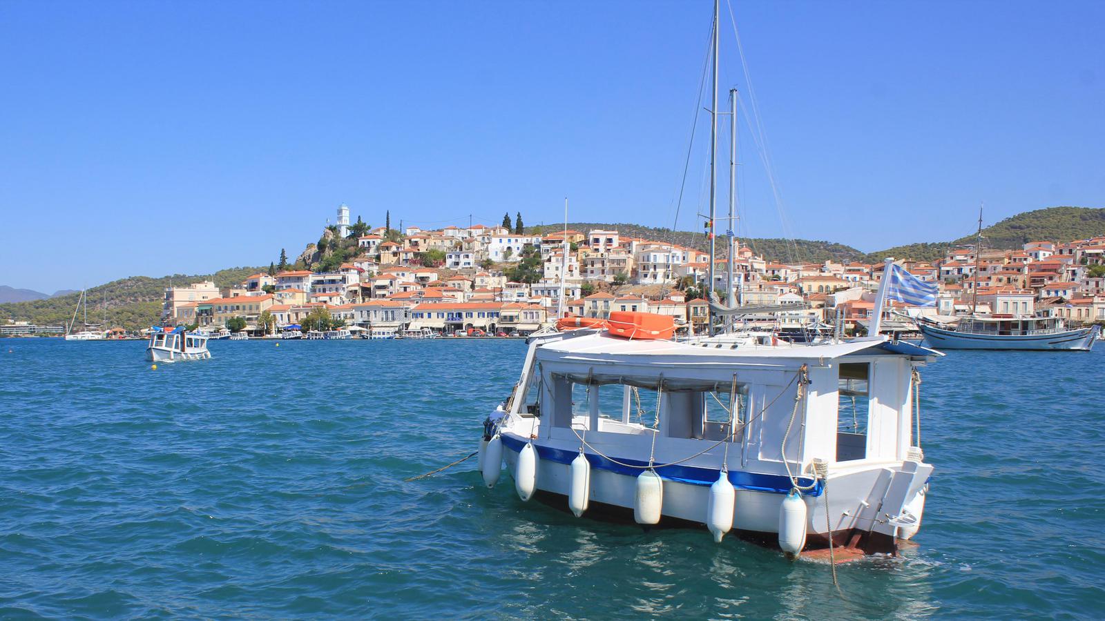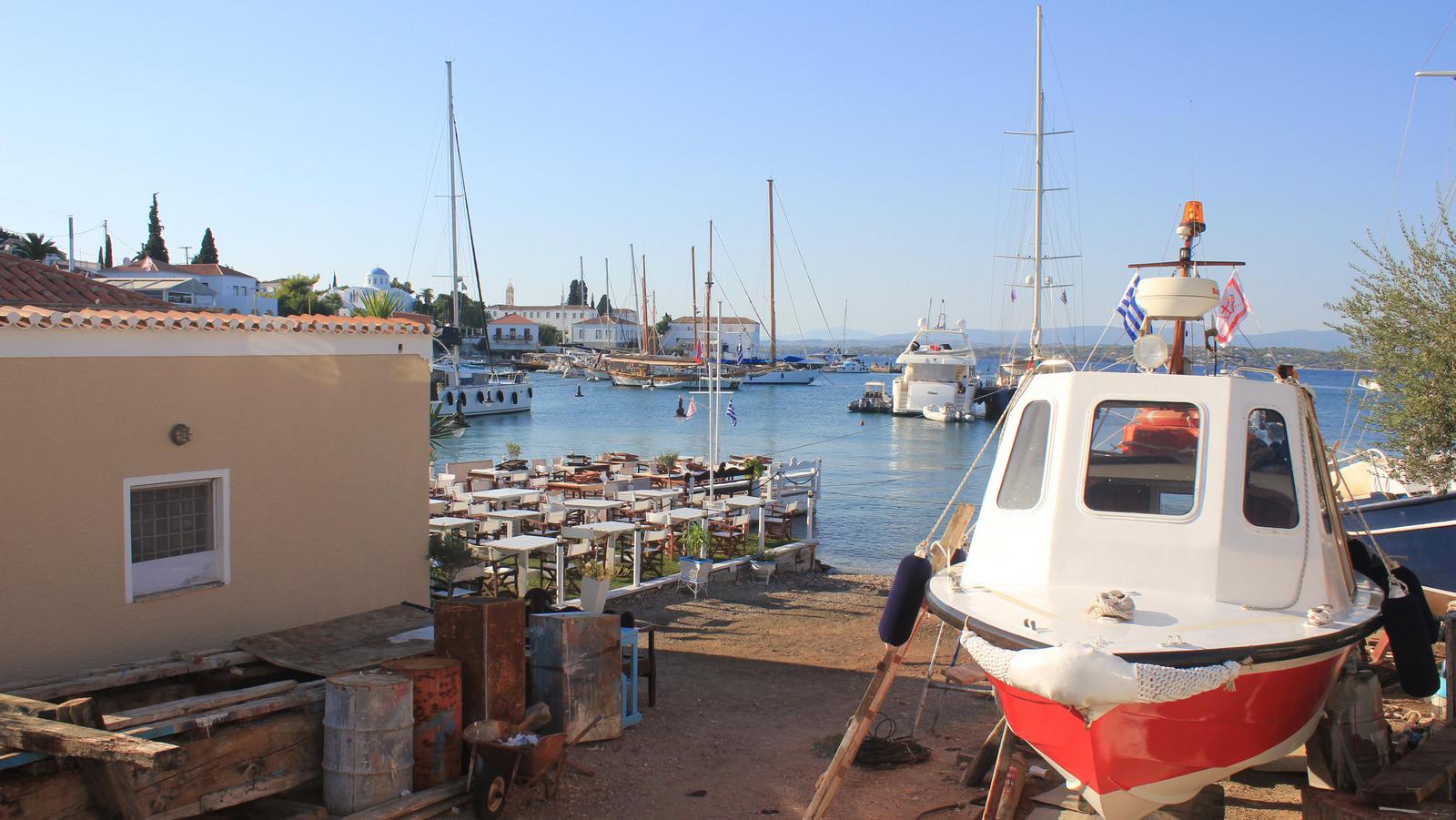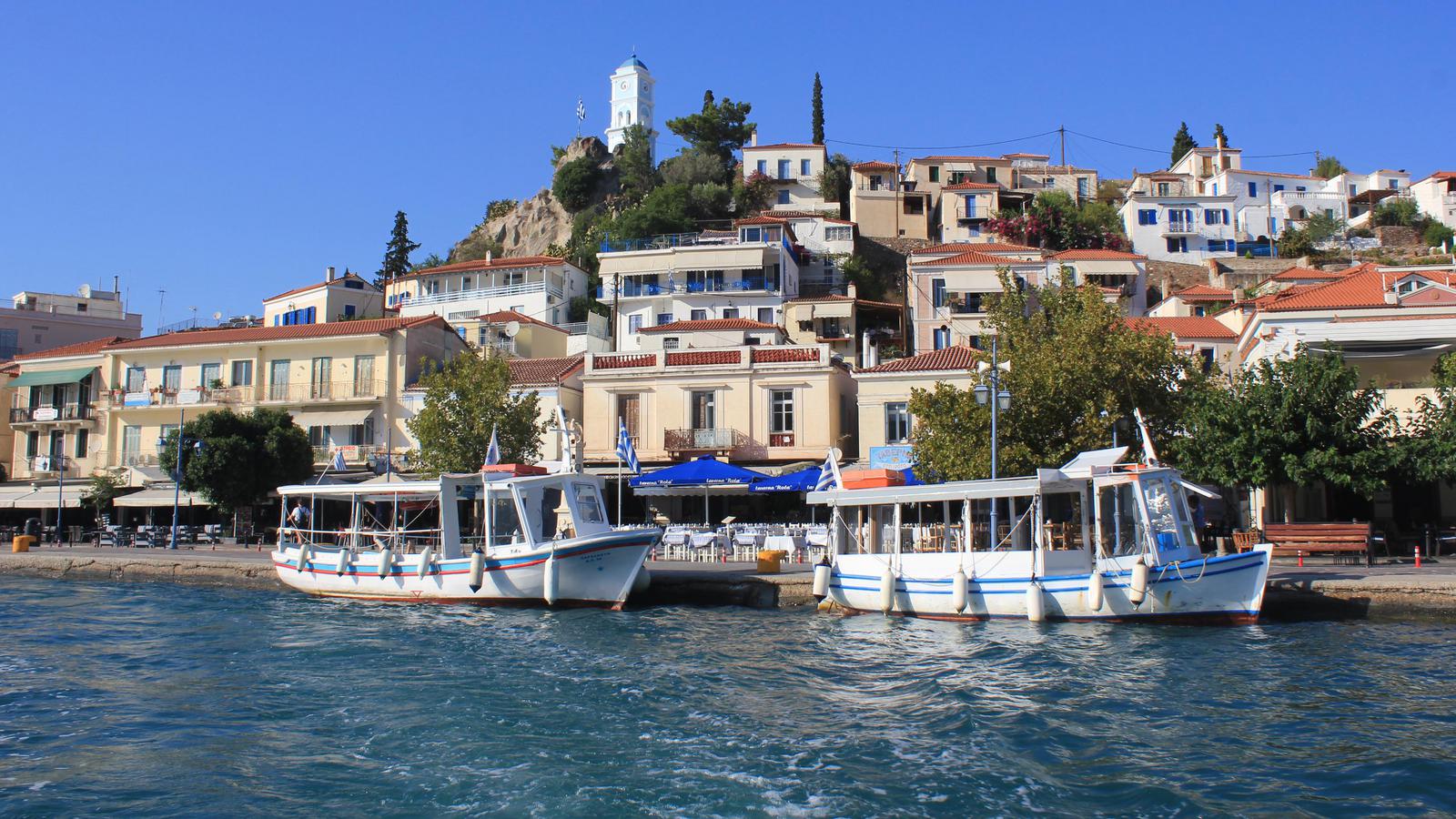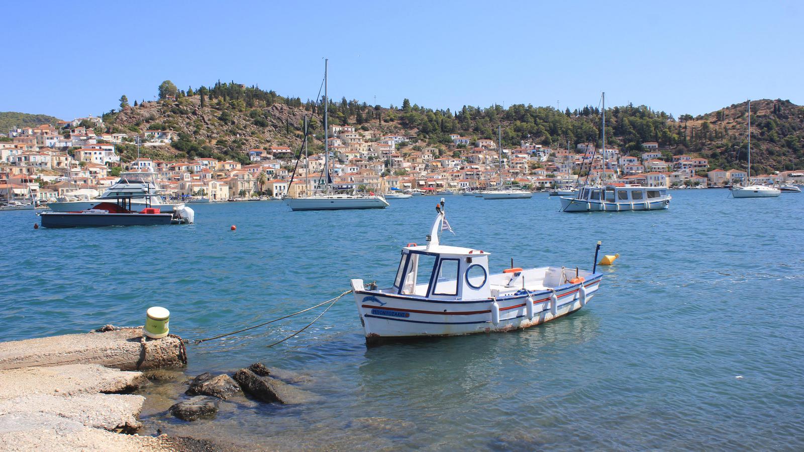 Poros se situe à une centaine de mètres du continent et à toute heure, des bateaux-taxi permettent de faire la traversée pour 1€. Comme à Hydra la veille, nous constatons ici que la saison estivale est bel et bien terminée, mis à part quelques plaisanciers, il n'y a plus aucun touriste.