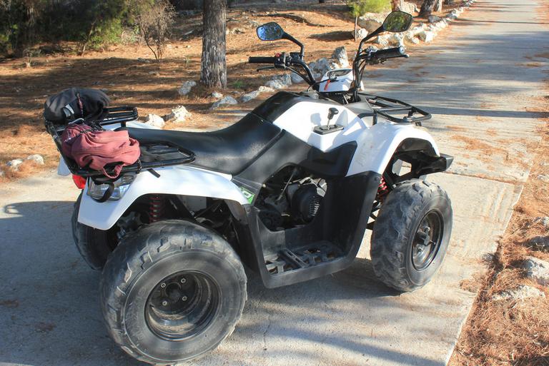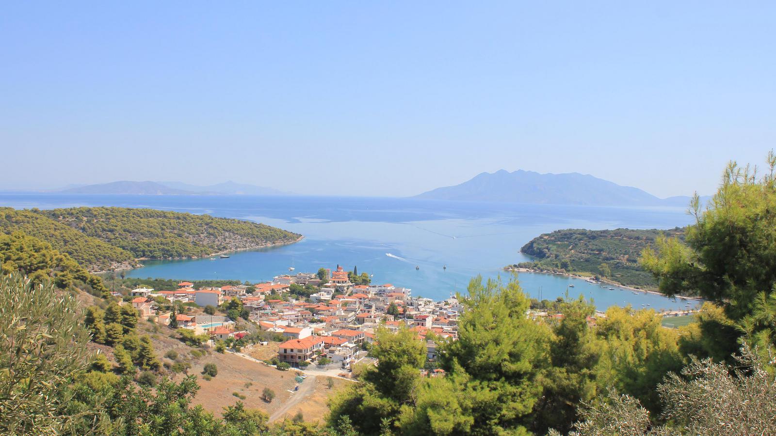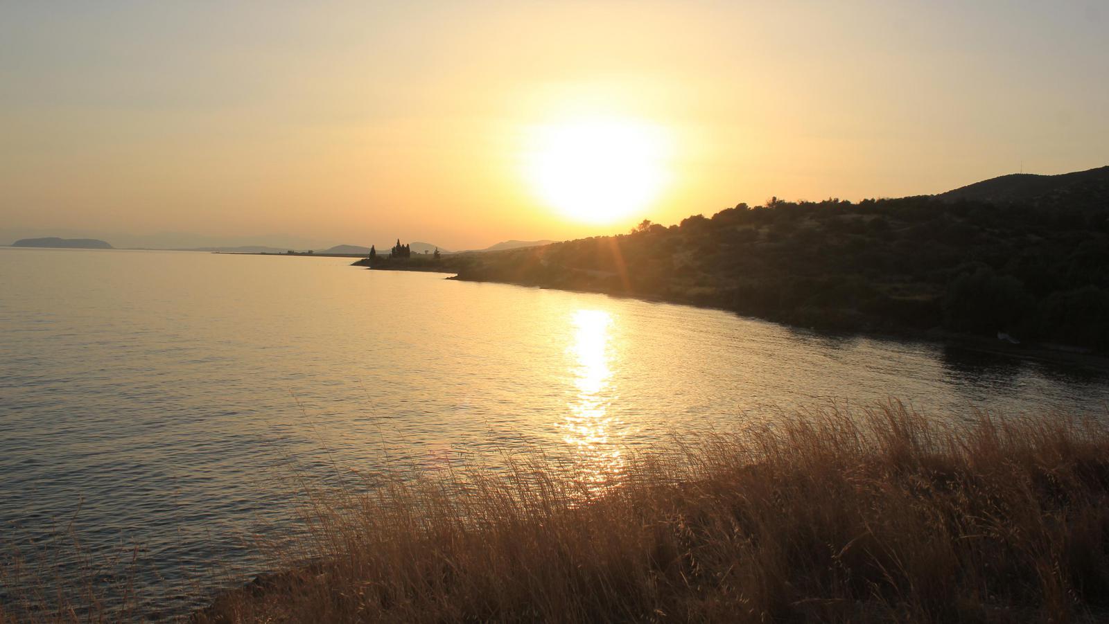Nous roulons jusqu'à Korfos, une petite station balnéaire construite au creux d'une magnifique baie au bout d'une route en cul de sac. Hélas, les possibilités de bivouac ne nous satisfont pas, nous choisissons de revenir sur nos pas et de poursuivre notre chemin.
