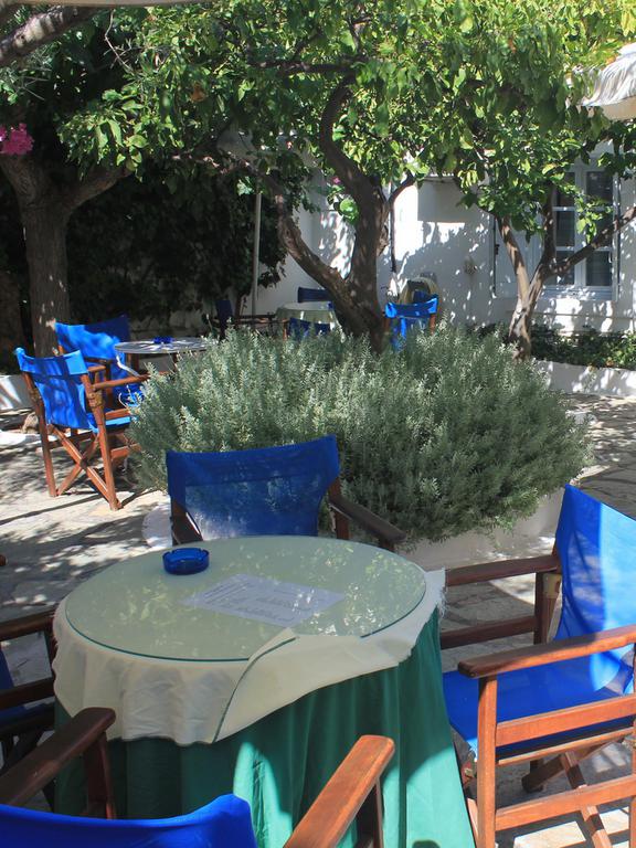 Nous revenons au niveau de la mer et marchons en direction du hameau de Vlychos. Le bar restaurant Téchnè se présente devant nous. Ses petits salons maçonnés et blanchis, disposés à l'ombre de grands palmiers, nous invitent à une pause absolument indispensable que nous ne nous refusons pas.