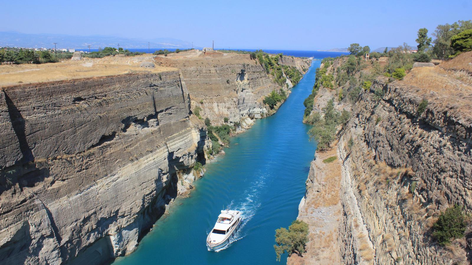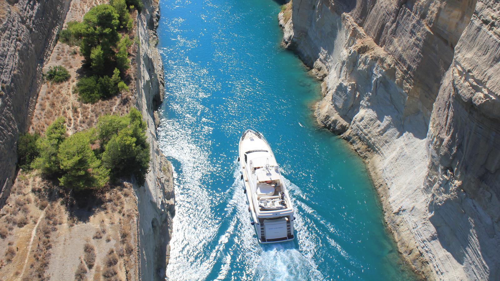 Les gros navires sont rares en cette période de covid, mais nous avons néanmoins la chance de suivre la progression d'un yacht. Nous reprenons notre route, et faisons notre ravitaillement dans un Lidl à Corinthe.