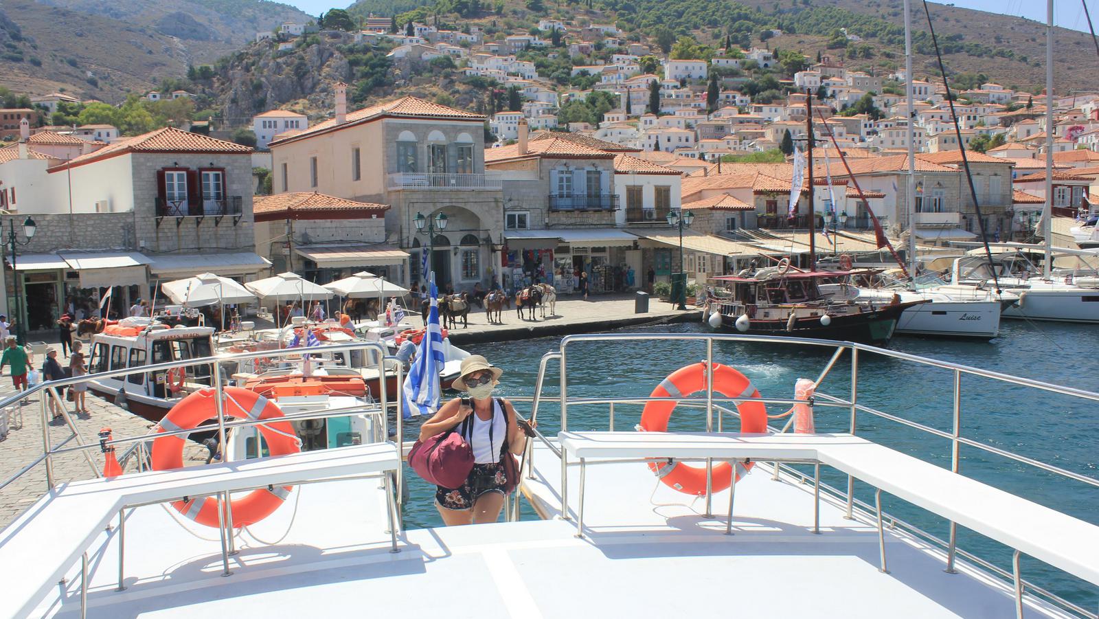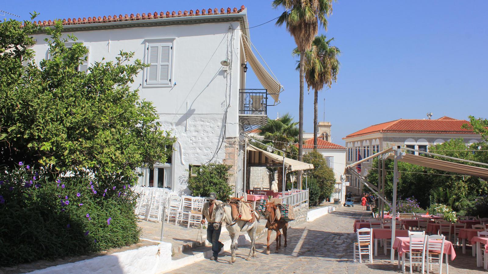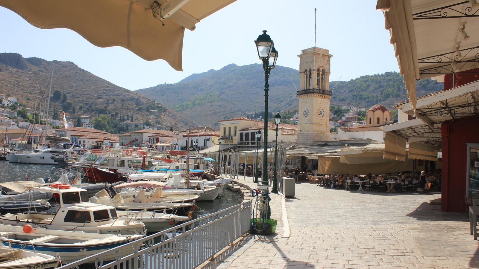 En temps normal, Hydra est une escale pour les bateaux de croisière... En ce début septembre, à part quelques plaisanciers, il n'y a guère que les habitants du village installés aux terrasses des cafés.