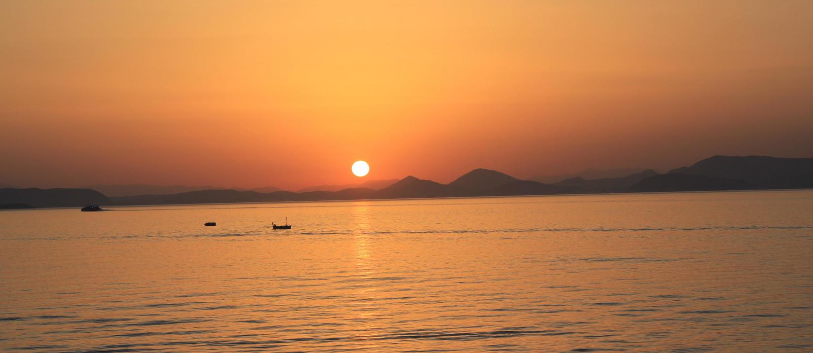 Nous revenons à la chambre, puis ressortons en fin de soirée pour assister au coucher du soleil. Nous rejoignons dans un premier temps la plateforme près du musée de l'île, mais celle-ci est déjà à l'ombre comme la majeure partie du port. Les derniers bateaux tentent de trouver une place d'amarrage, c'est le balai identique à celui des camping-cars sur les aires de services à cette heure de la journée. Les plus luxueux sont plus sereins, ils sont attendus et une place leurs est réservée.