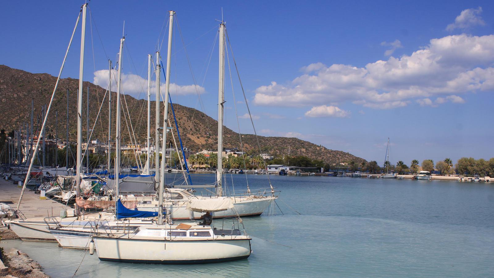 Nous quittons Hydra après un dernier café frappé sur le port, la mer est toujours aussi calme. Les voiliers sortent du port et font un tour au moteur puis reviennent à quai. Cela fait certainement des jours qu'ils n'ont pas sorti les voiles.