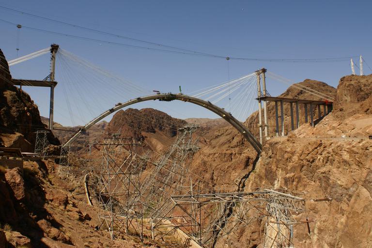 Le Mike O'Callaghan-Pat Tillman Memorial Bridge a été inauguré en octobre 2010. C'est le 11ème pont le plus haut au monde, il surplombe le Colorado de 275m. Lorsque nous étions venus en 2009, la phase spectaculaire de la construction de la voûte était en cours d'achèvement...