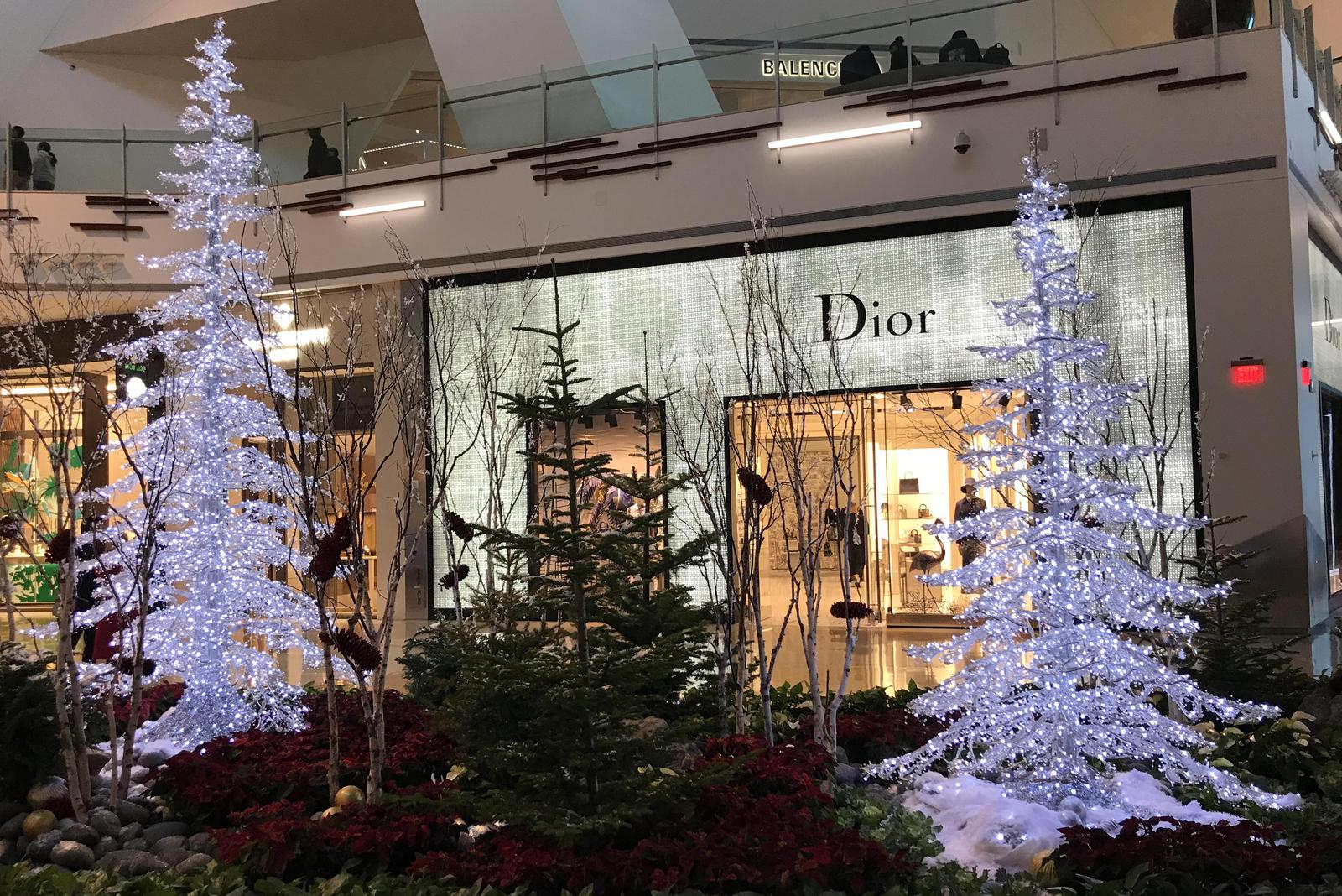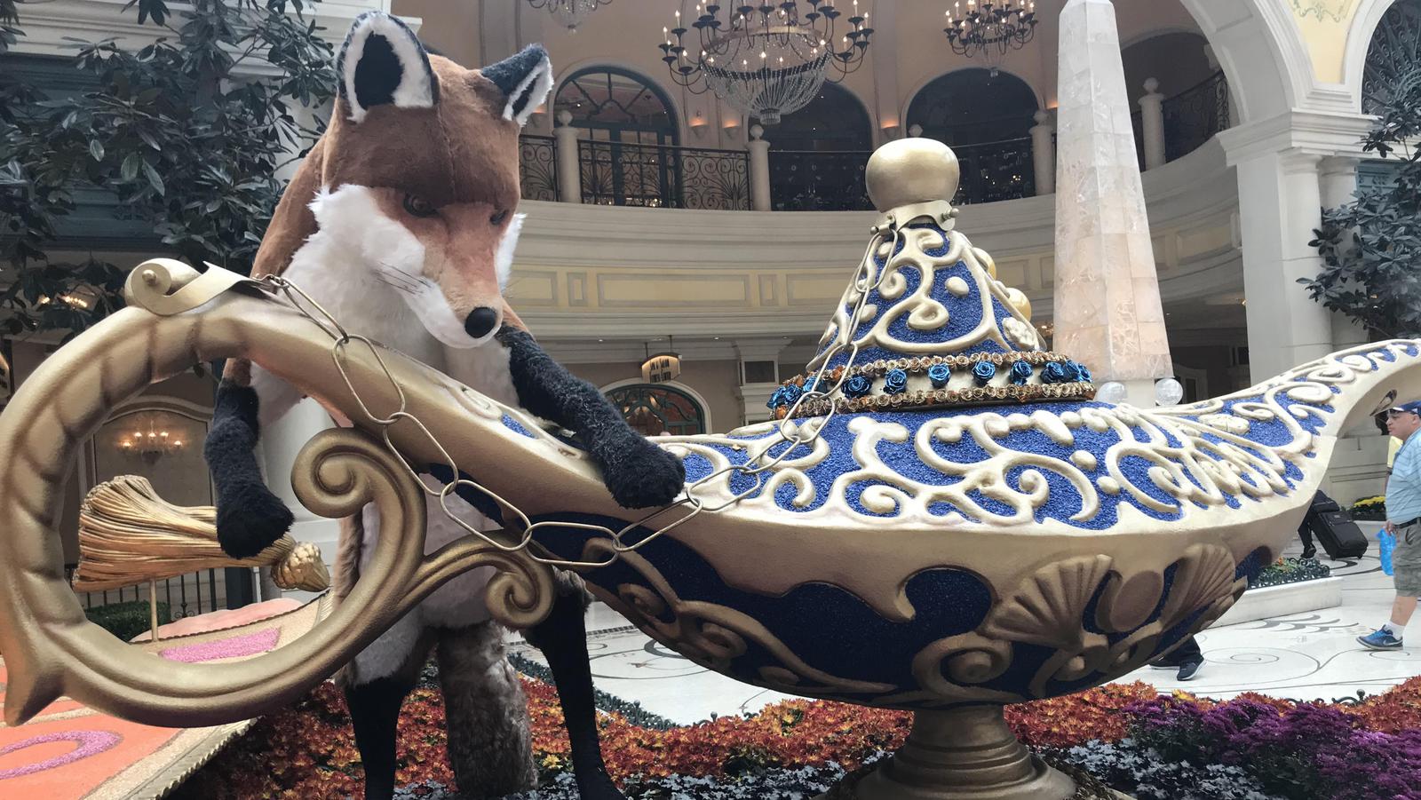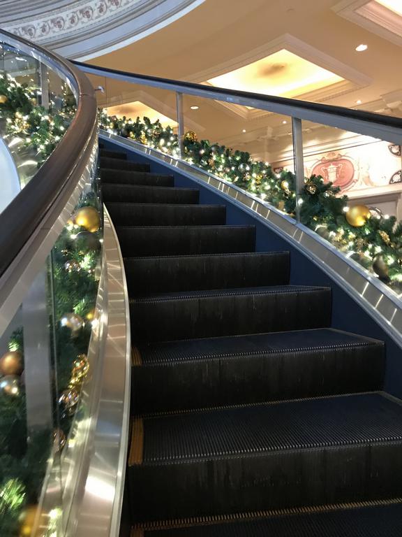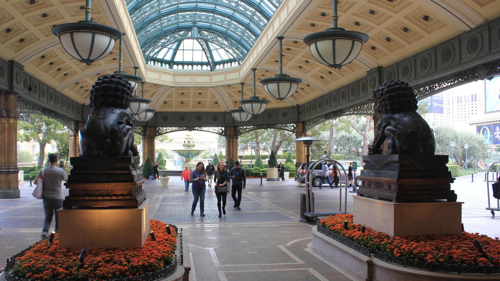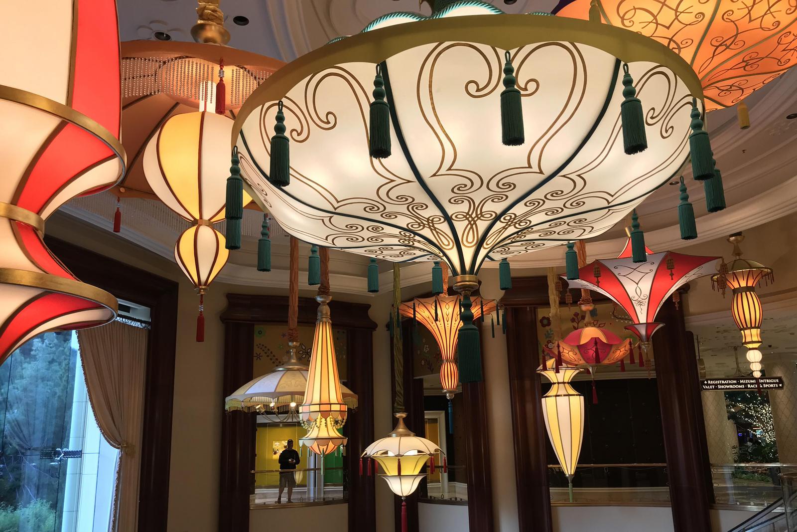 Une fois n'est pas coutume, nous n'entrons pas dans le casino par une salle de jeux, mais par une galerie commerciale ultra luxueuse, où se cotoient les enseignes prestigieuses Rolex, Prada, Louis Vuitton, Dior, Certier, Chanel. Puis cette galerie débouche sur un jardin artificiel beaucoup plus kitch, à l'image de celui que nous avons vu au Bellagio, orné d'objets et de personnages constitués de fleurs artificielles aux couleurs vives.