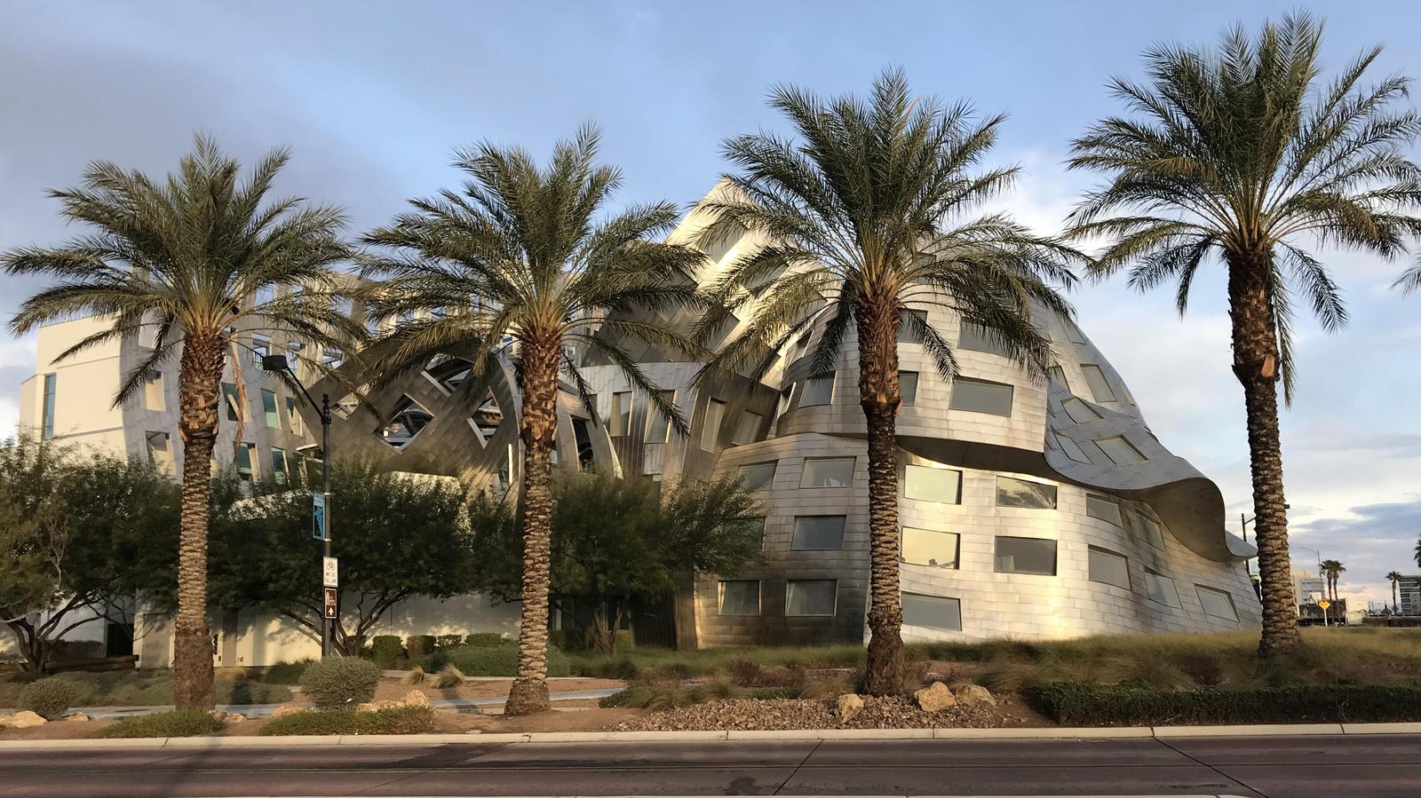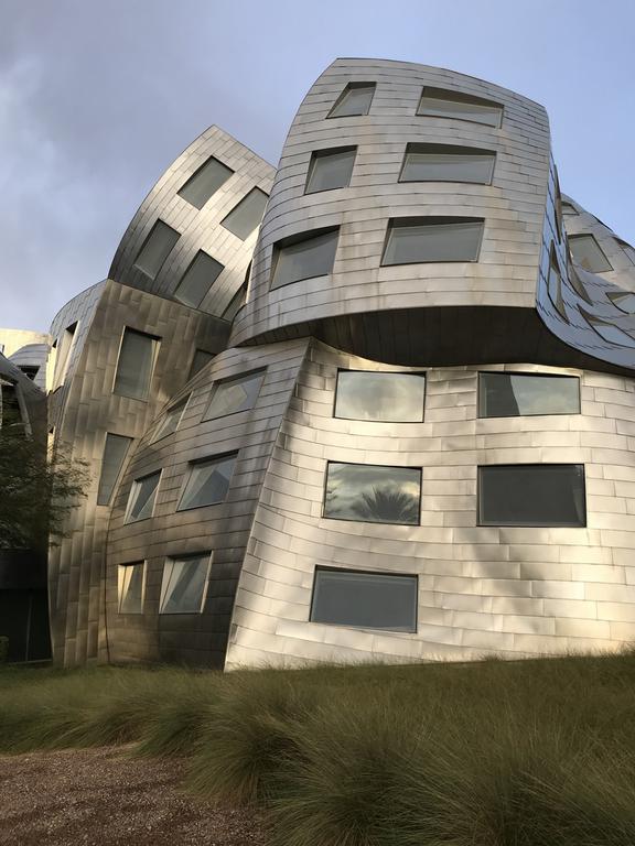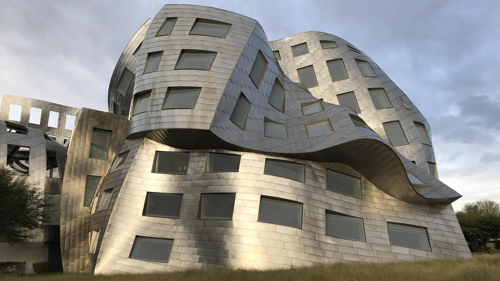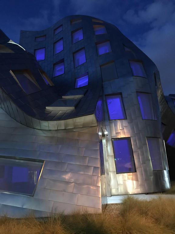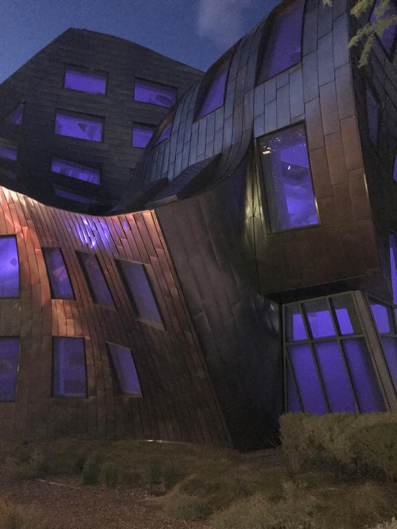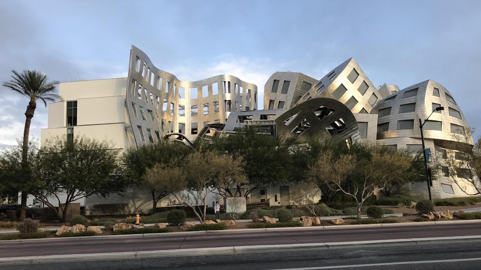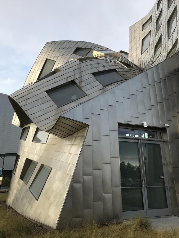 Ce bâtiment, inauguré en 2010, regroupe une clinique et un centre de recherche sur les maladies neurodégénératives. Naturellement, et sans même le savoir, nous avons immédiatement reconnu le dessin et le soucis du détail de l'architecte américain natif de Toronto. Surtout ne pas croire que ce bâtiment en métal a fondu sous le soleil brûlant de Las Vegas !