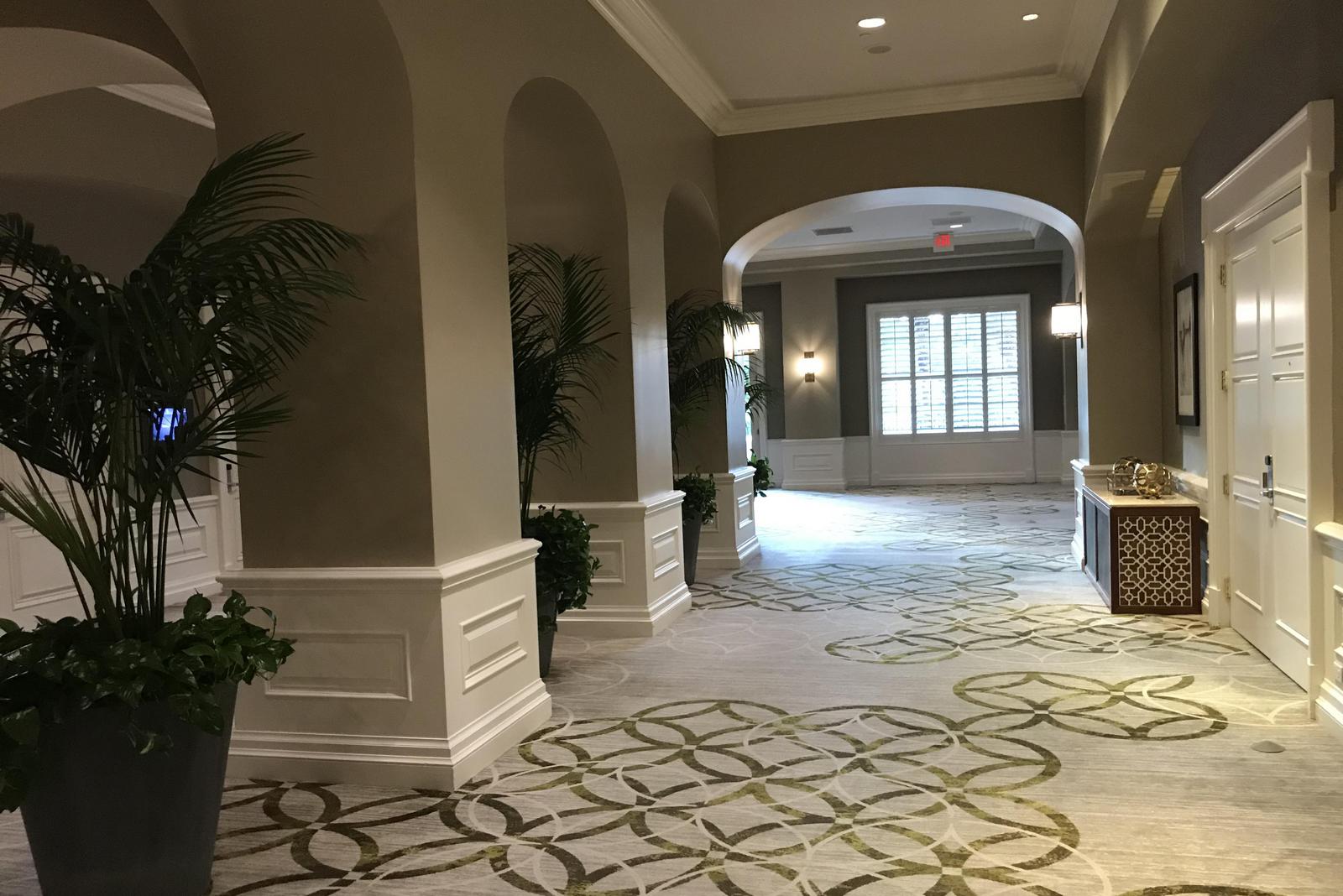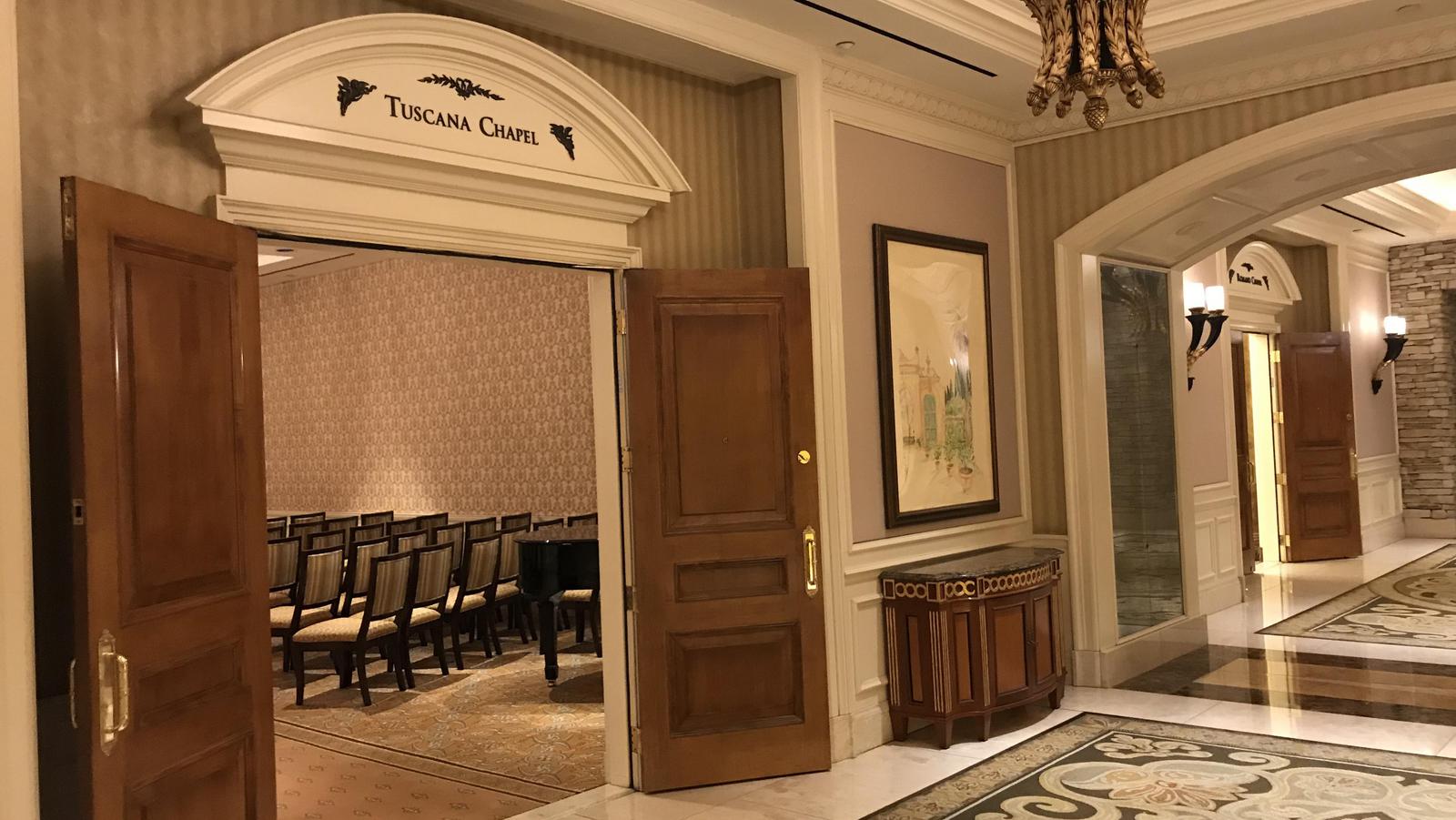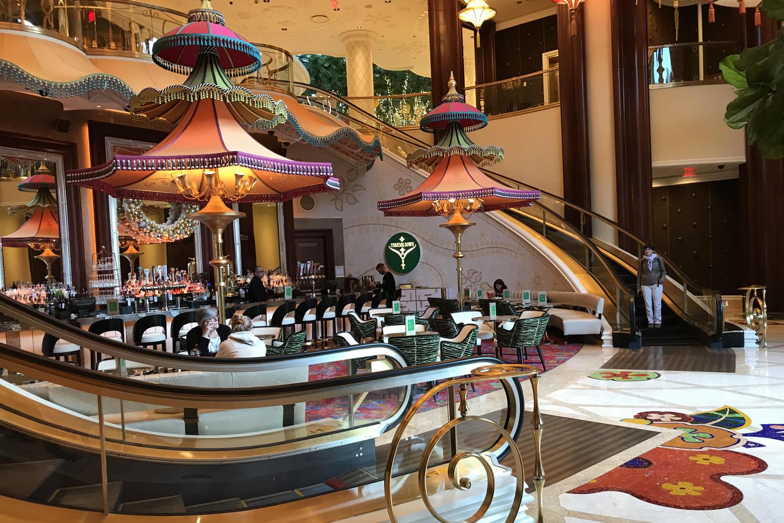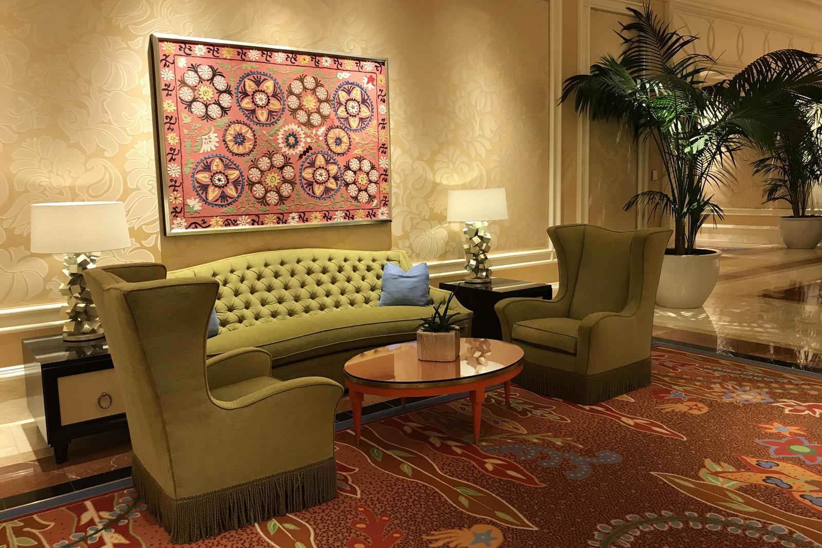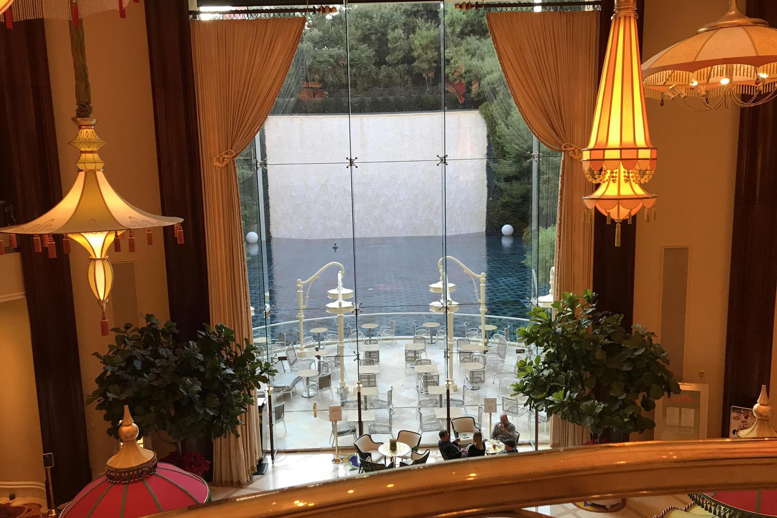 Comme dans les précédents hôtels-casinos, toutes les portes sont ouvertes et personne ne prête attention à notre présence. Nous poursuivons notre visite, traversons d'interminables couloirs jusqu'à rejoindre le rez de chaussée de l'extension Encore. Les sols sont extraordinaires, en marbre, incrustés de mosaïques aux motifs papillon, ou de grands tapis colorés et moelleux.