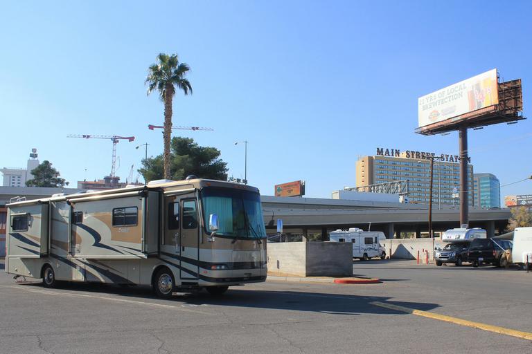 Nous récupérons le convertisseur et achetons un cable prévu pour le 110v, coût de l'ensemble $105. Nous partons ensuite pour le RV park Main Street de Downtown. Ce RV park dépend du casino du même nom et nous le connaissons car avions déjéuner au buffet lors de notre voyage en 2009.