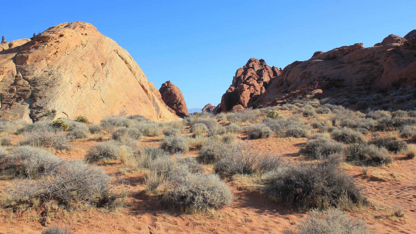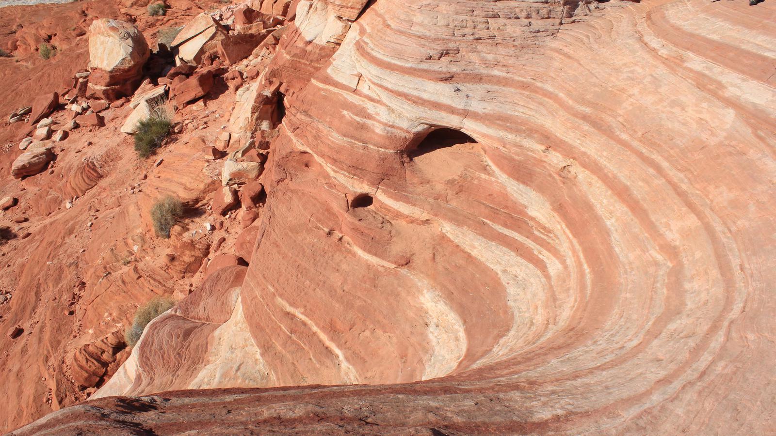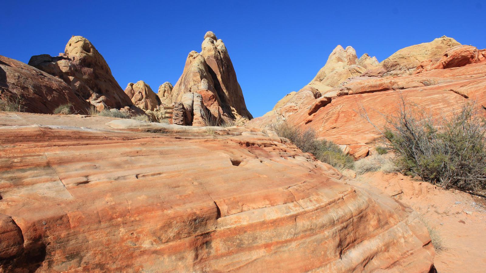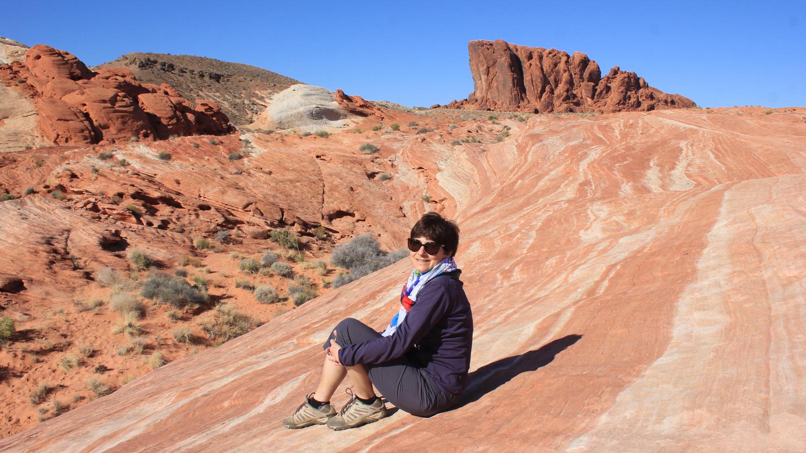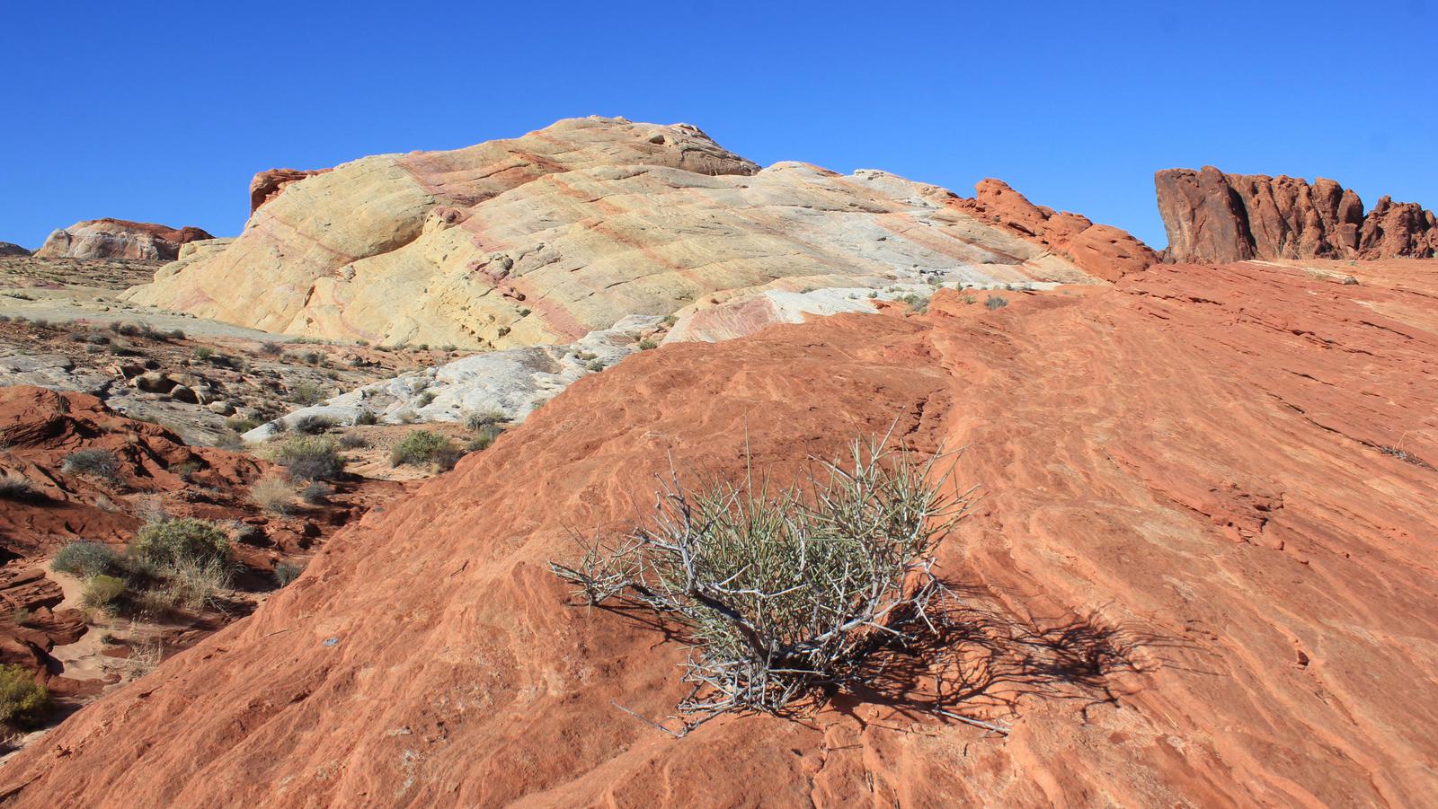 Nous suivons l'indication Fire Wave. Plusieurs panneaux rappellent aux visiteurs que les formations rocheuses sont fragiles et qu'il est impératif de rester sur le sentier. Hélas, rapidement les balises s'espacent jusqu'à disparaître totalement à l'approche de la fameuse vague. En l'absence de sentiers balisés, les touristes "se lâchent", et marchent sur toute la zone, épauffrant les feuilletés de roches si fragiles...