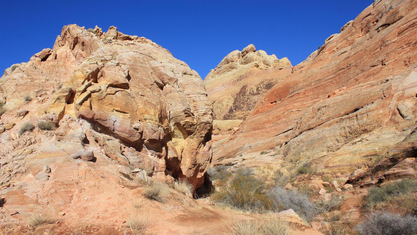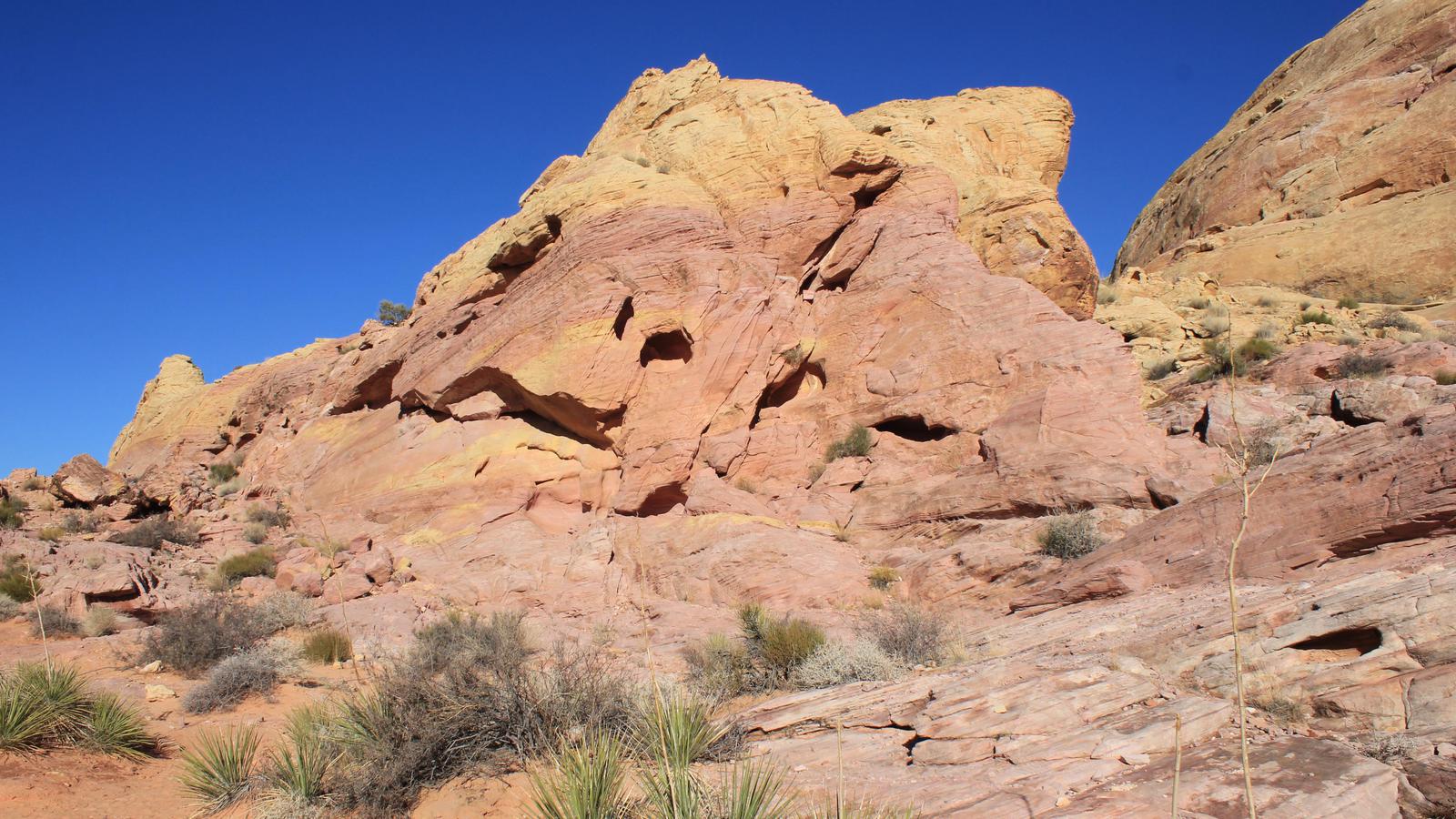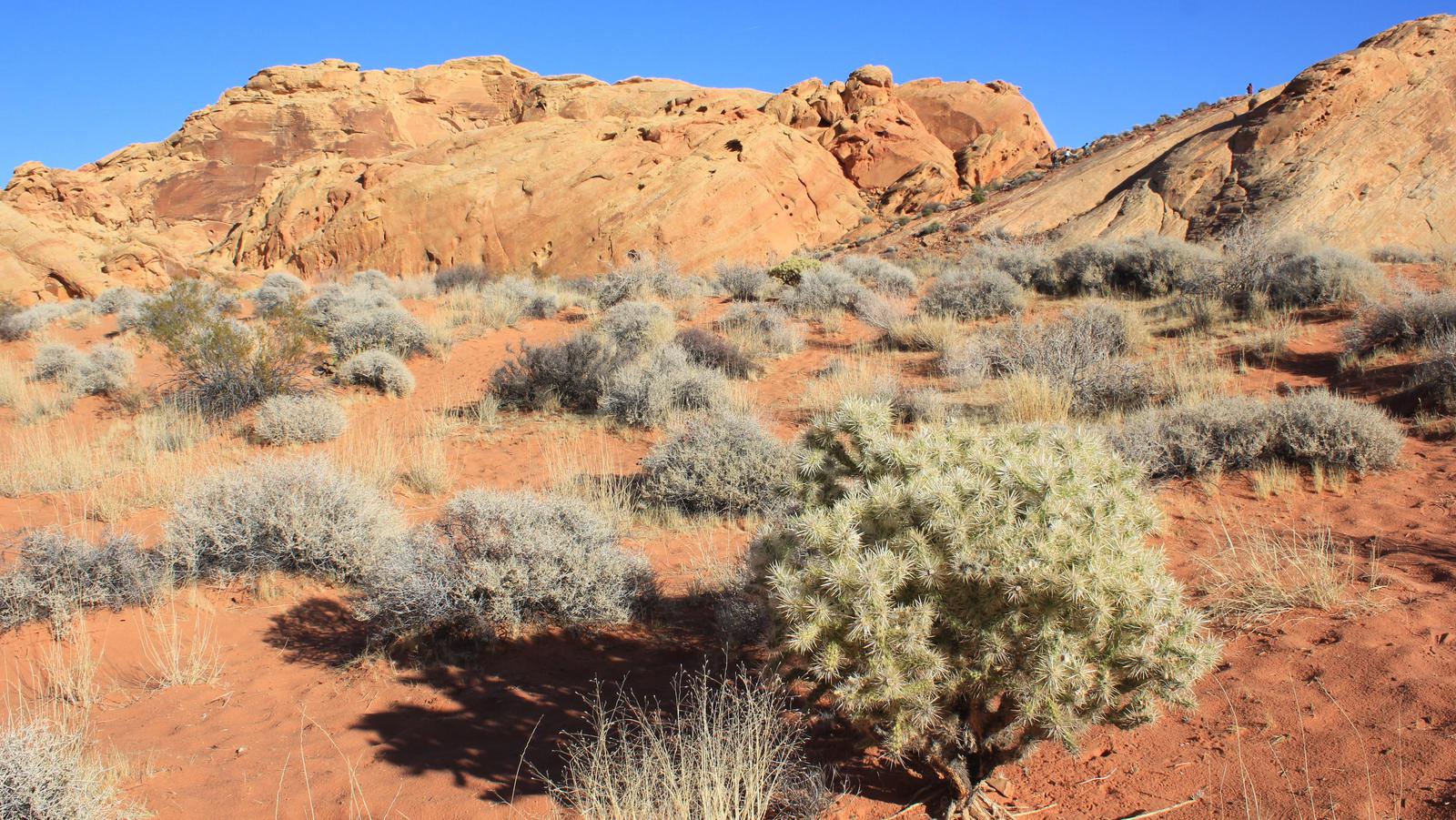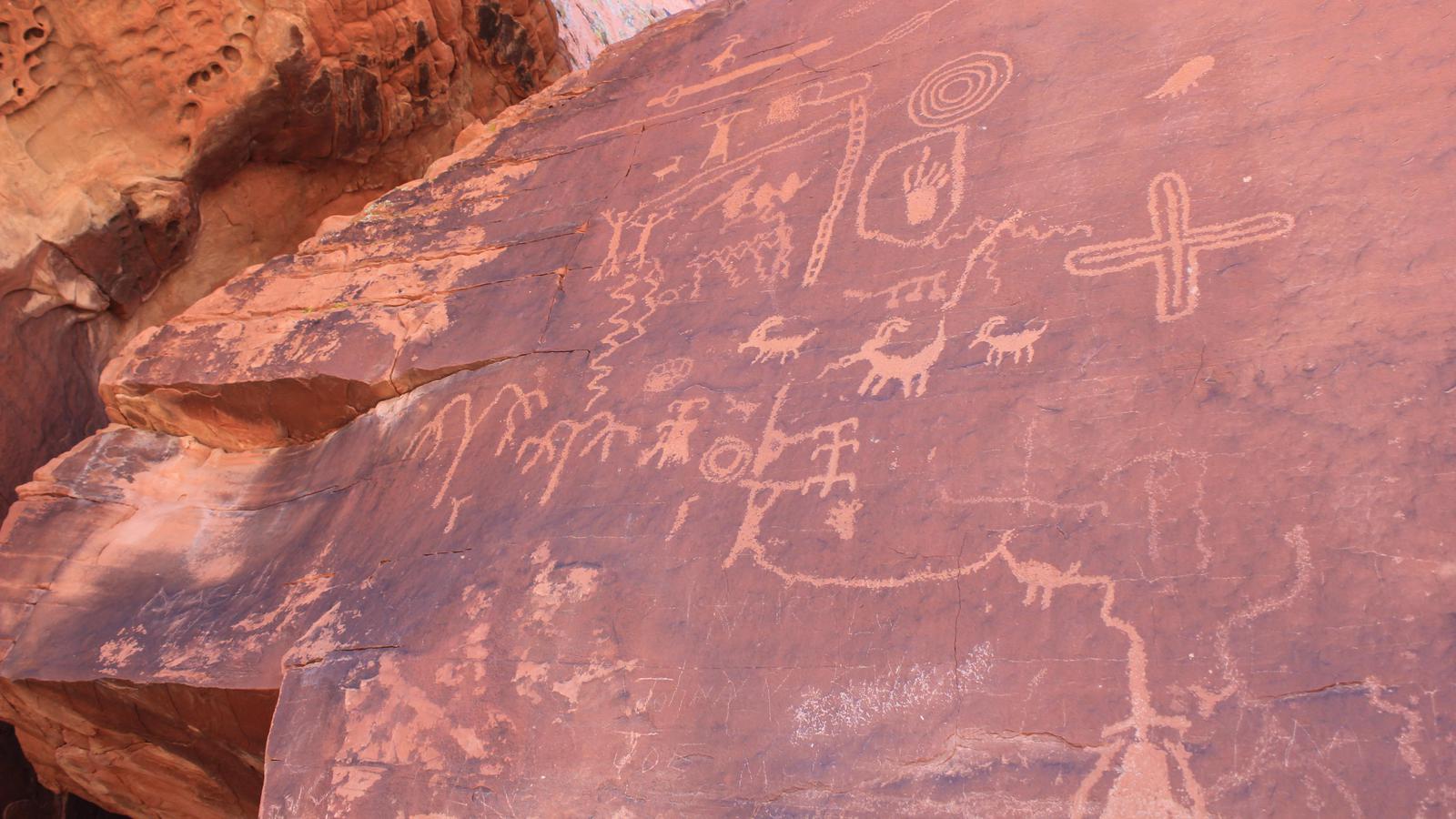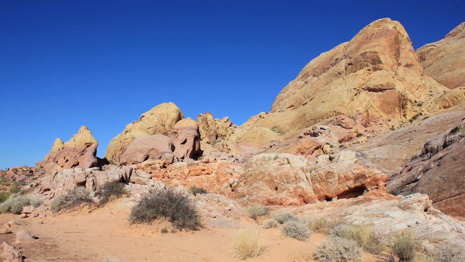 Nous suivons l'indication Fire Wave. Plusieurs panneaux rappellent aux visiteurs que les formations rocheuses sont fragiles et qu'il est impératif de rester sur le sentier. Hélas, rapidement les balises s'espacent jusqu'à disparaître totalement à l'approche de la fameuse vague. En l'absence de sentiers balisés, les touristes "se lâchent", et marchent sur toute la zone, épauffrant les feuilletés de roches si fragiles...