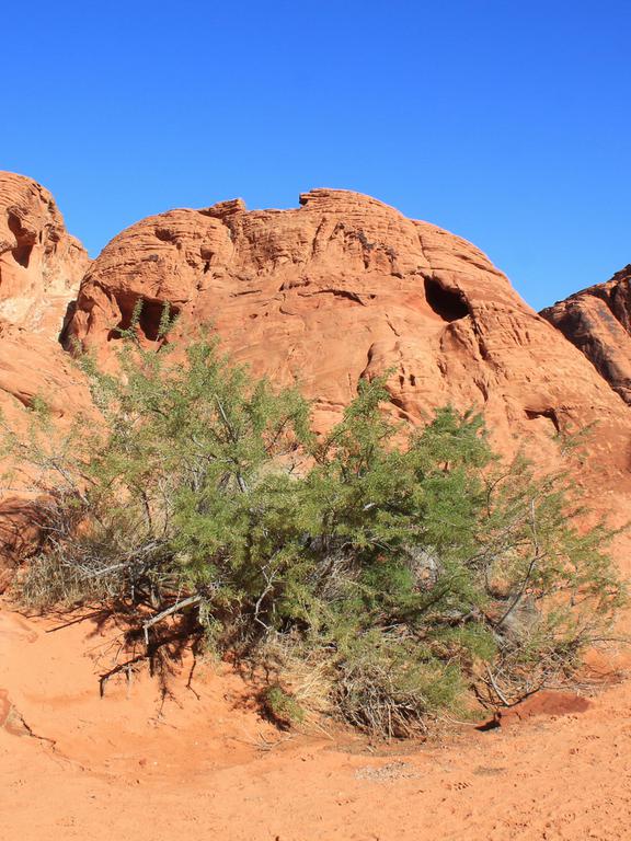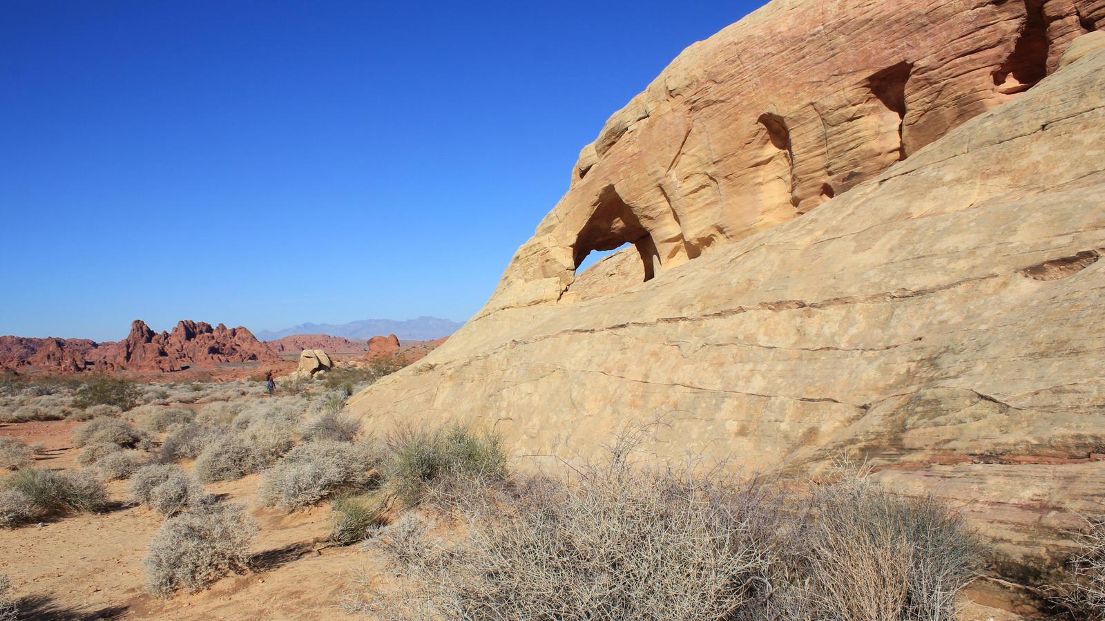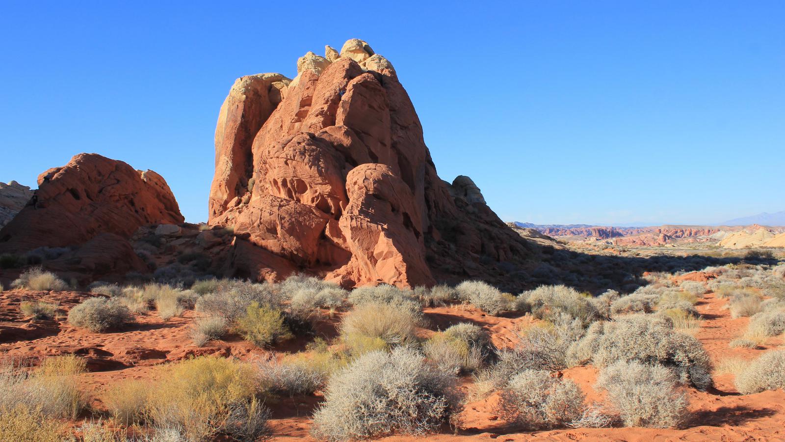 Il est temps de quitter le parc. Nous sortons par l'est en direction du lac Mead. Juste avant de franchir la barrière, nous faisons une dernière halte pour voir Elephant Rock. Celui-ci est également dans l'ombre et une belle tarentule se promène sur le sentier menant au rocher. Il ne nous en faut pas plus pour faire demi-tour...