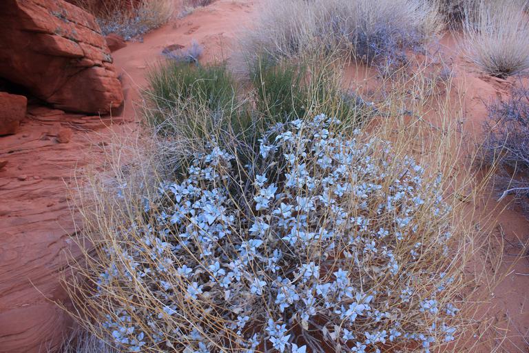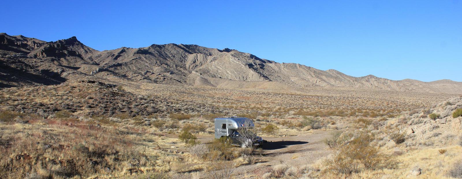 Nous quittons Las Vegas par l'interstate 15 et nous nous arrêtons un peu avant l'entrée du parc sur un BLM indiqué sur Ioverlander. Nous sommes perdus au milieu du désert, quel changement avec les jours derniers !