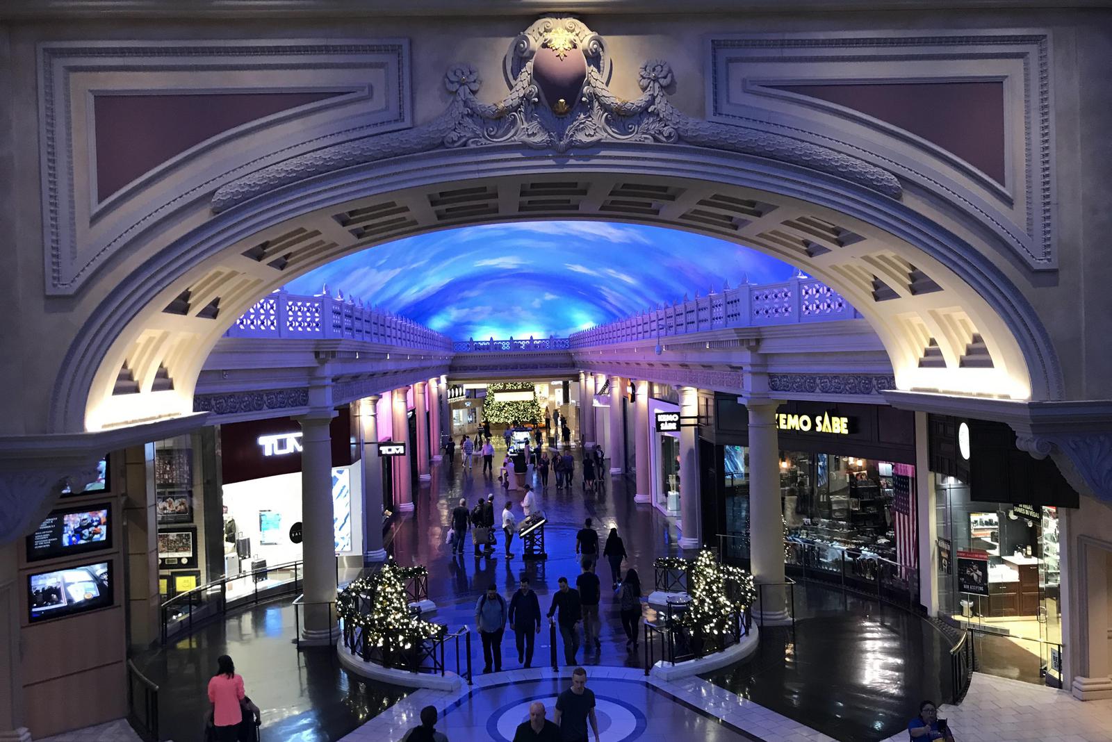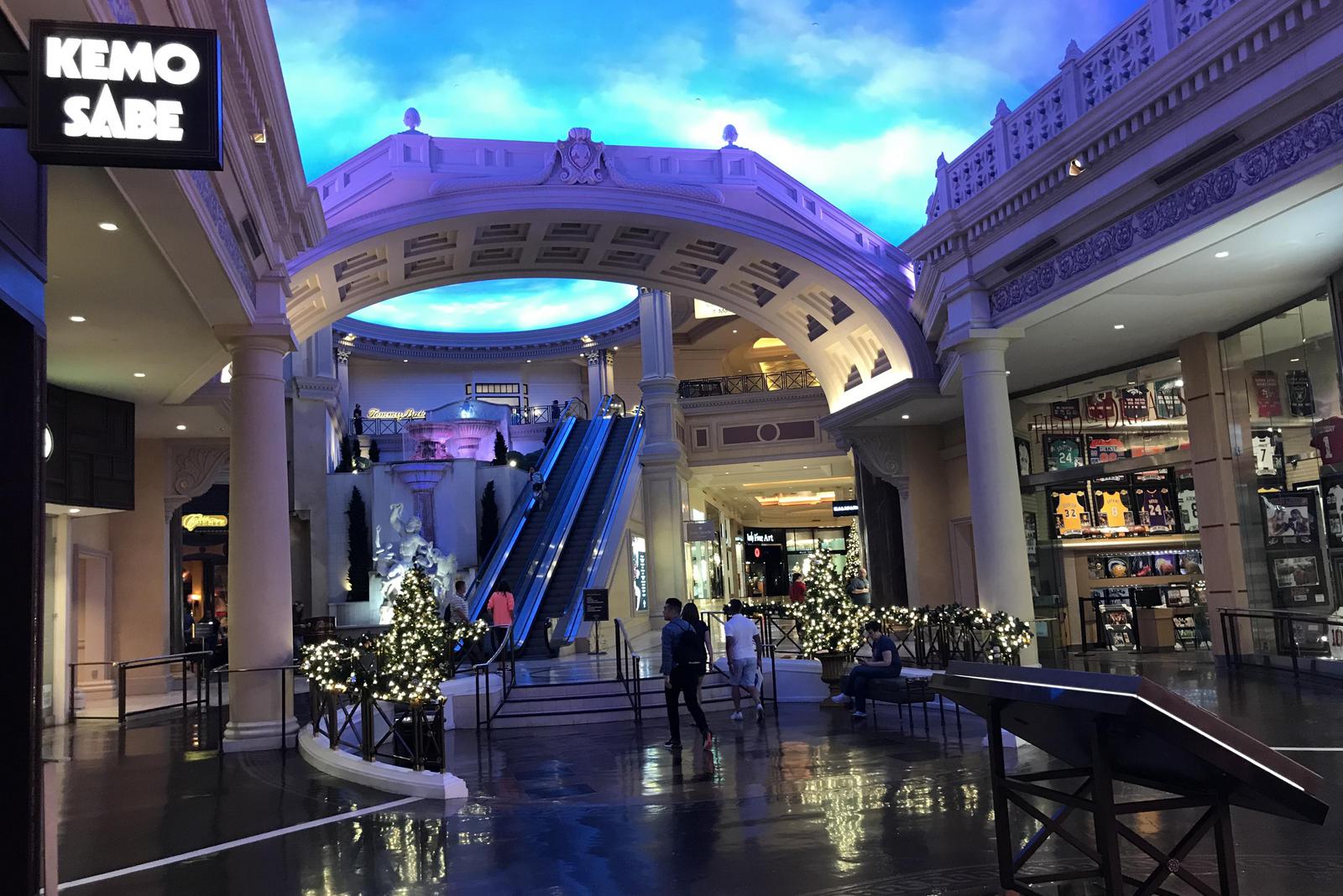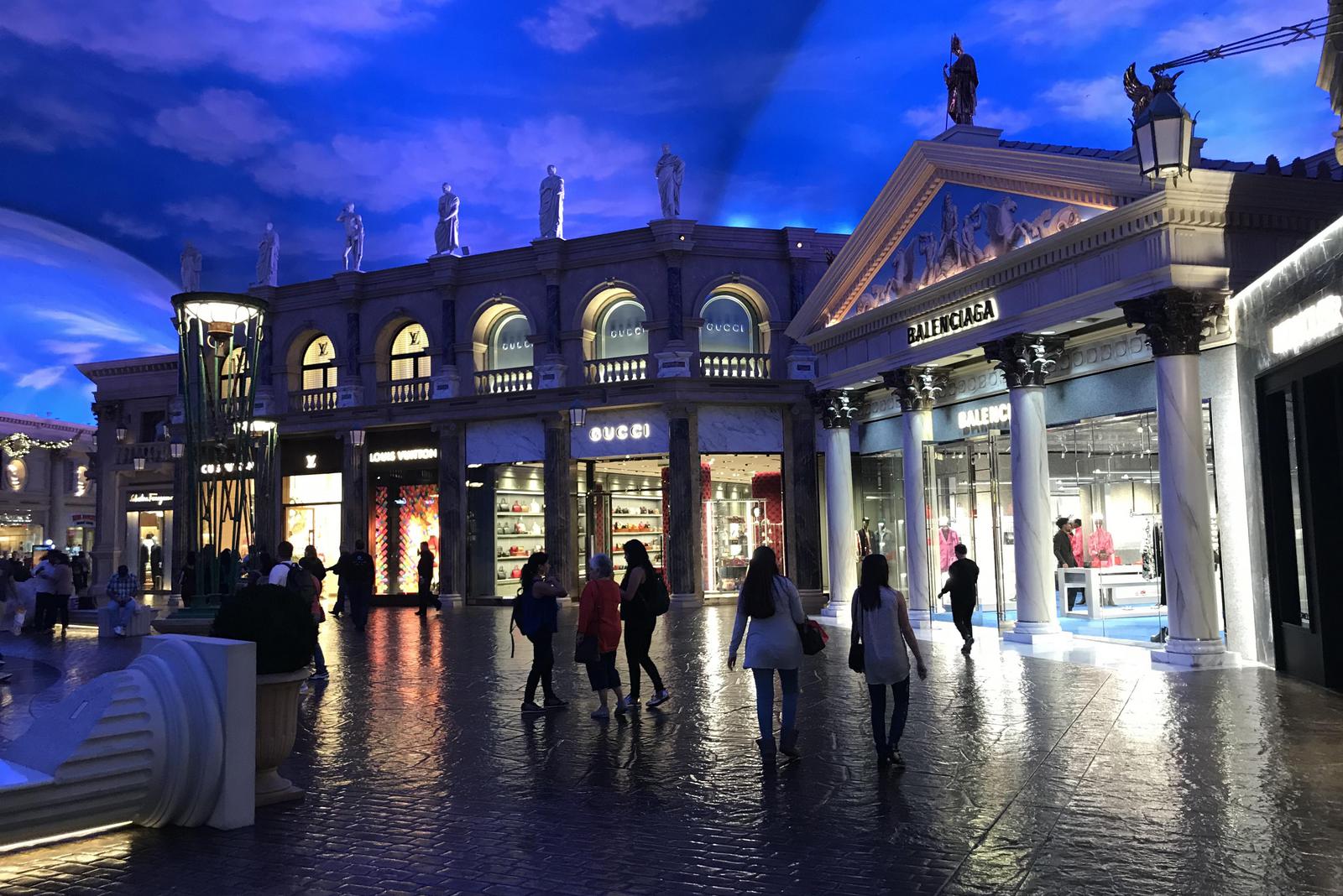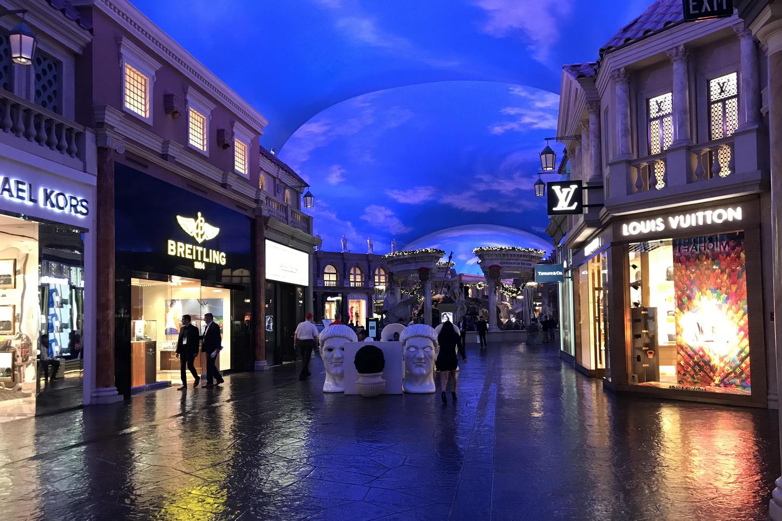 Il fait presque nuit lorsque nous ressortons du Wynn. Nous traversons le Strip et entrons dans le Fashion Show Mall. Cette gigantesque galerie marchande est l'une des plus grandes du monde, malgré tout son style épuré apparaît bien fade après tous les univers que nous avons traversés.