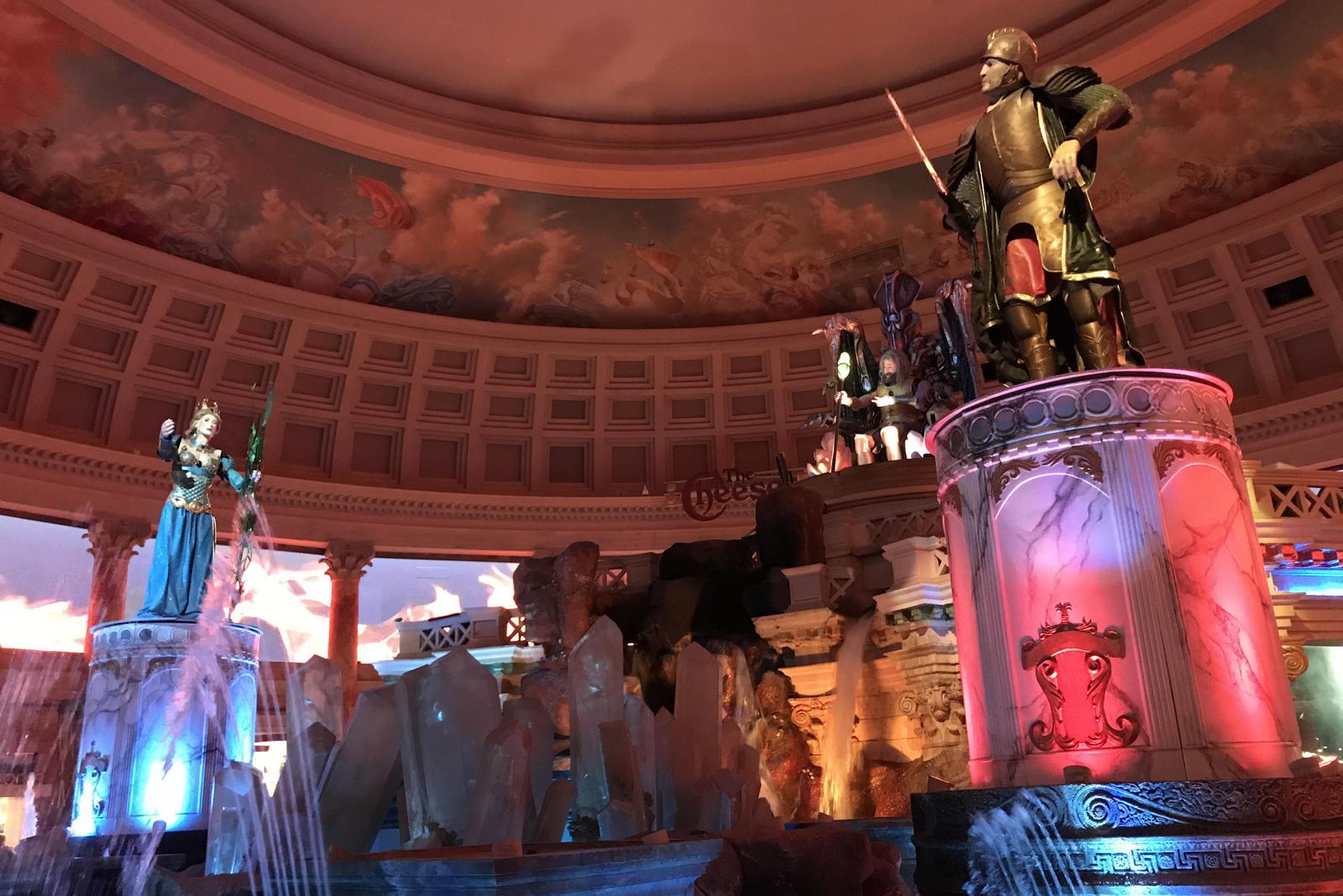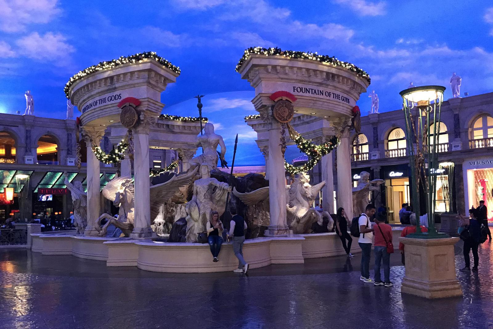 Nous descendons un escalier et entrons dans la galerie propremente dite. c'est la reconstitution d'une avenue de la Rome Antique. Les boutiques de luxe se succèdent, nous arrivons devant la Fontaine des Dieux.