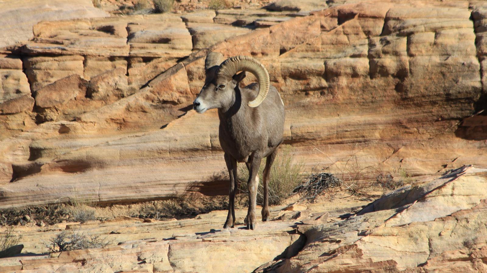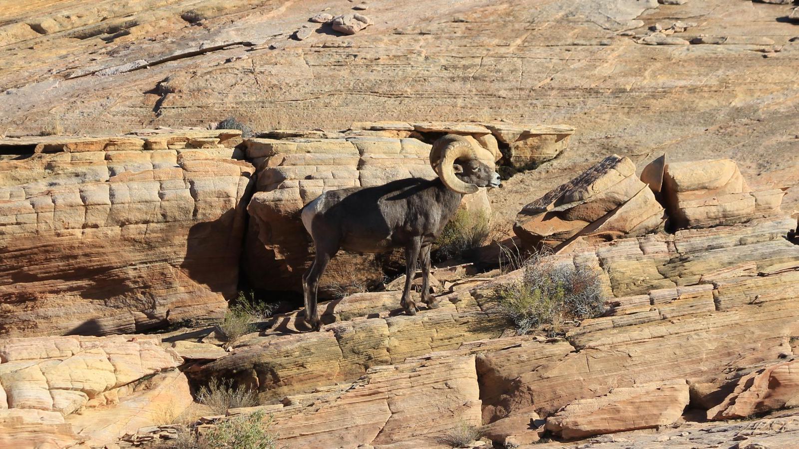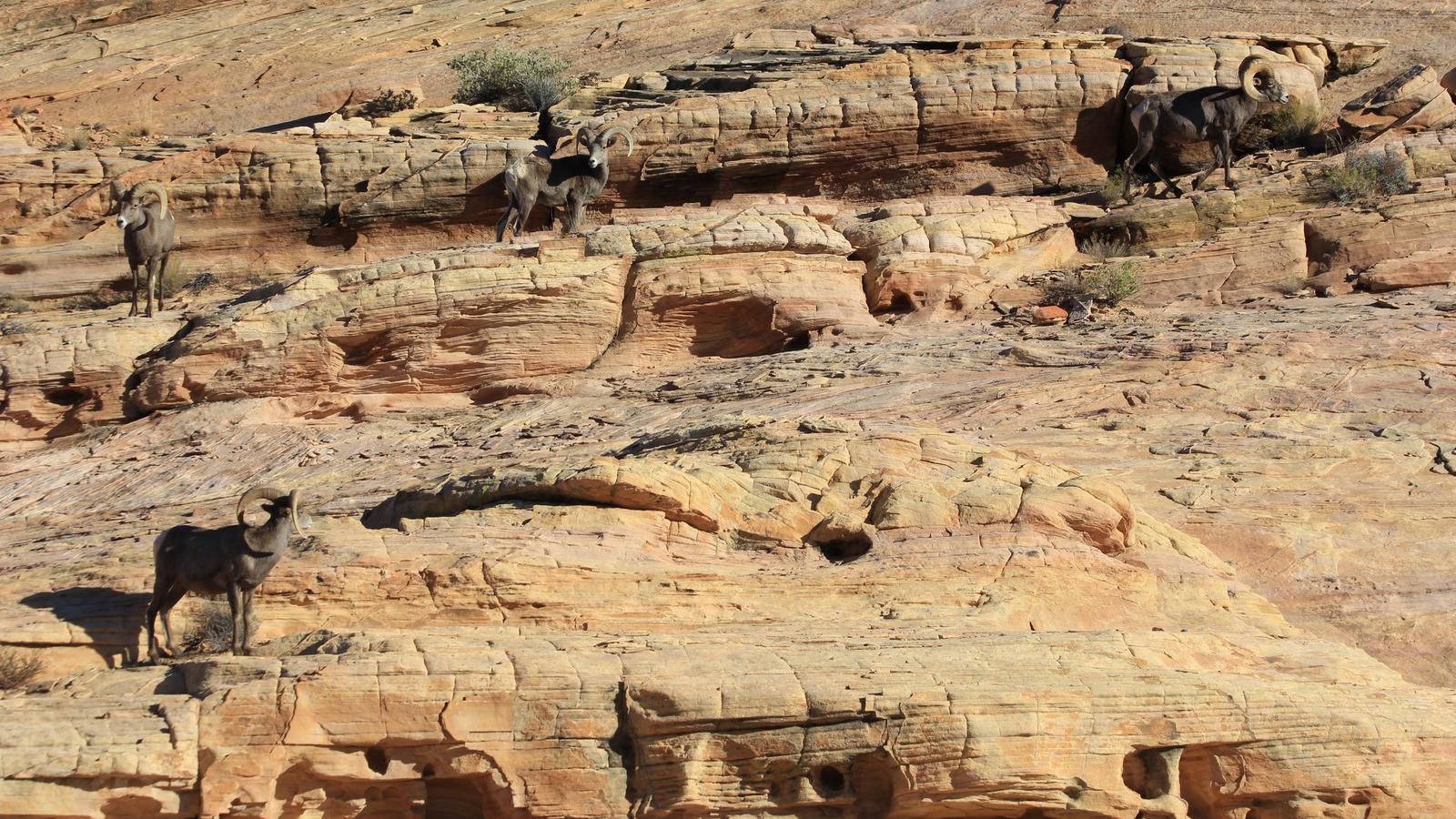 Sur le trajet du retour, nous croisons un troupeau de Bighorn Sheep au bord de la route. Avec les pluies des derniers jours, la végétation a repris de la vigueur et ces animaux migrent à nouveau vers ces territoires.
