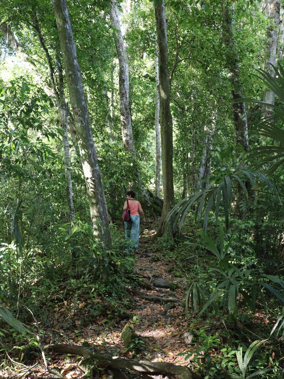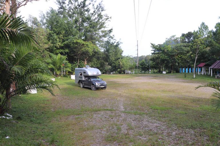 Les sanitaires sont rudimentaires et sans électricité. Les douches sont sales, sans pomme de douche, avec des bouteilles vides à droite et à gauche... De plus le gardien ferme les portes et conserve la clé sur lui et il faut lui courrir après pour pouvoir y accéder. Tout çà pour 11 euros par jours. Unique avantage, l'entrée du parc de Tikal est à 100m.