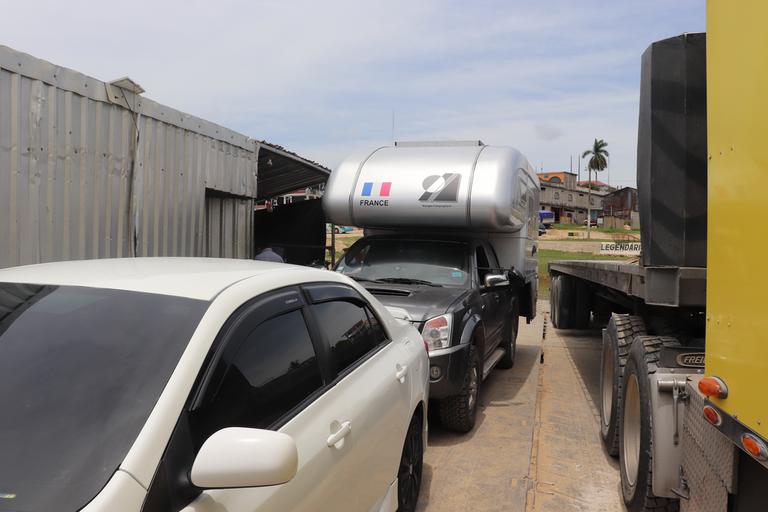 Le bac nous attend pour franchir le rio Pasion. Une fois sur l'autre berge, nous poursuivons encore durant quelques kilomètres avant de nous accorder une pause près d'un terrain de foot à l'entrée de la Libertad.