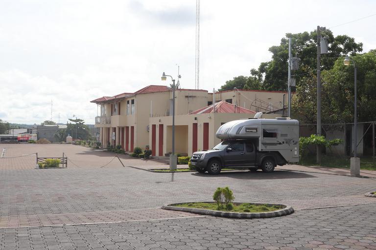 Nous nous présentons ensuite au guichet de la SAT (Superintendencia de Administracion Tributaria) pour faire le point sur les documents nécessaires à l'importation du véhicule (passeport, carte grise, permis de conduire international). Le douanier est très tatillon et respecte scrupuleusement les gestes barrières, à tel point qu'il se tient, masqué bien sûr, à 4m derrière sa vitre ce qui ne facilite pas la conversation. Il veut voir les papiers d'importation de la voiture au Mexique et sort vérifier le numéro de châssis. Enfin, il nous demande nos attestations covid, nous lui présentons nos certificats de vaccination. Ceci étant fait, le douanier nous envoie vers ses collègues pour valider notre entrée au Guatemala.